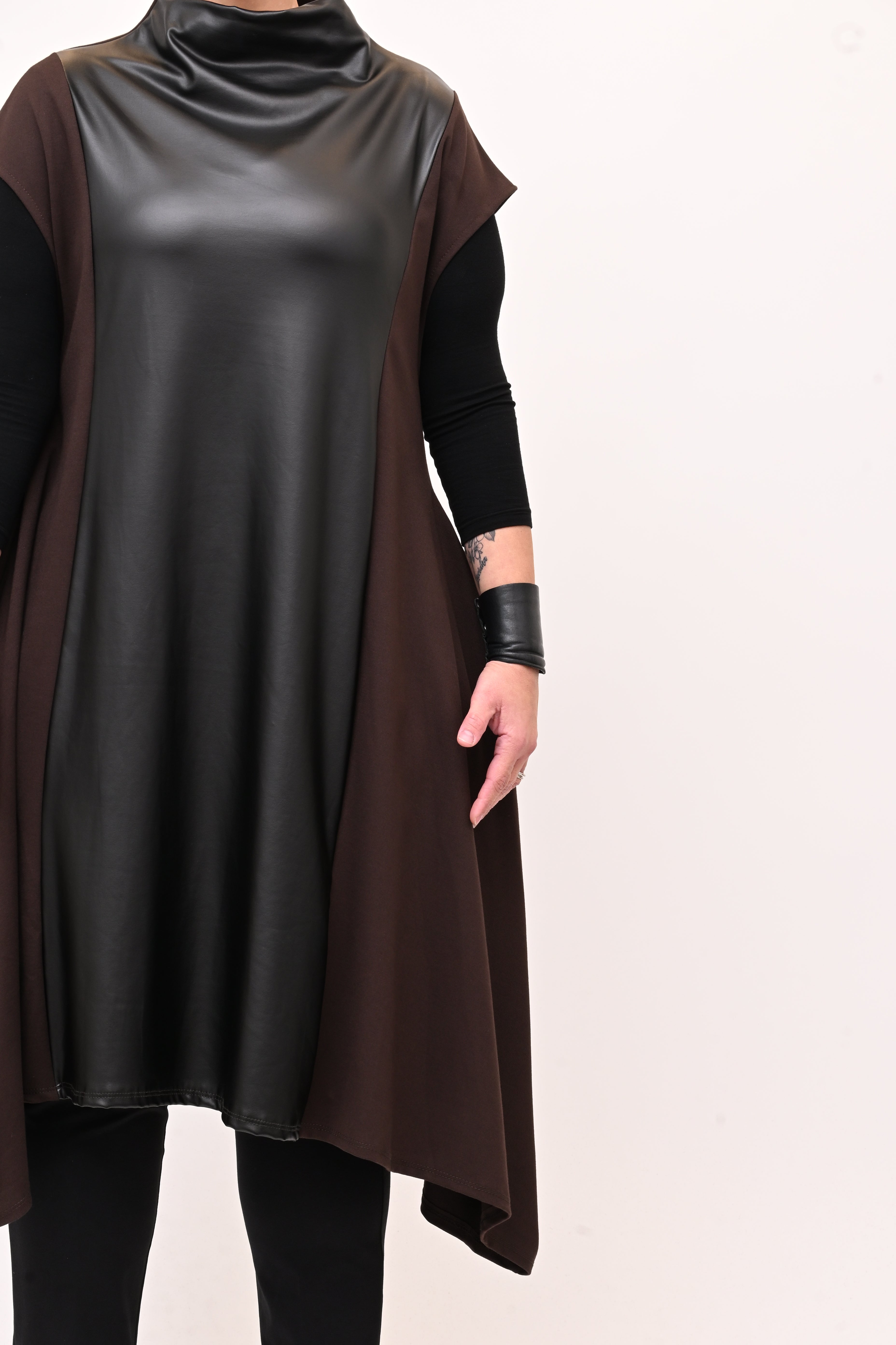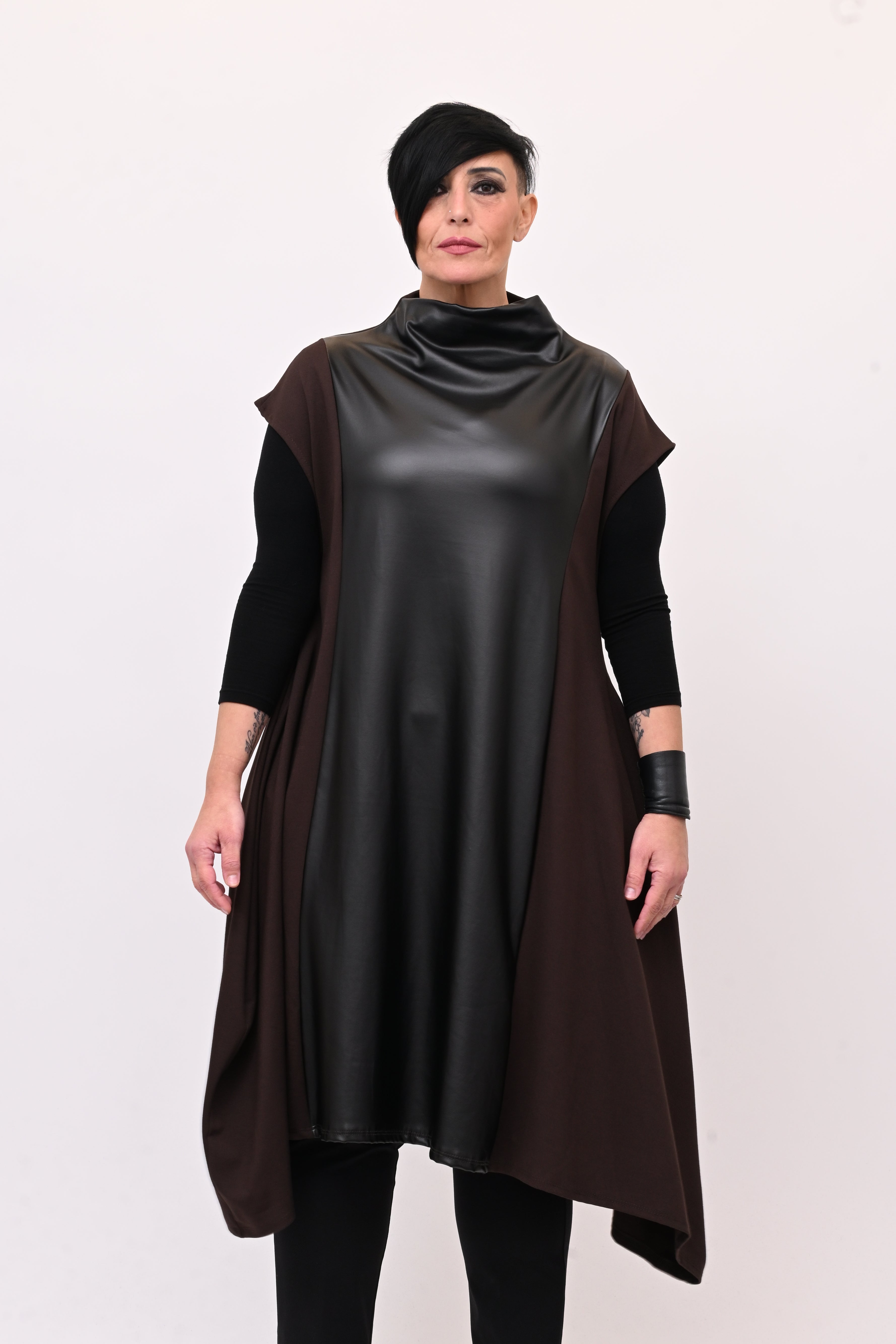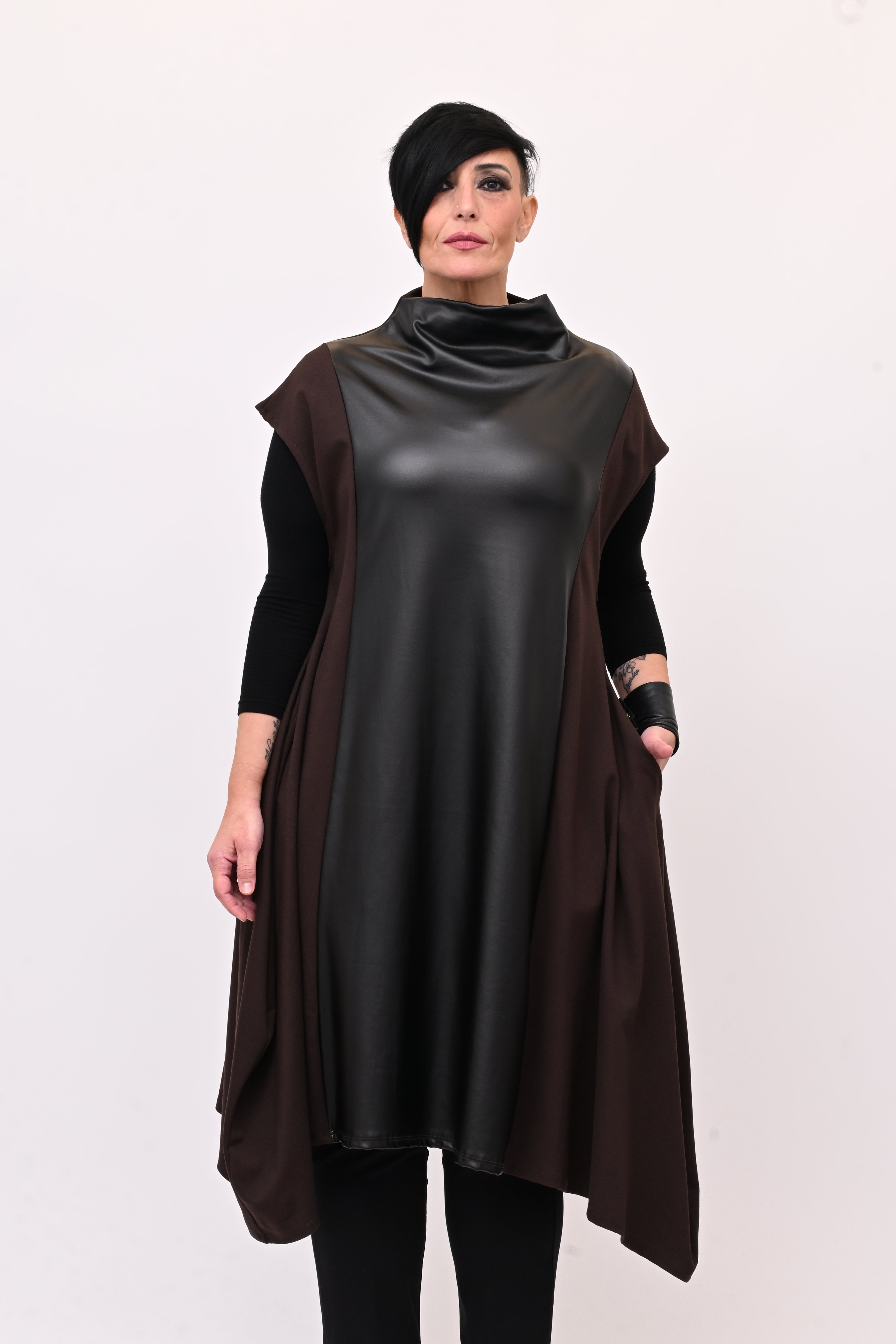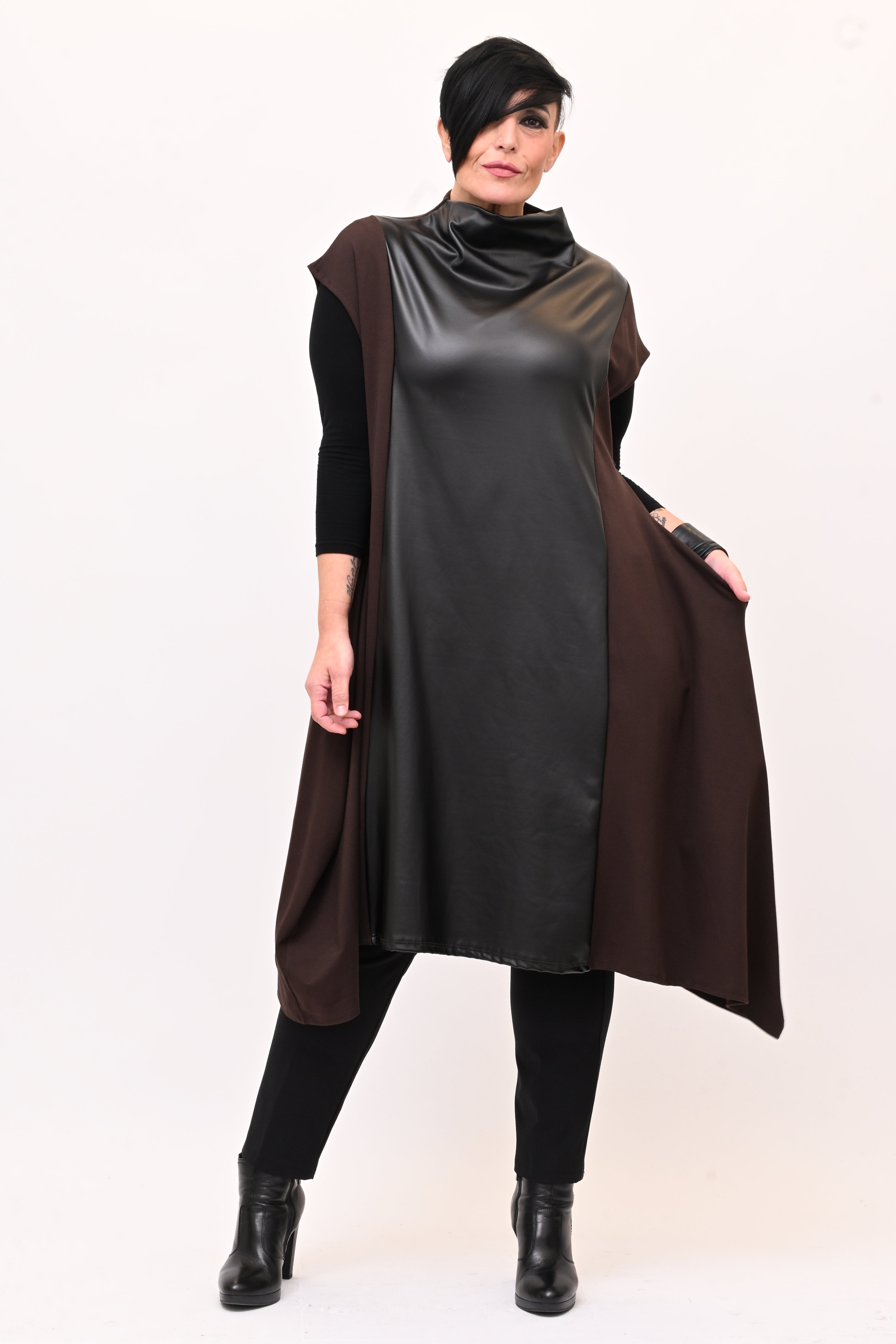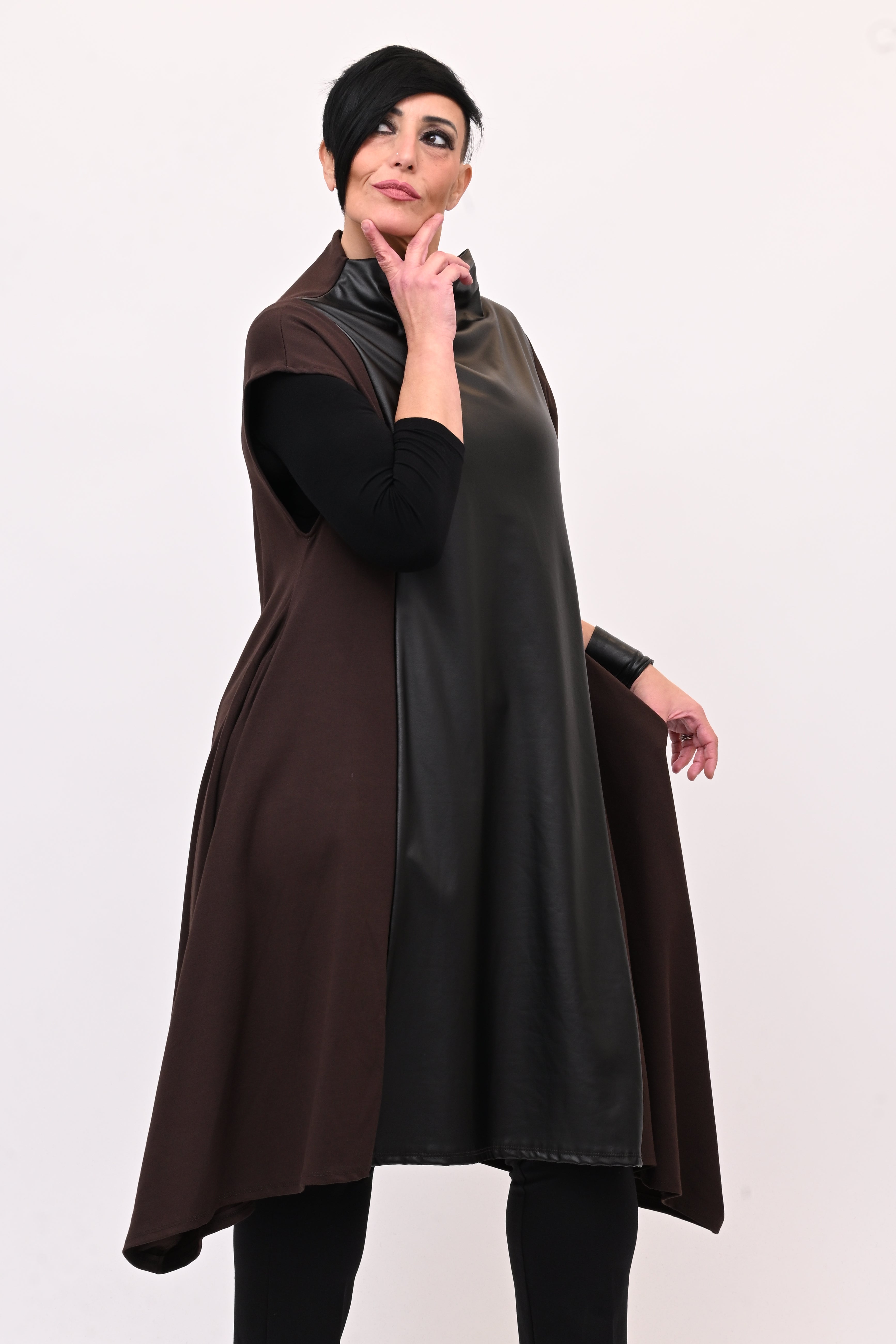 Abito svasato inserti pelle - Moro