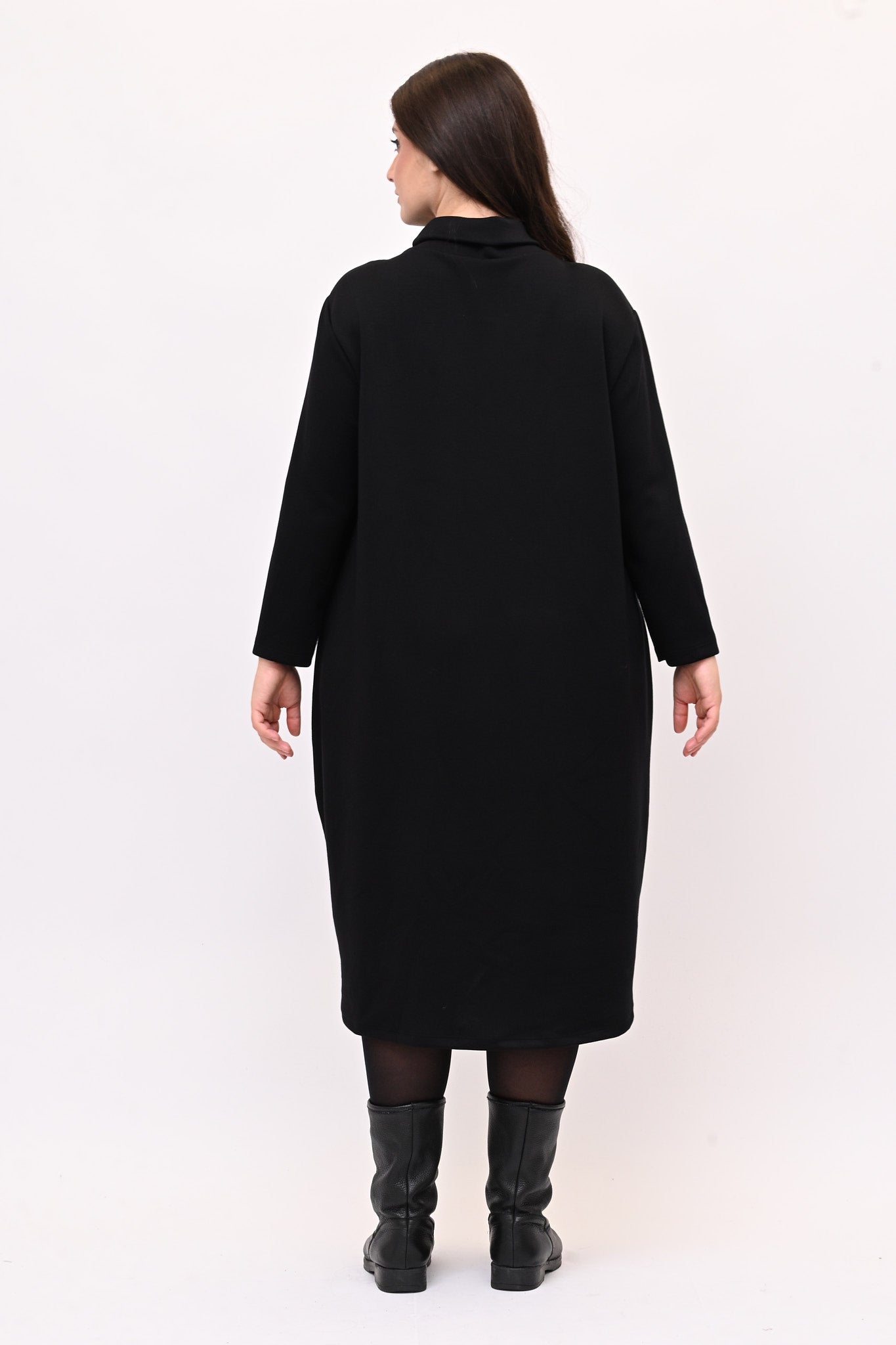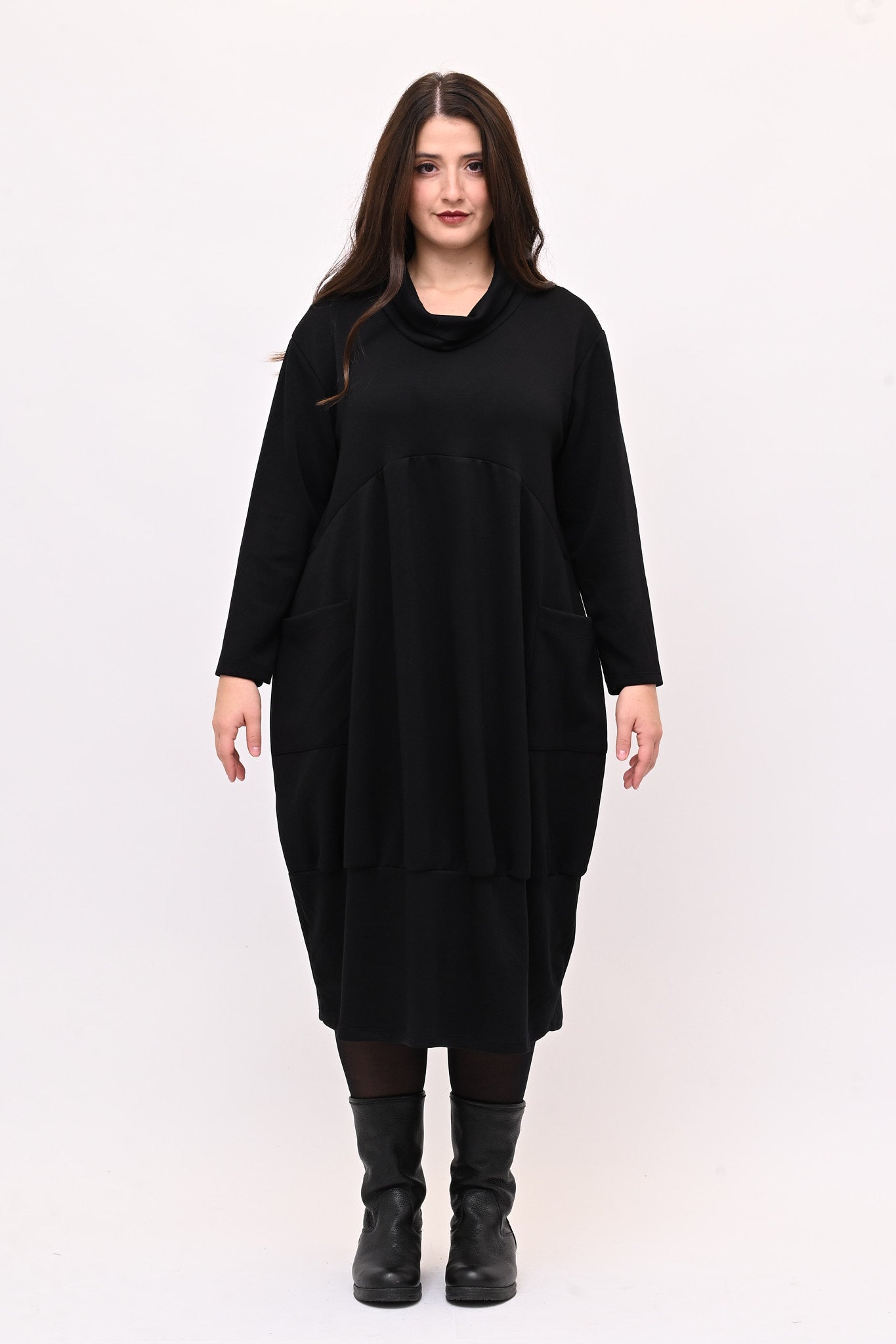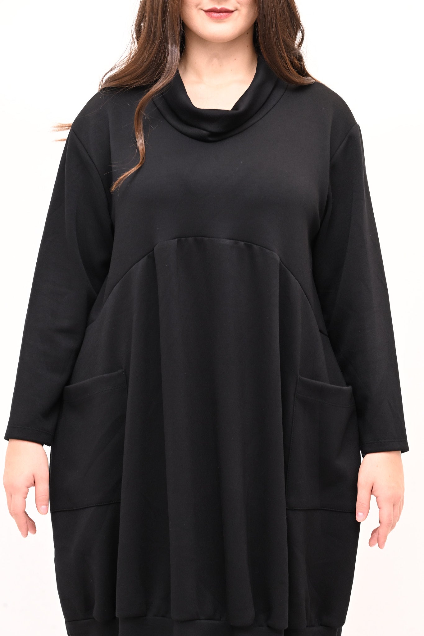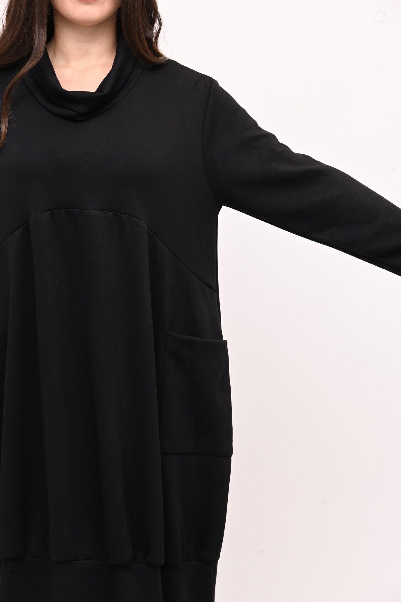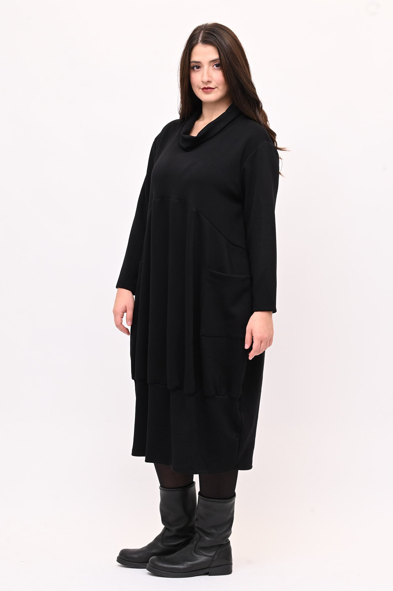 Abito a ovetto in tessuto scuba, con collo ad anello e tasconi. La vestibilità rilassata assicura comfort e stile. Ideale per chi cerca un capo sofisticato e comodo, perfetto per diverse occasioni.