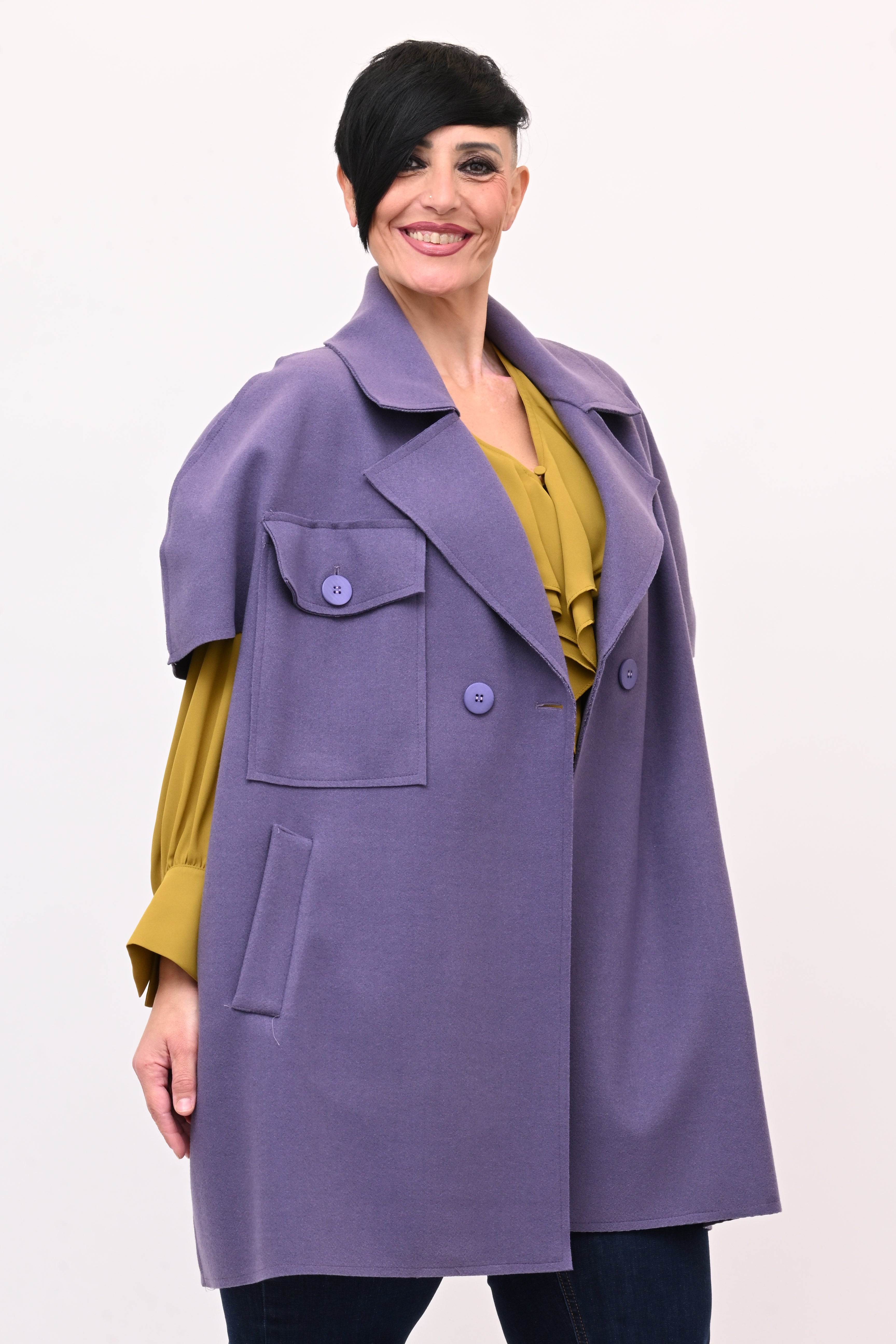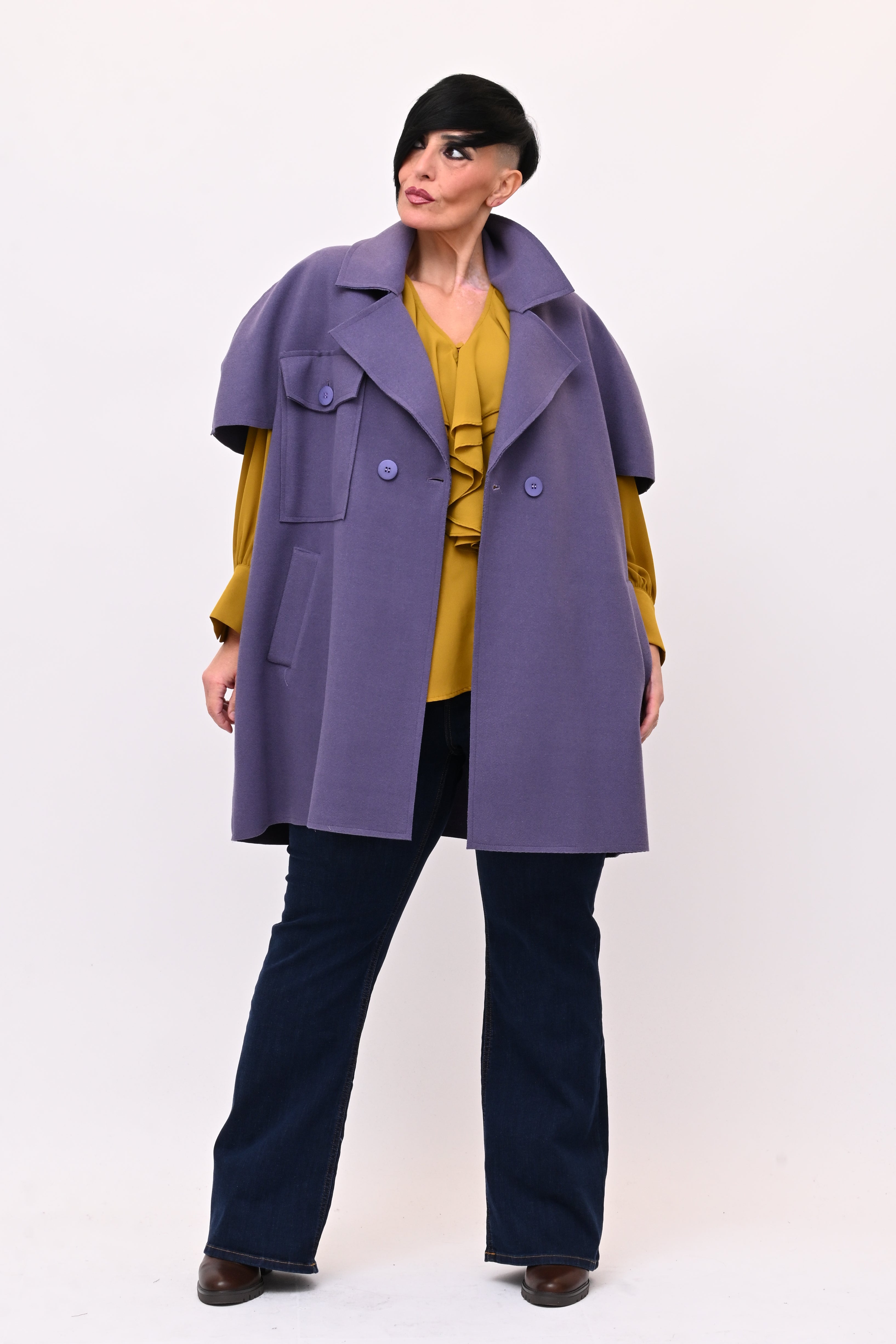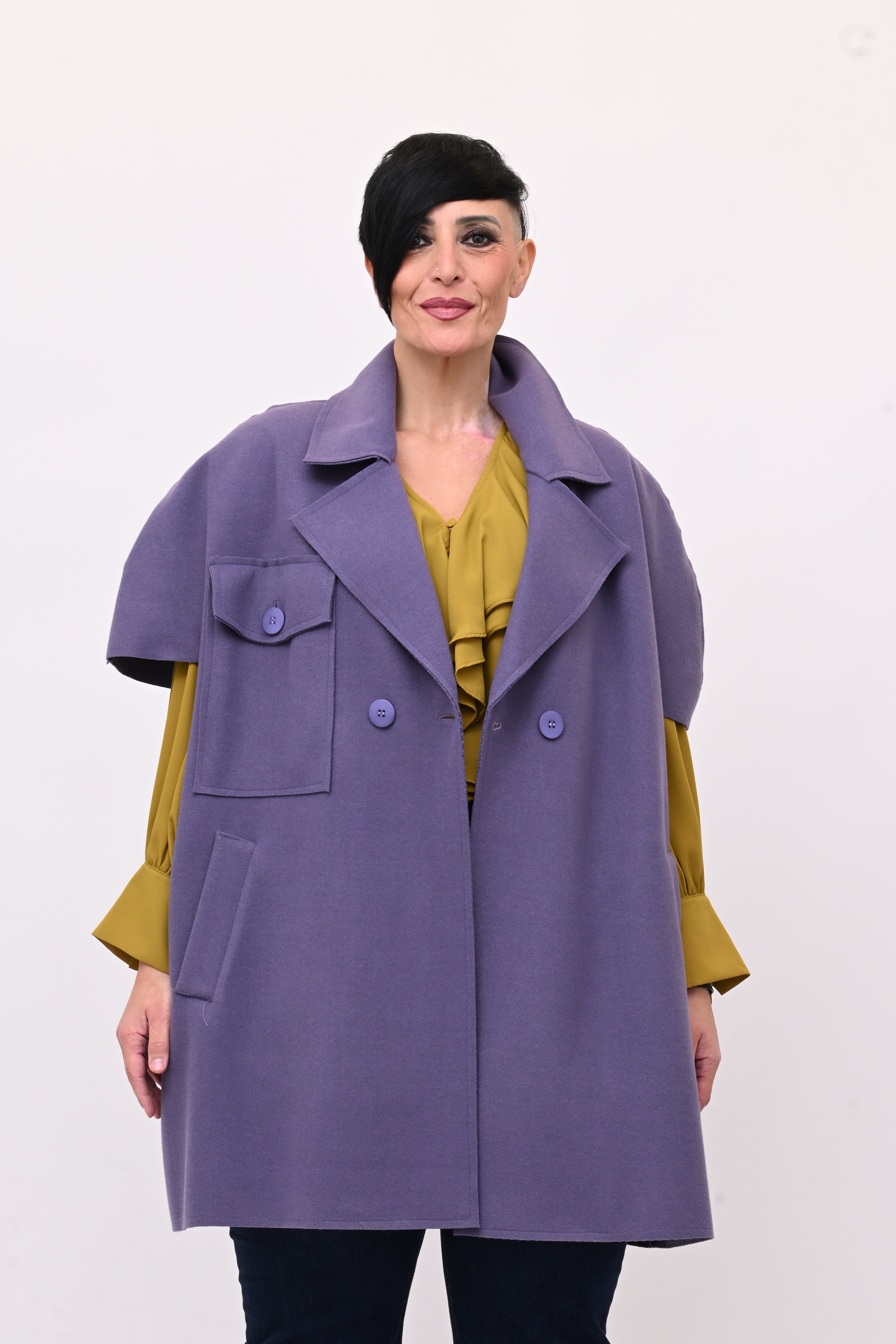 Cappa in panno, doppio petto dal taglio pulito e moderno. Il taschino frontale aggiunge un tocco distintivo, completando uno stile sofisticato ma deciso. Perfetta per chi cerca un capo versatile e contemporaneo che unisce comfort e carattere.