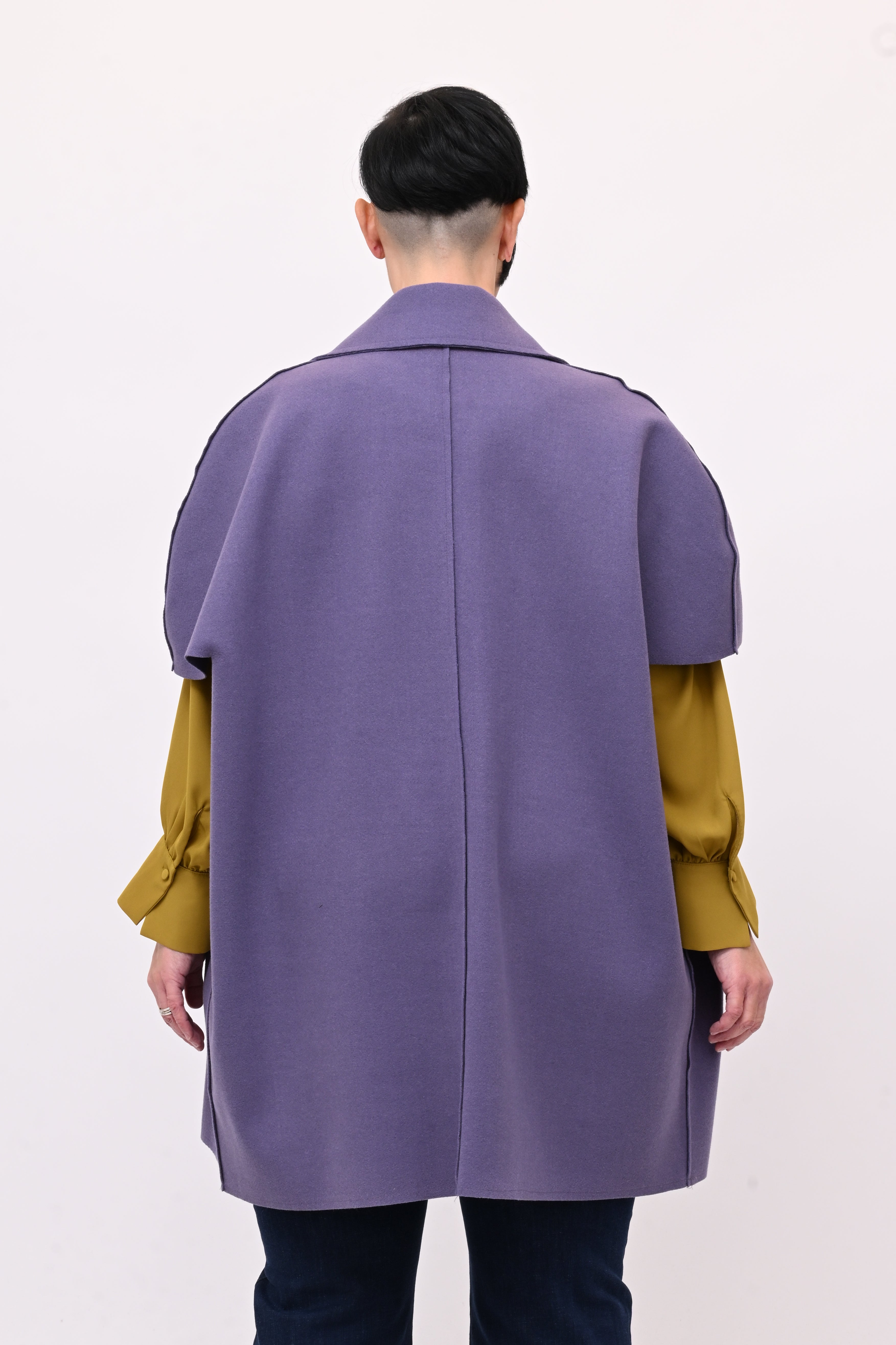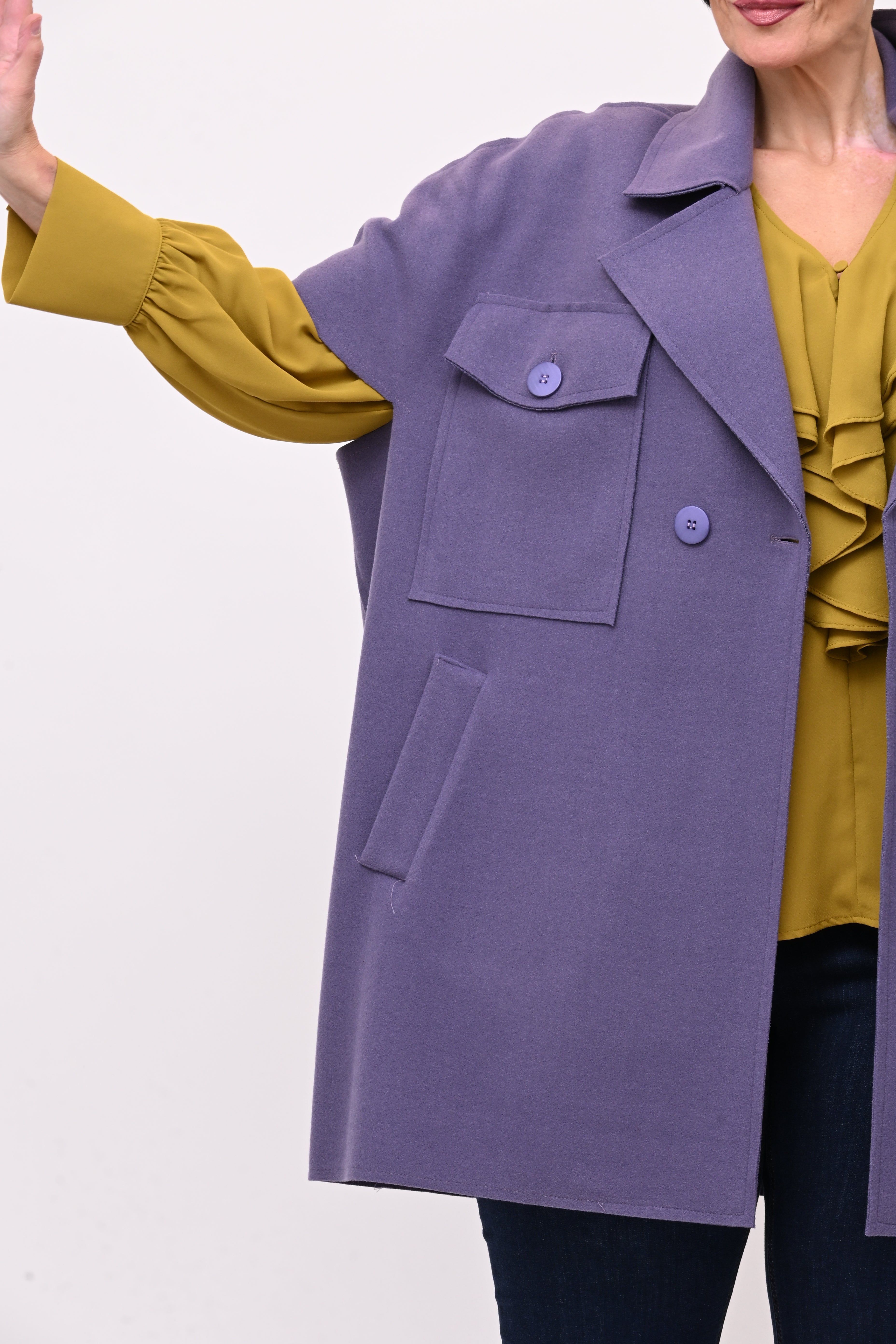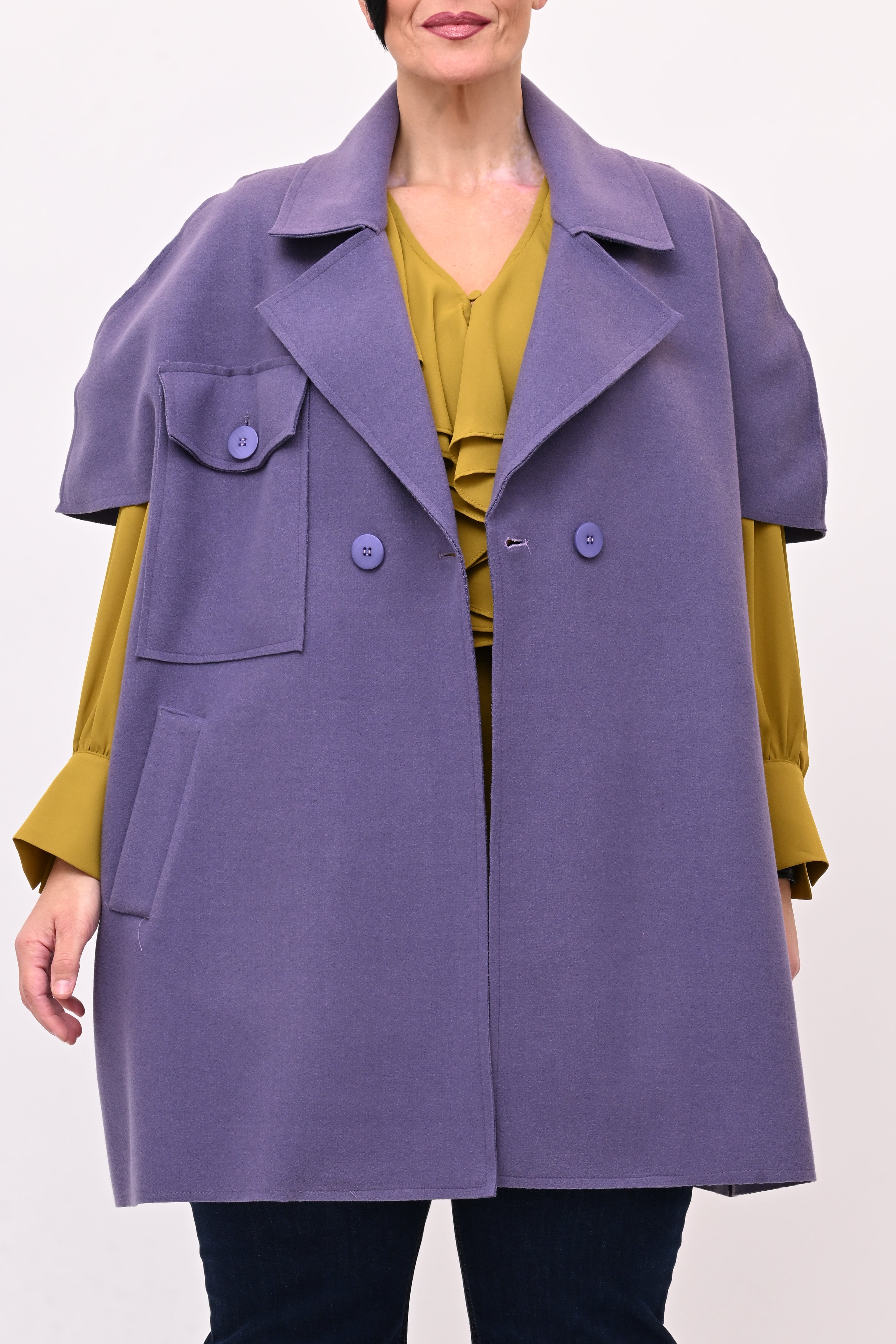 Cappa in panno, doppio petto dal taglio pulito e moderno. Il taschino frontale aggiunge un tocco distintivo, completando uno stile sofisticato ma deciso. Perfetta per chi cerca un capo versatile e contemporaneo che unisce comfort e carattere.