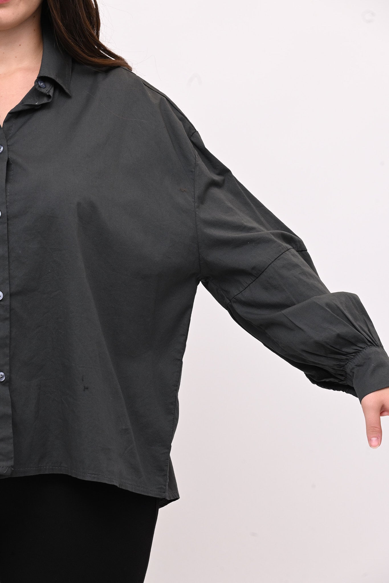 Camicia over, in cotone elasticizzato, con maniche a palloncino che donano un tocco sofisticato e moderno. Perfetta per chi cerca un capo versatile, casual e femminile.