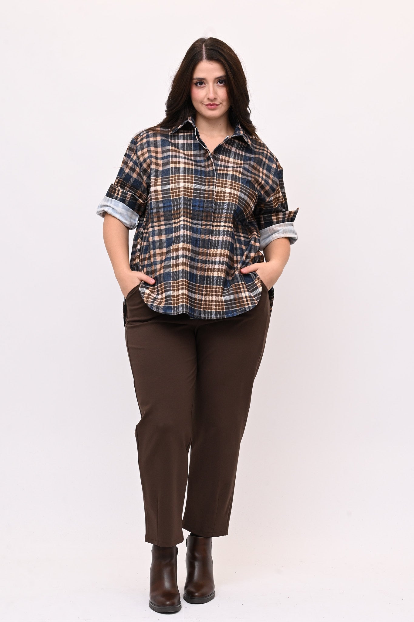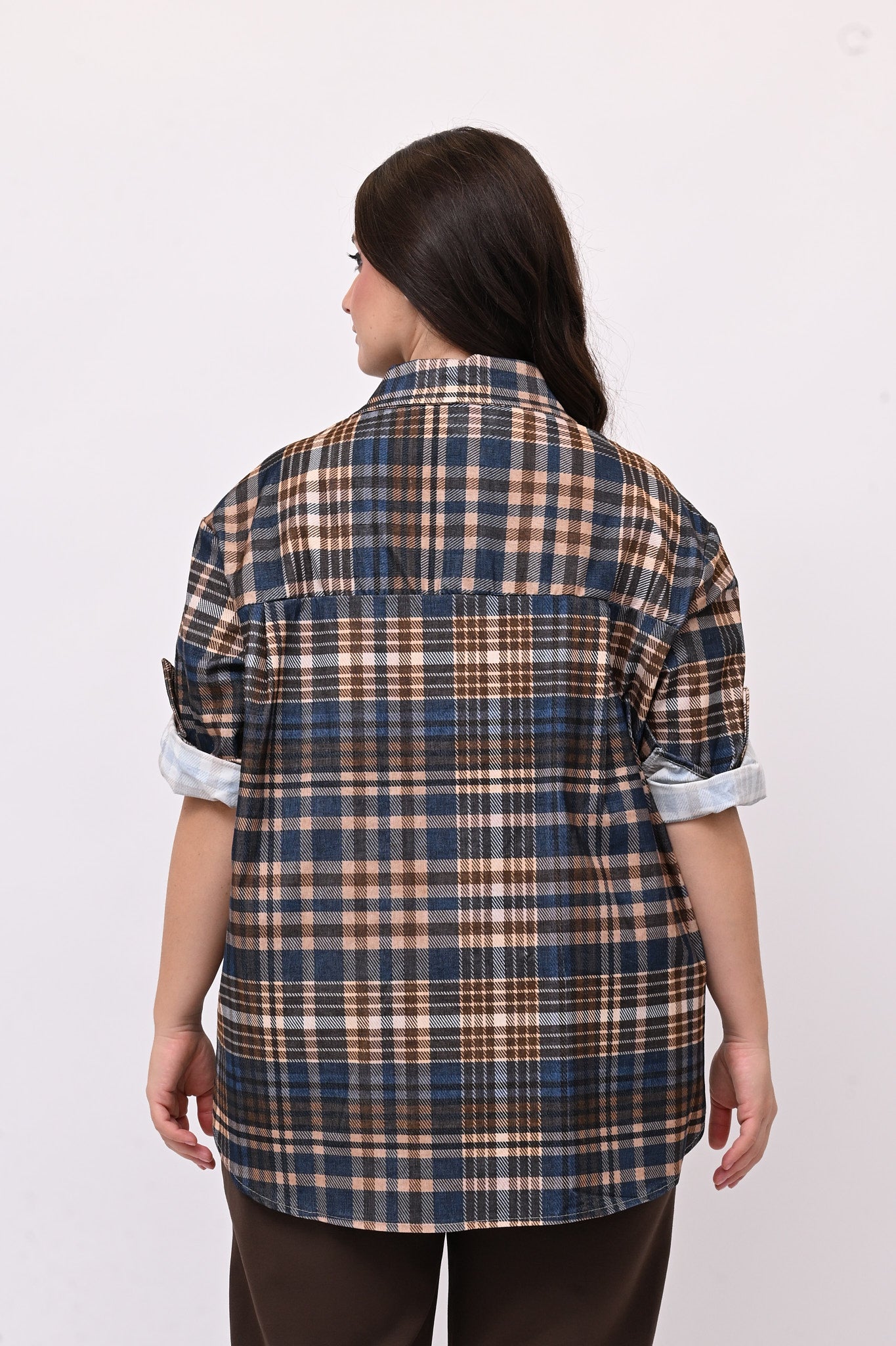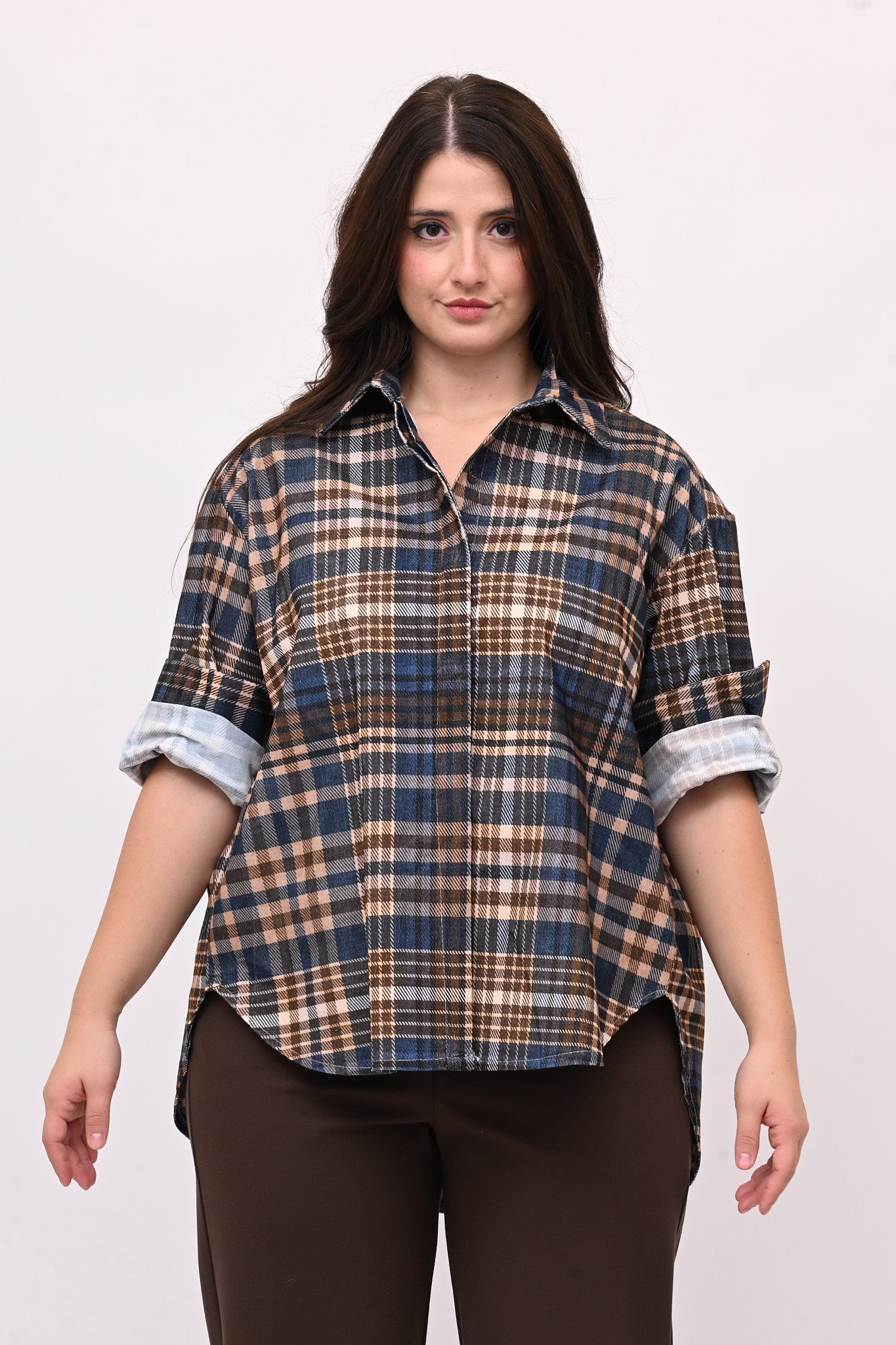 Camicia in tartan con maniche lunghe e taglio più lungo dietro, dalla vestibilità rilassata per comfort e praticità. Il motivo a quadri classico si adatta facilmente ad outfit casual e contemporanei.