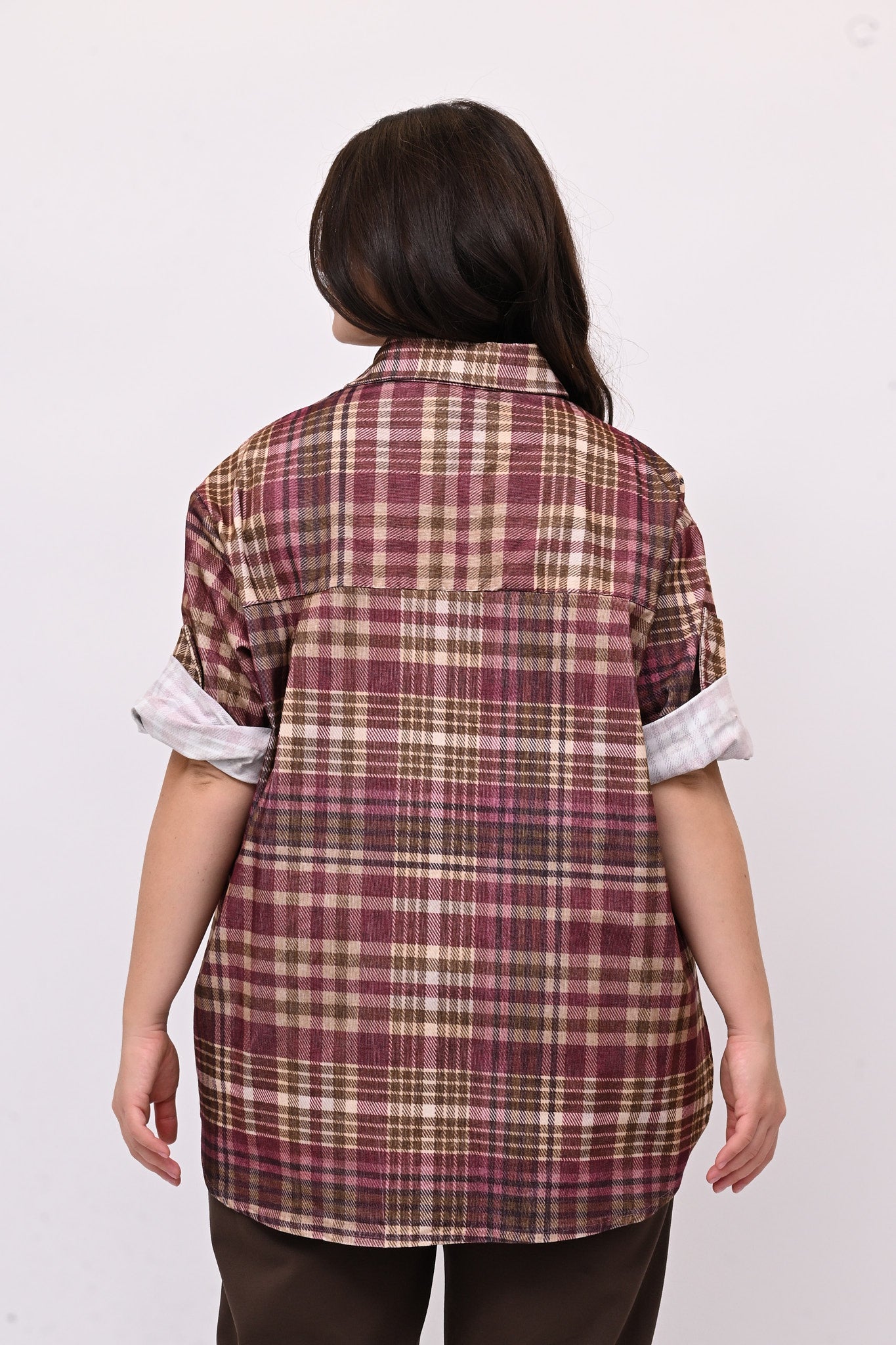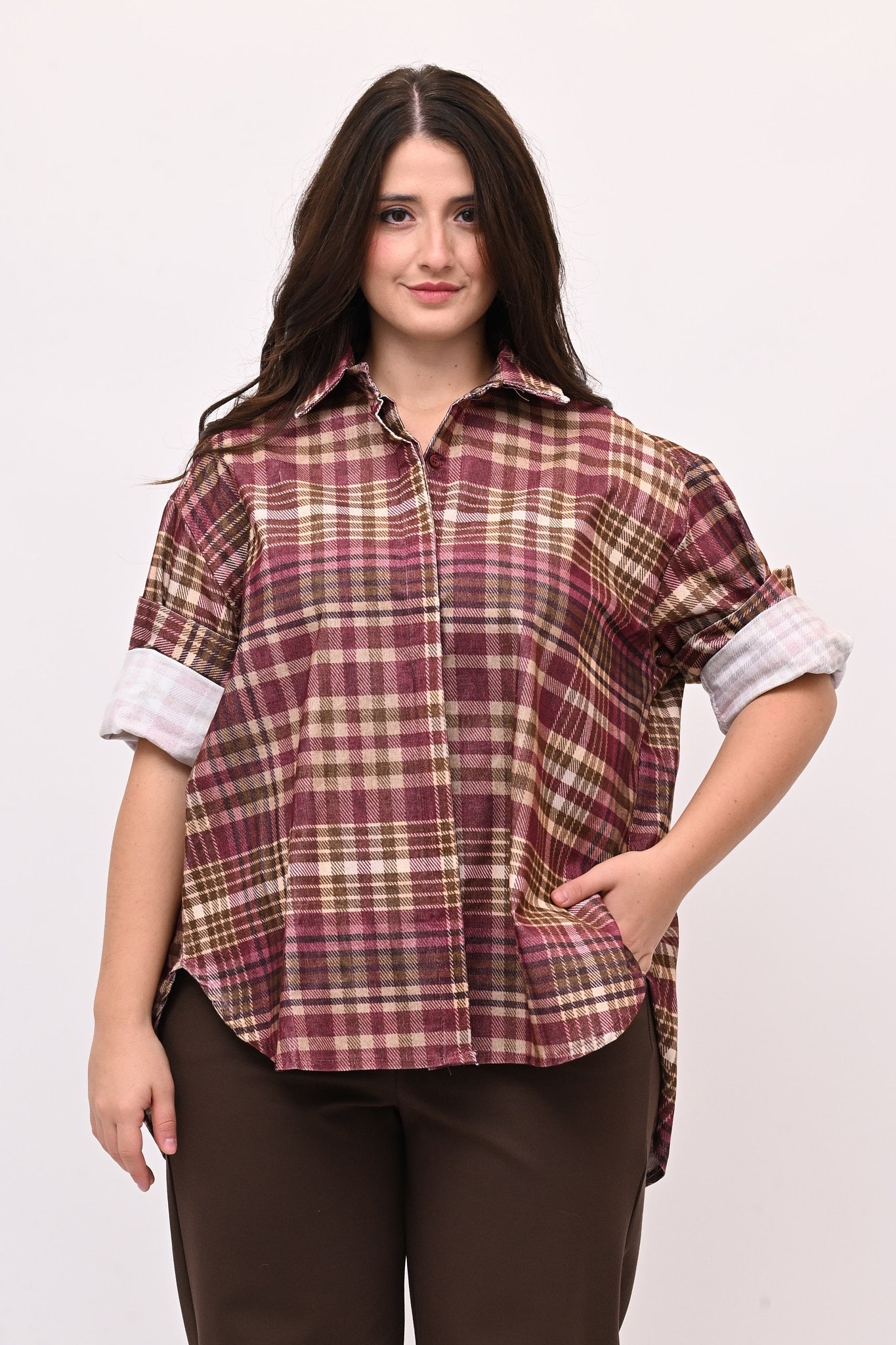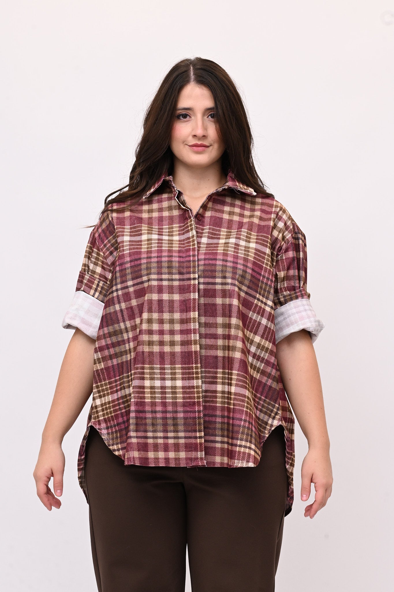 Camicia in tartan con maniche lunghe e taglio più lungo dietro, dalla vestibilità rilassata per comfort e praticità. Il motivo a quadri classico si adatta facilmente ad outfit casual e contemporanei.