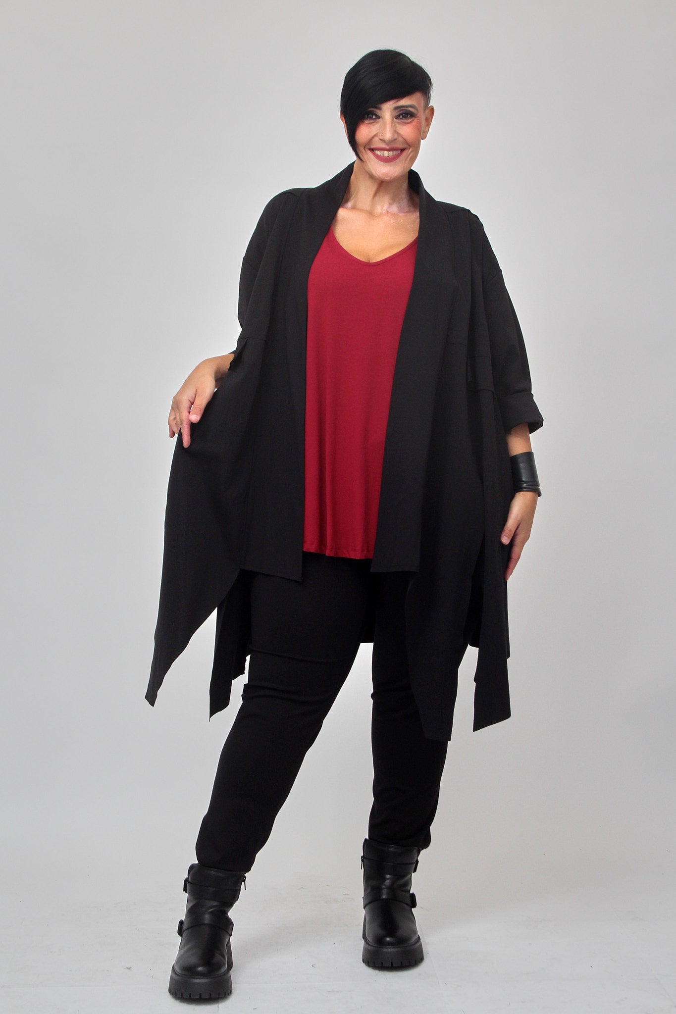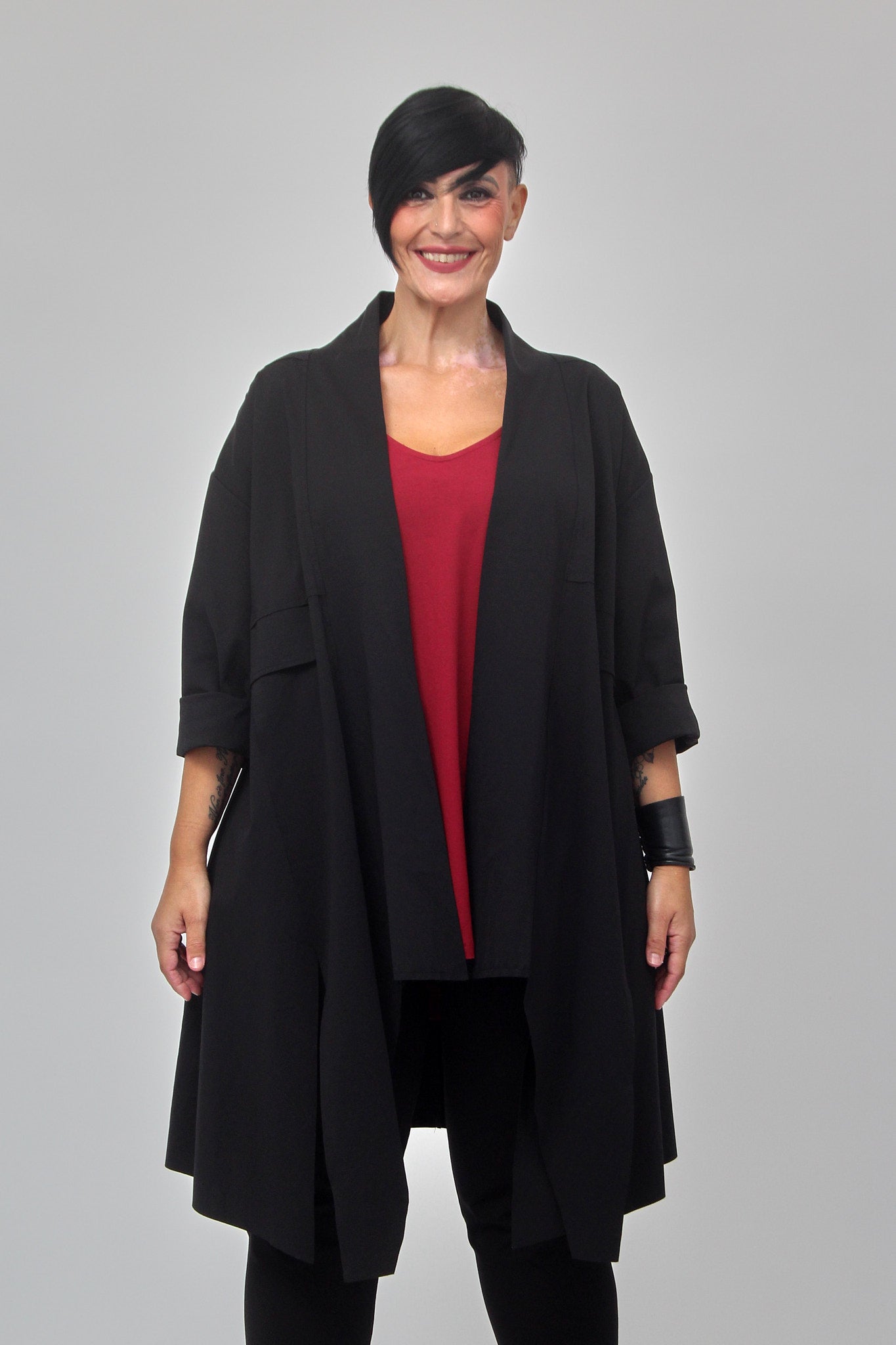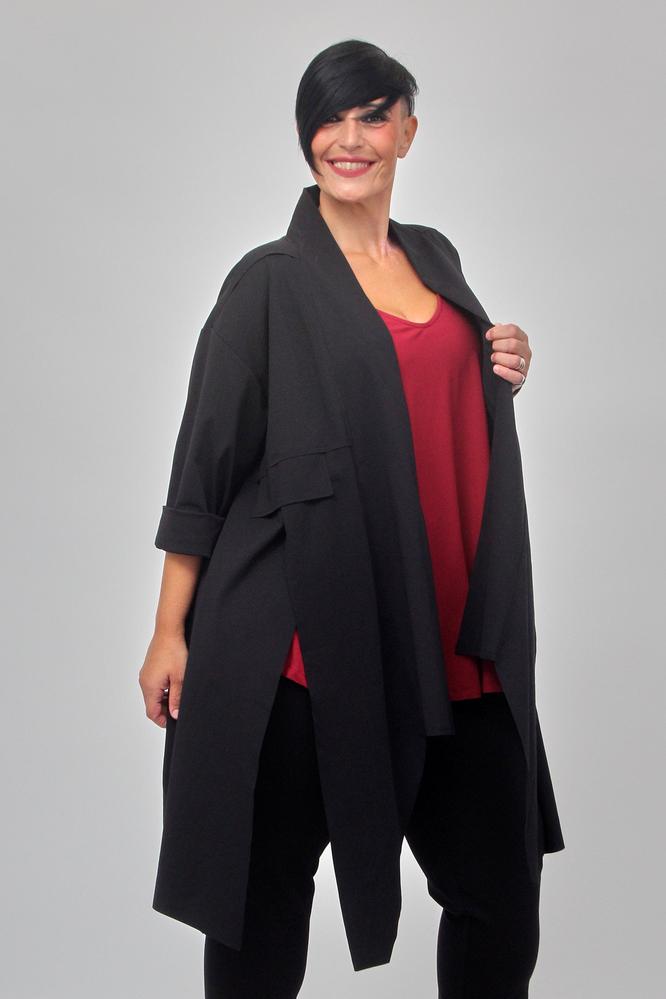 Questo spolverino presenta una silhouette over con cuciture esterne che ne definiscono la struttura. Il taglio asimmetrico e gli spacchi laterali assicurano una maggiore libertà di movimento e una vestibilità confortevole. Il bordo lungo il collo aggiunge un dettaglio distintivo, rendendo questo capo ideale per un look contemporaneo e versatile.