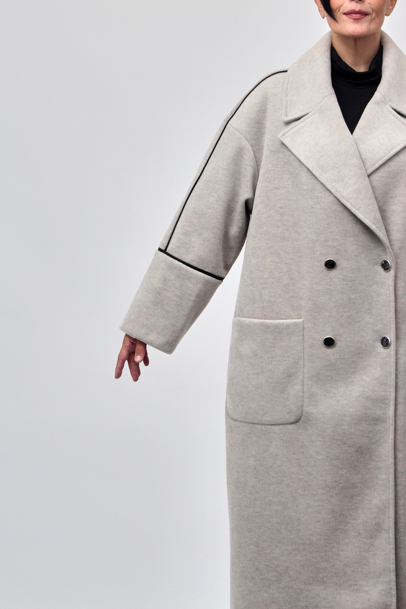 Cappotto doppio petto bordo ecopelle - Gesso
