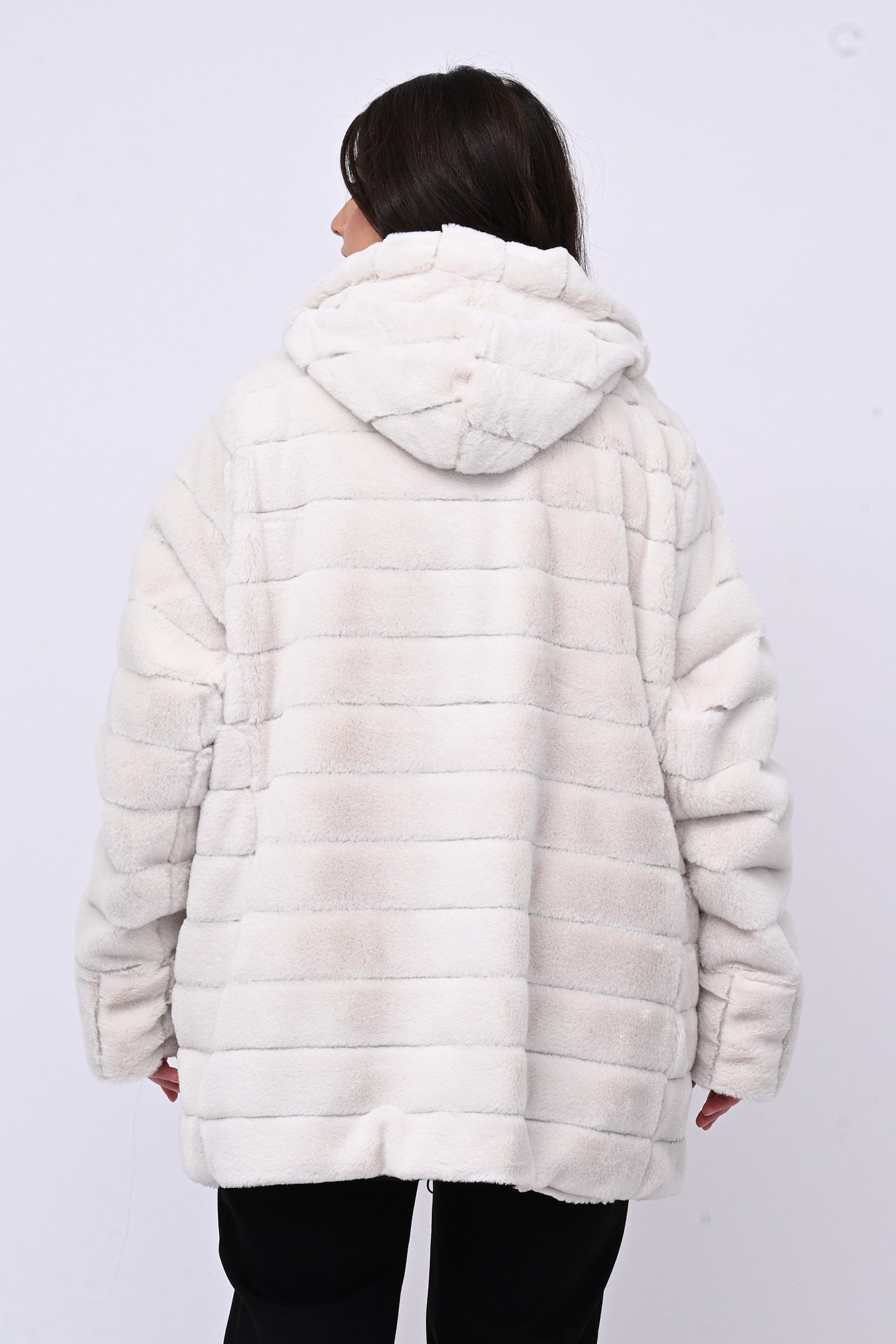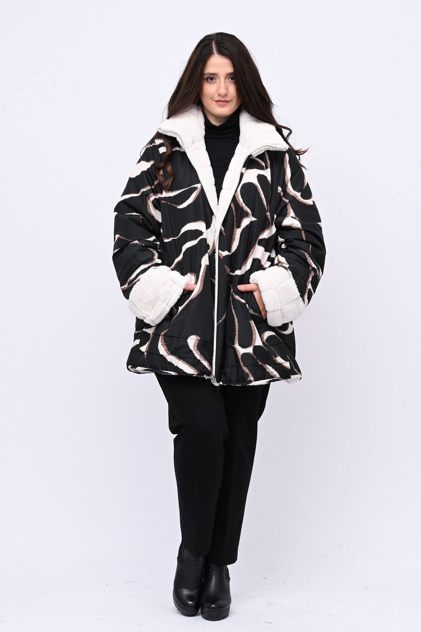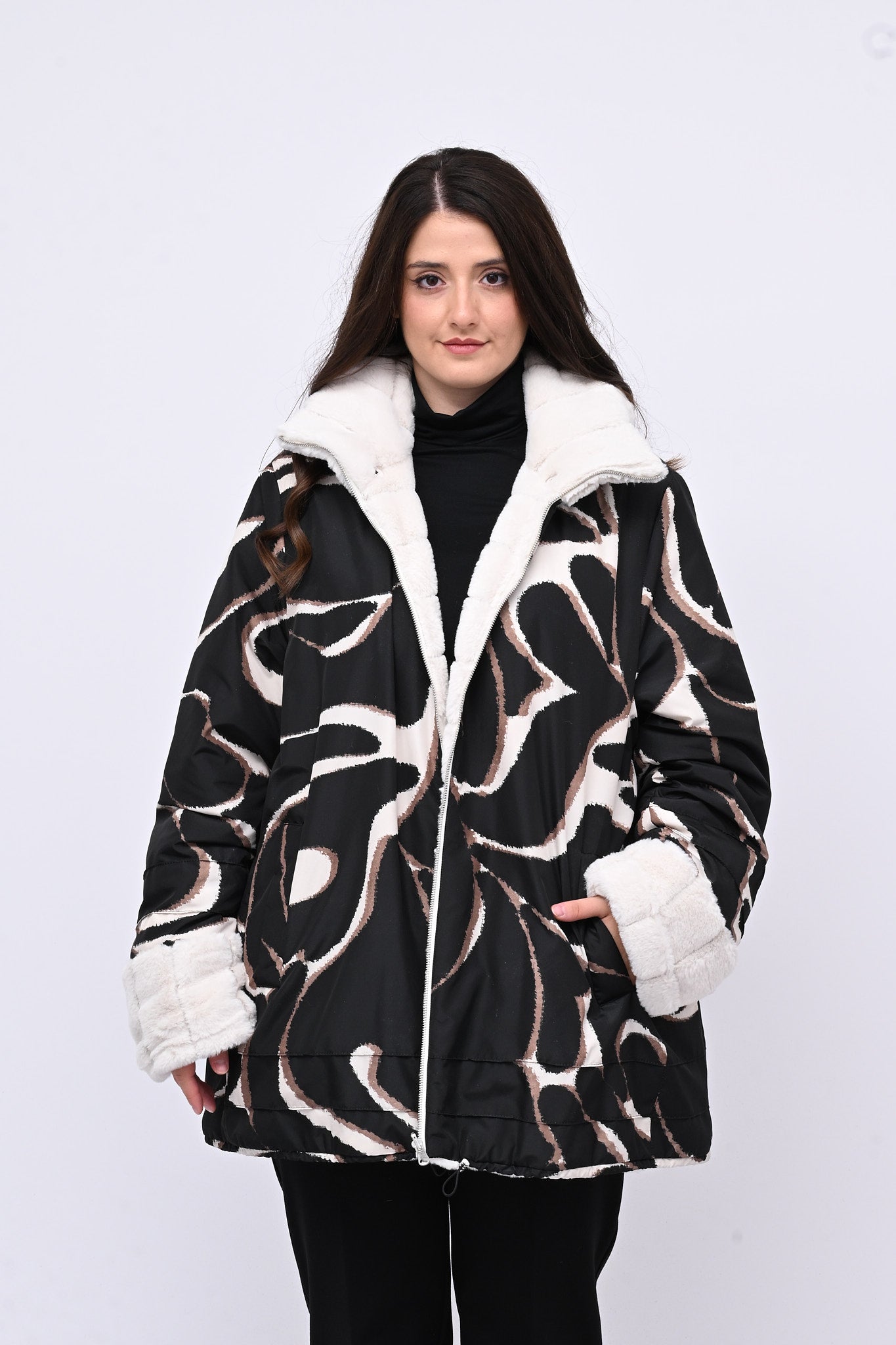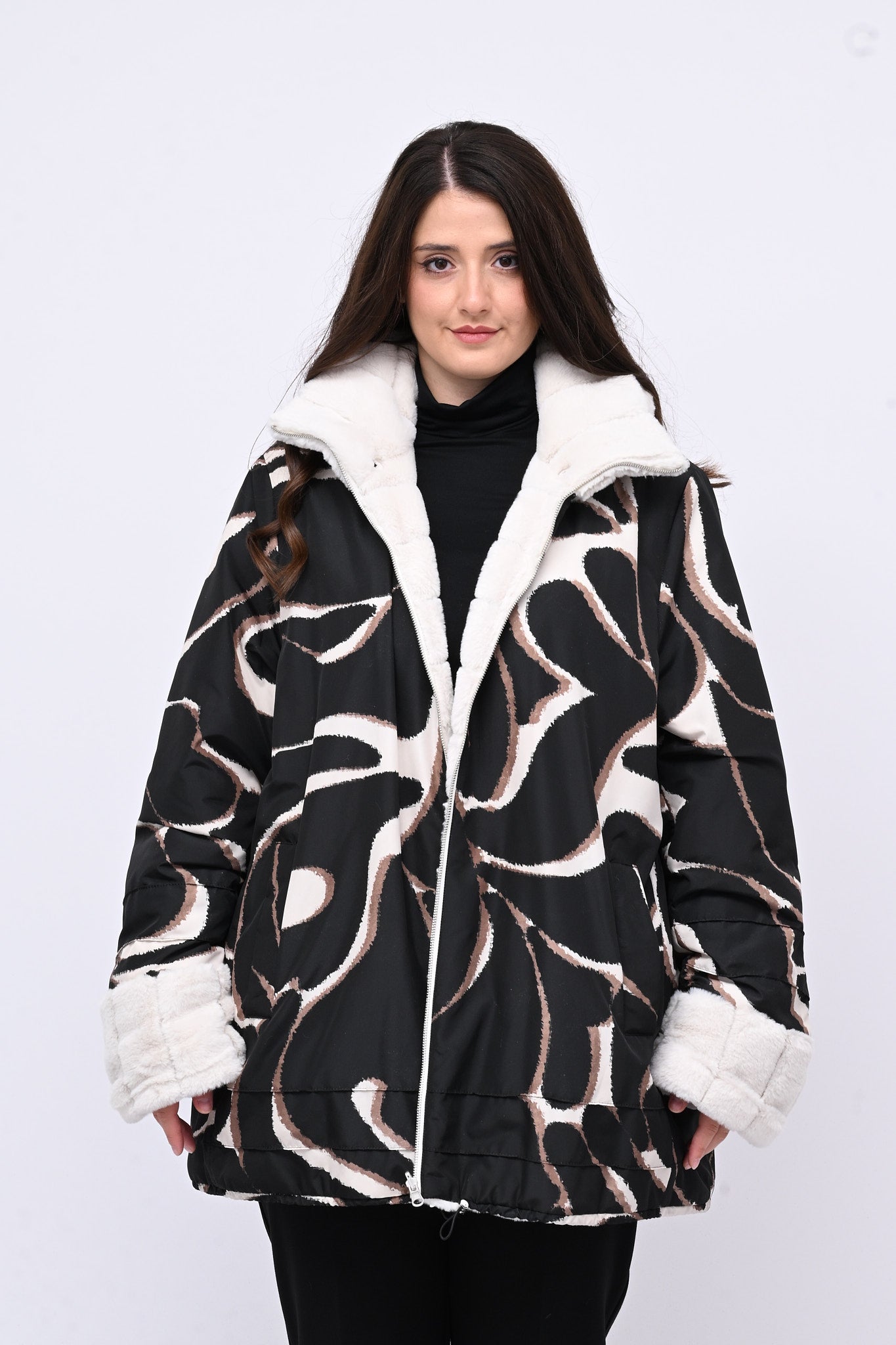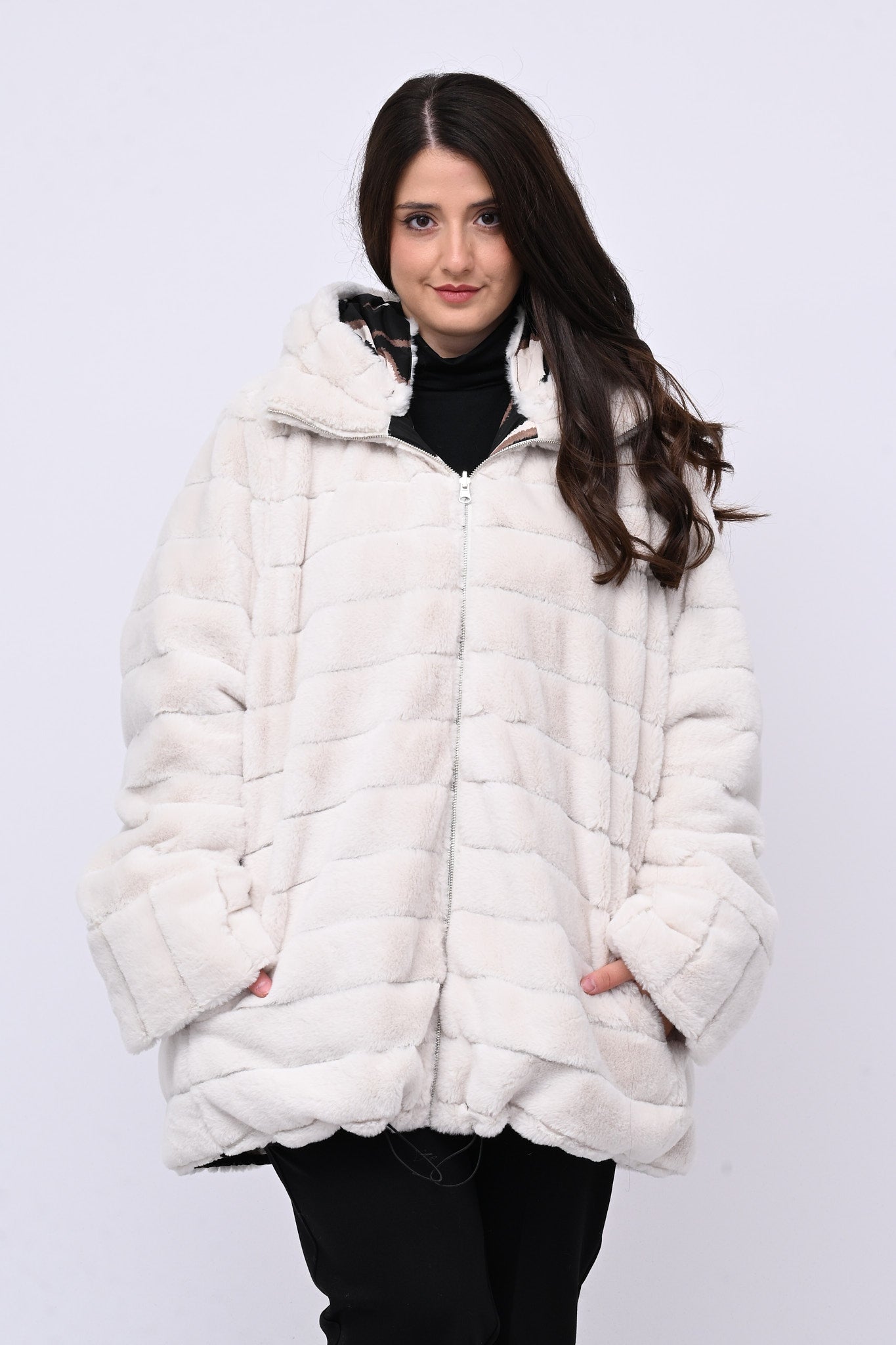 Piumino reversibile dotato di zip centrale, tasche, coulisse finale e cappuccio removibile. L’imbottitura in pelliccia garantisce calore, unendo versatilità e gusto raffinato. Comodo e pratico sul lato piumino, si trasforma in un capo sofisticato e easy chic sul lato pelliccia. Ideale per chi cerca un capo elegante e multifunzionale, perfetto in ogni contesto.