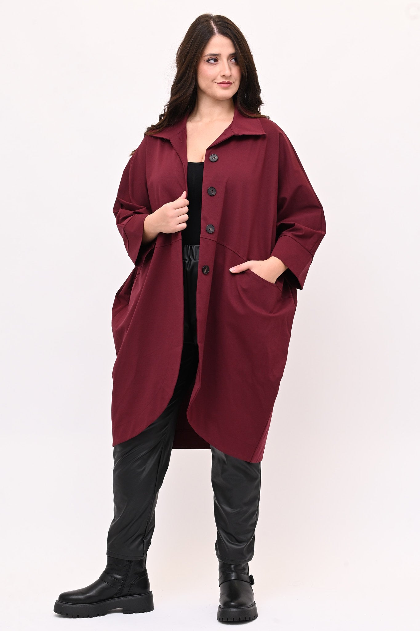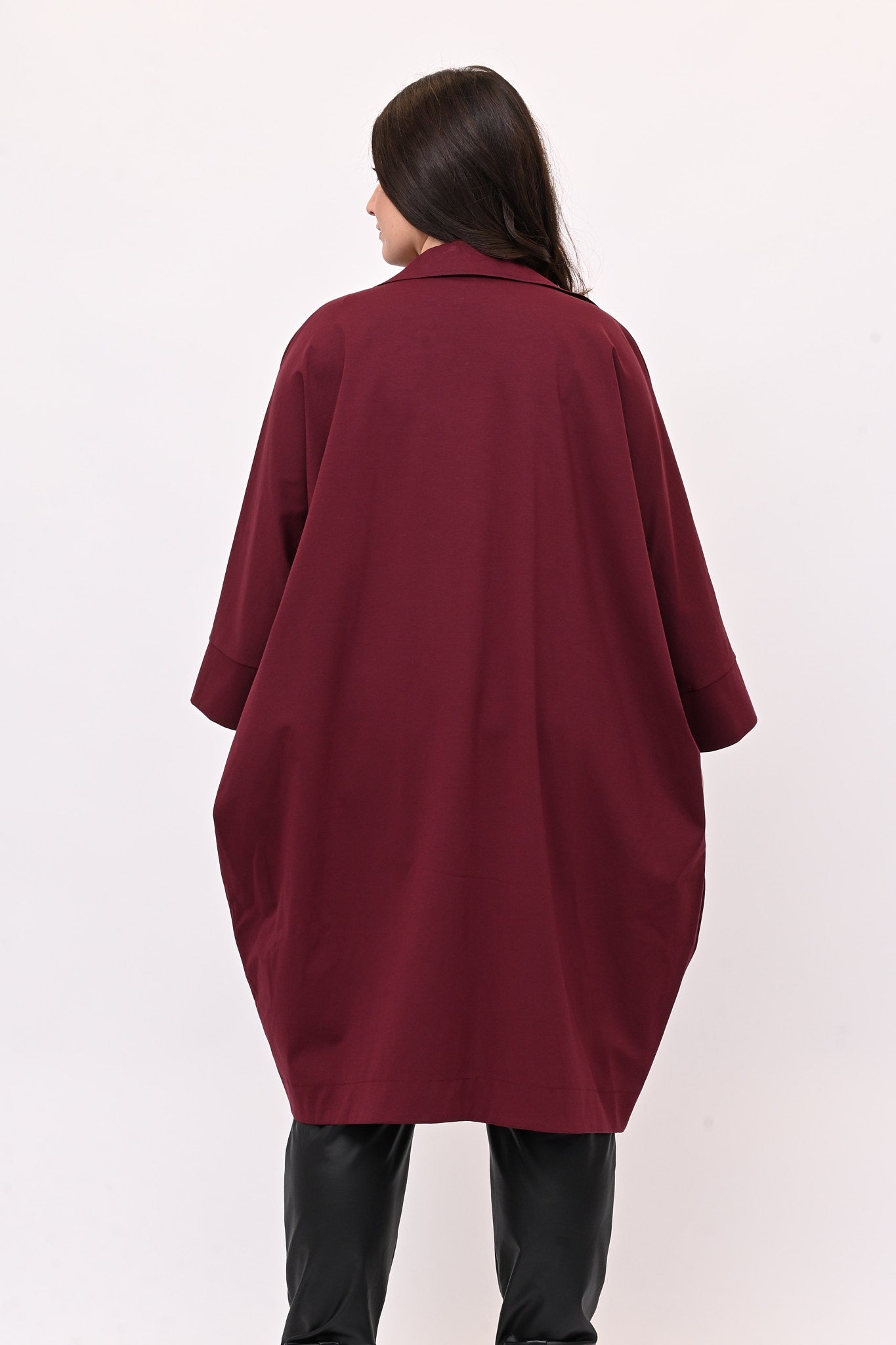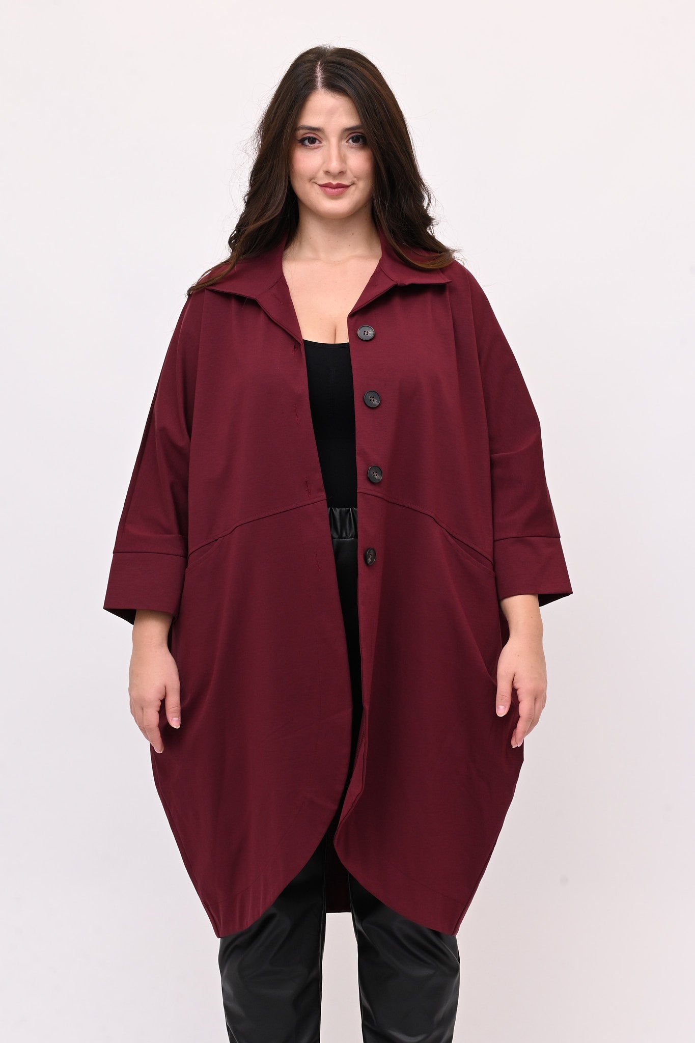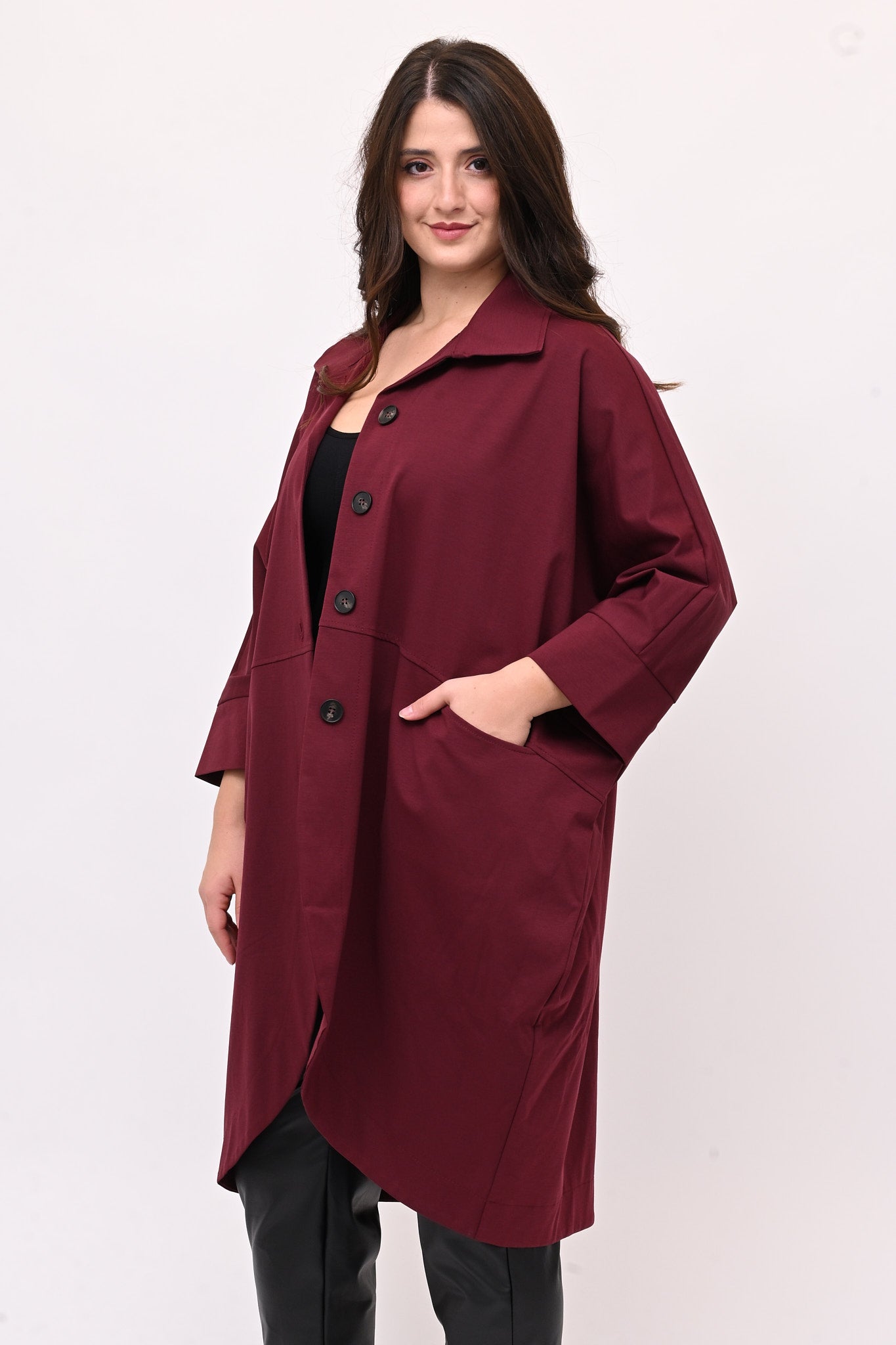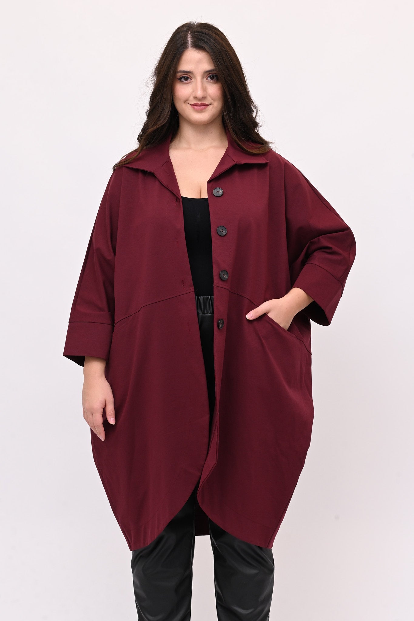 Spolverino modello a ovetto, bottoni frontali, spalle scese e tasche. Versatile e funzionale è perfetto per ogni occasione. La vestibilità è over, rilassata e moderna. Ideale per chi cerca stile e comodità senza rinunciare alla femminilità.