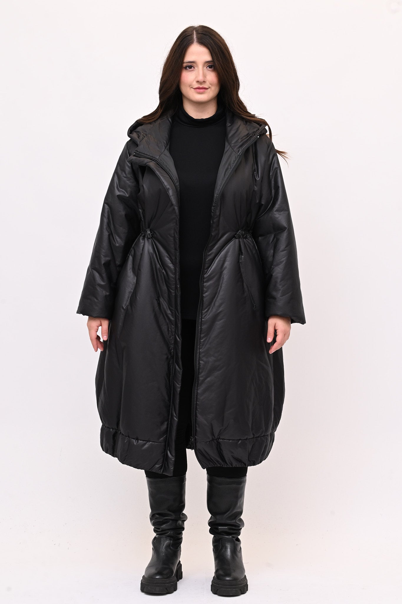 Piumino lungo, con cappuccio e zip con doppio cursore a scomparsa. La coulisse in vita crea un effetto arricciato che slancia la figura, unendo stile e praticità. L'imbottitura sintetica garantisce calore senza appesantire. Pratico e dal look pulito, è ideale per affrontare l’inverno con eleganza e comfort.