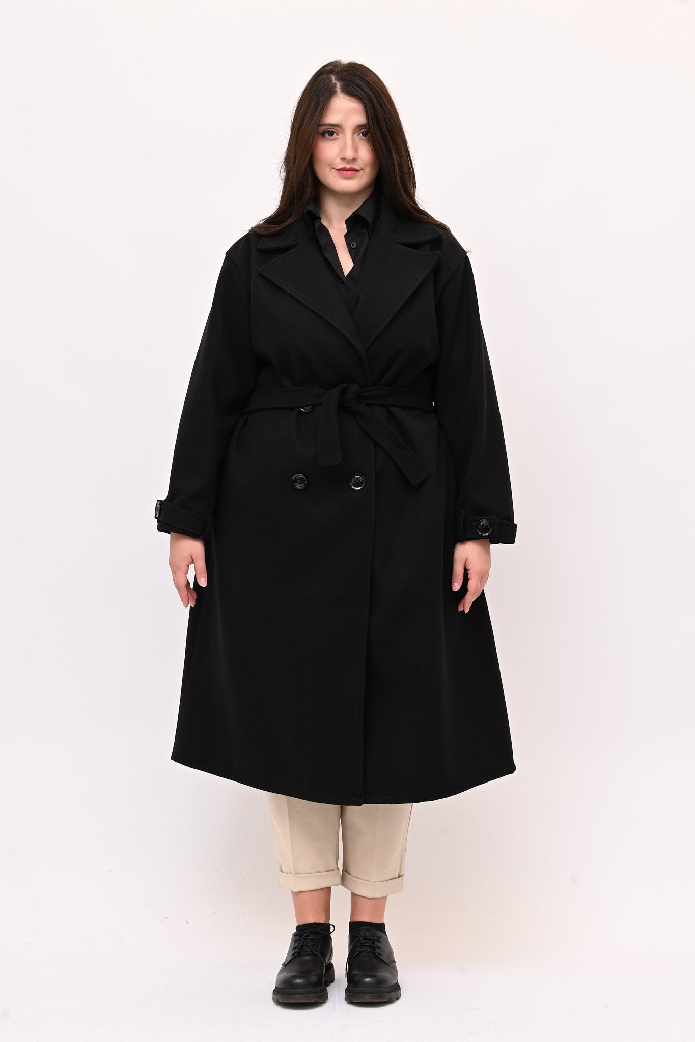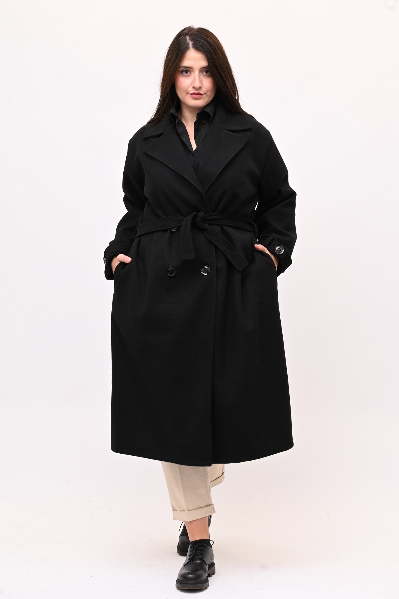 Cappotto lungo, doppio petto, cintura e rever a lancia, unisce eleganza e funzionalità. La vestibilità avvolgente garantisce comfort e protezione dal freddo, rendendolo perfetto per chi cerca un capo sofisticato e femminile, ideale per completare look raffinati.