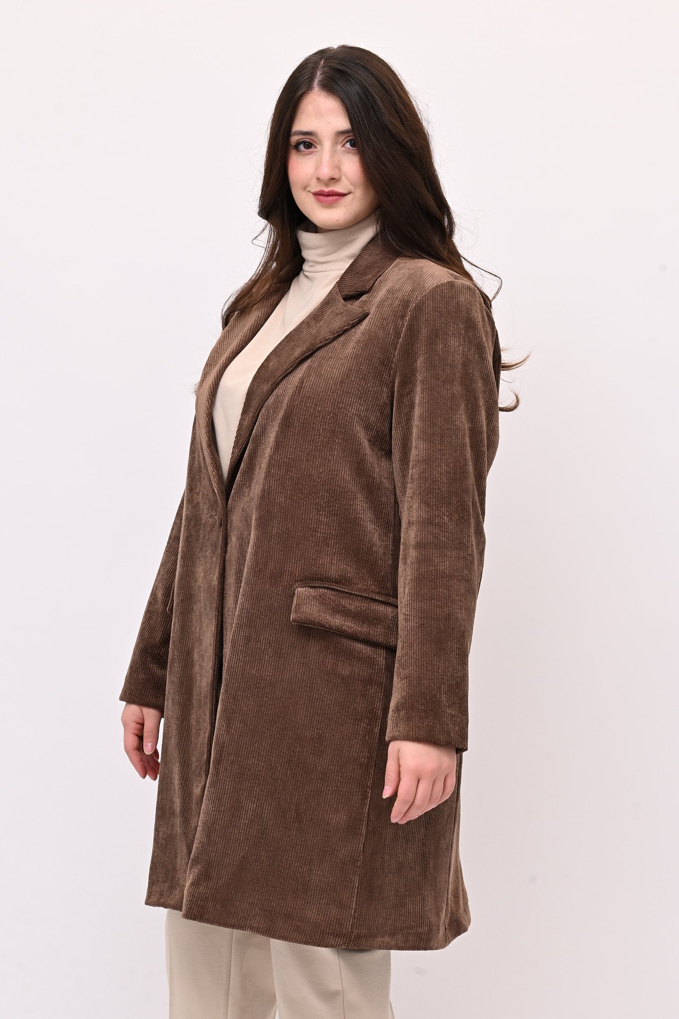 Cappotto coste velluto - Castagna