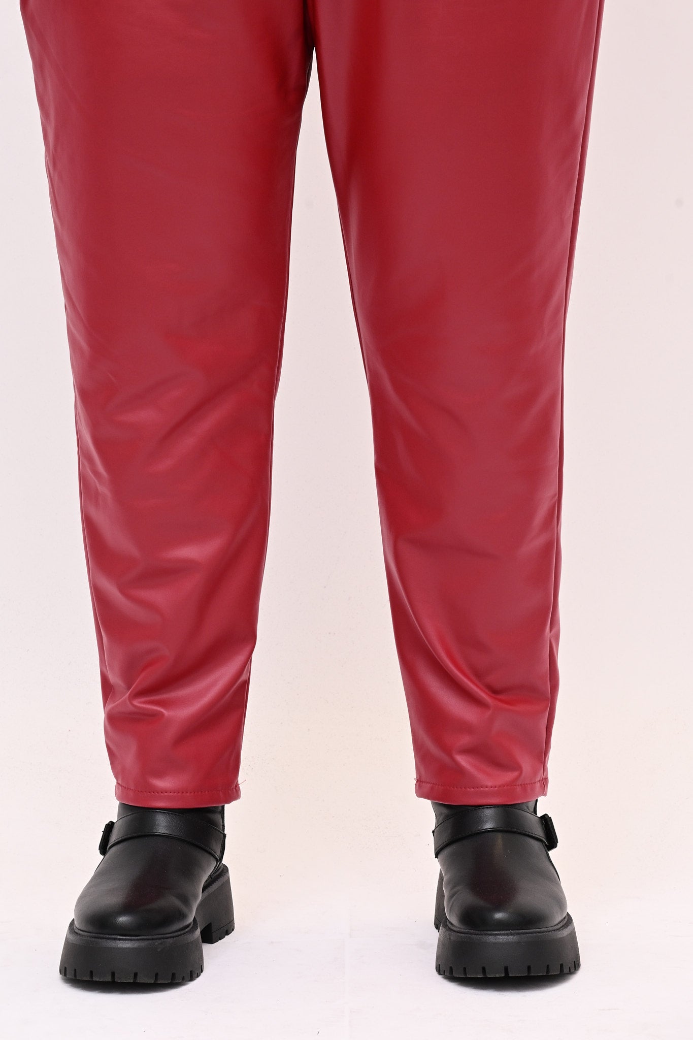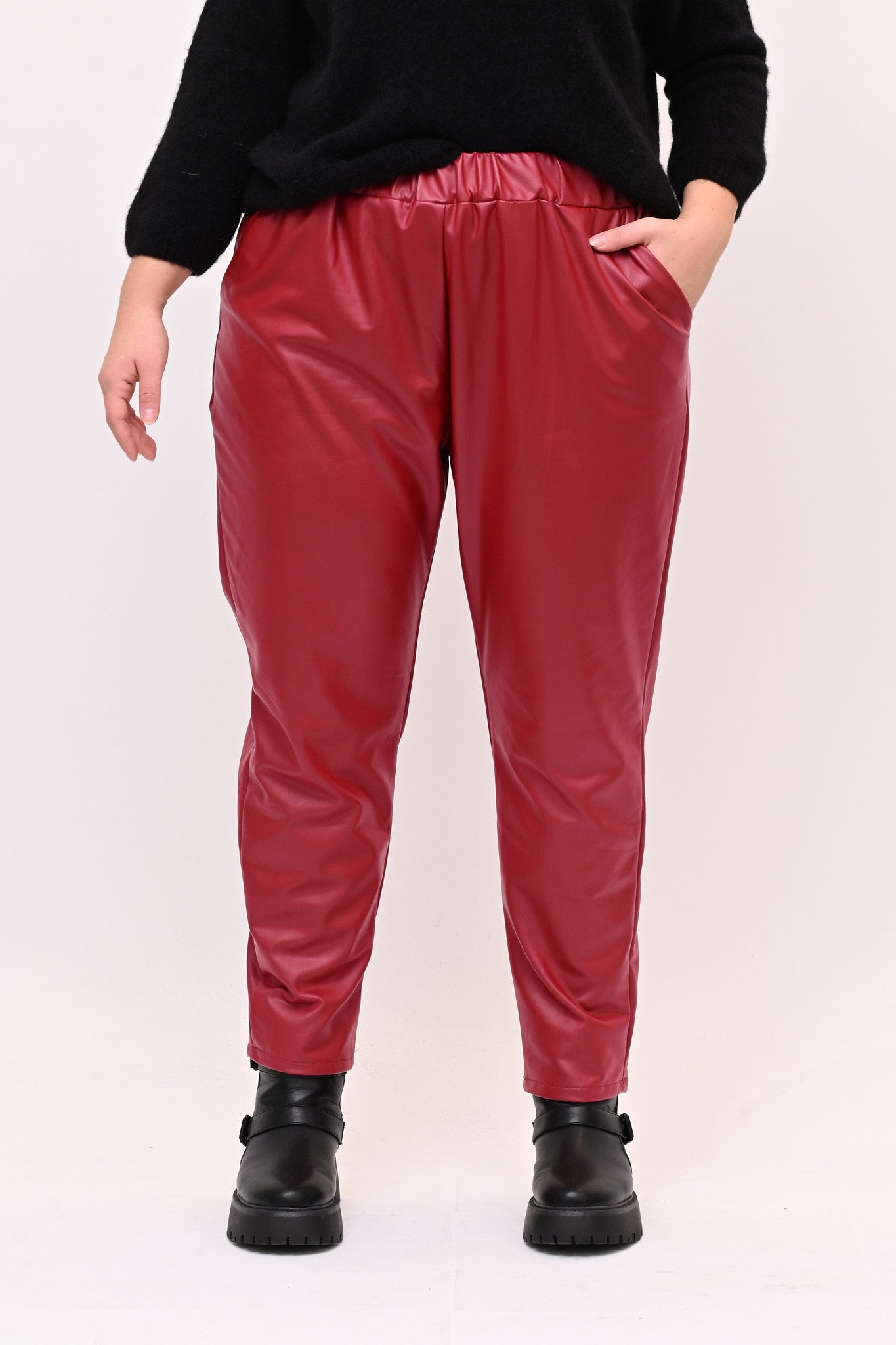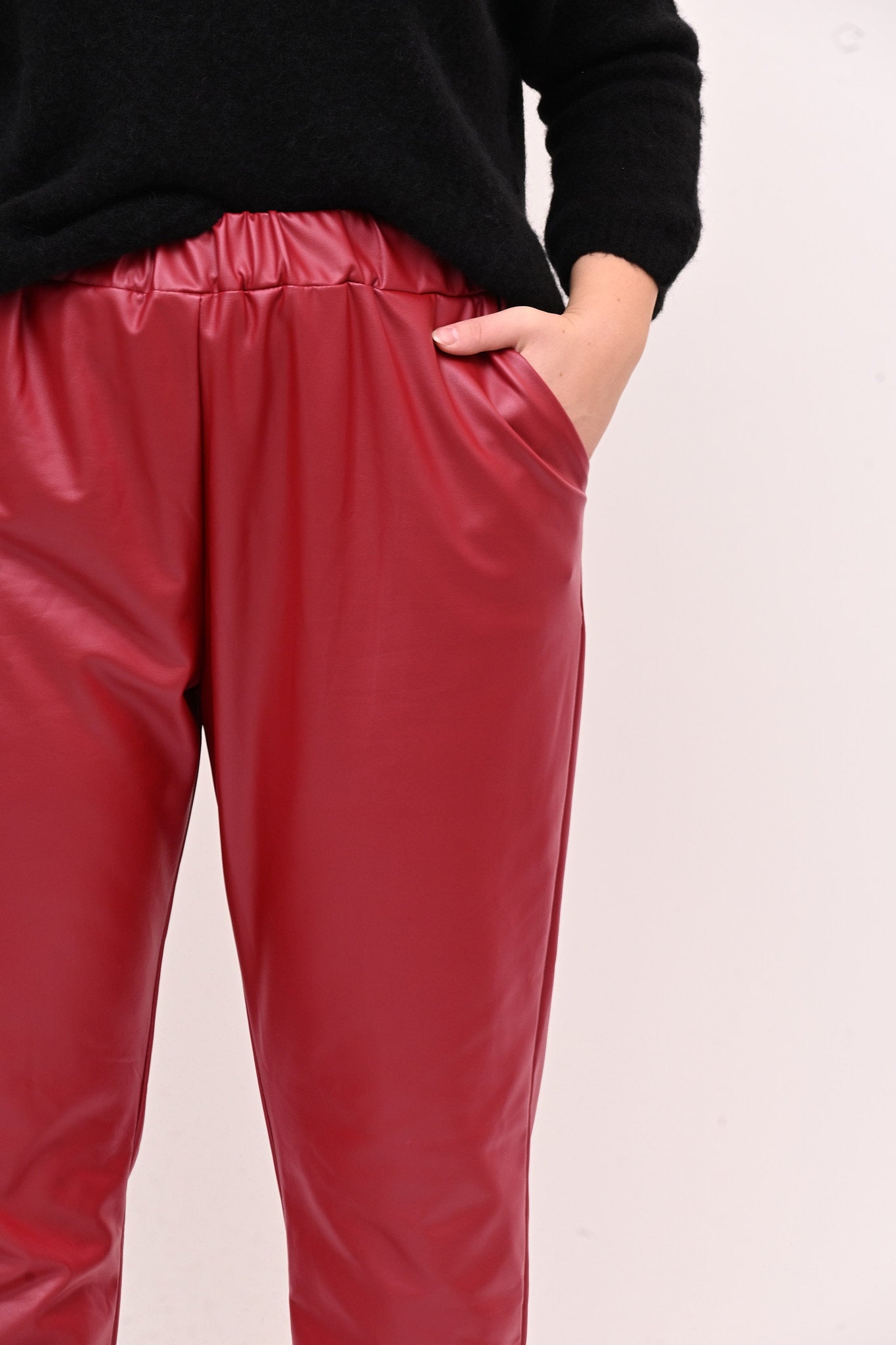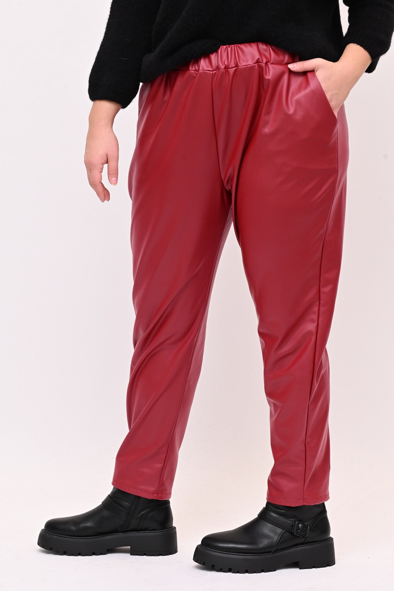 Pantaleggins in ecopelle elasticizzata, con elastico in vita e tasche. Combinano comfort e stile contemporaneo e assicurano una vestibilità aderente ma flessibile. Ideali un look moderno e versatile e per completare outfit dal carattere deciso e grintoso.