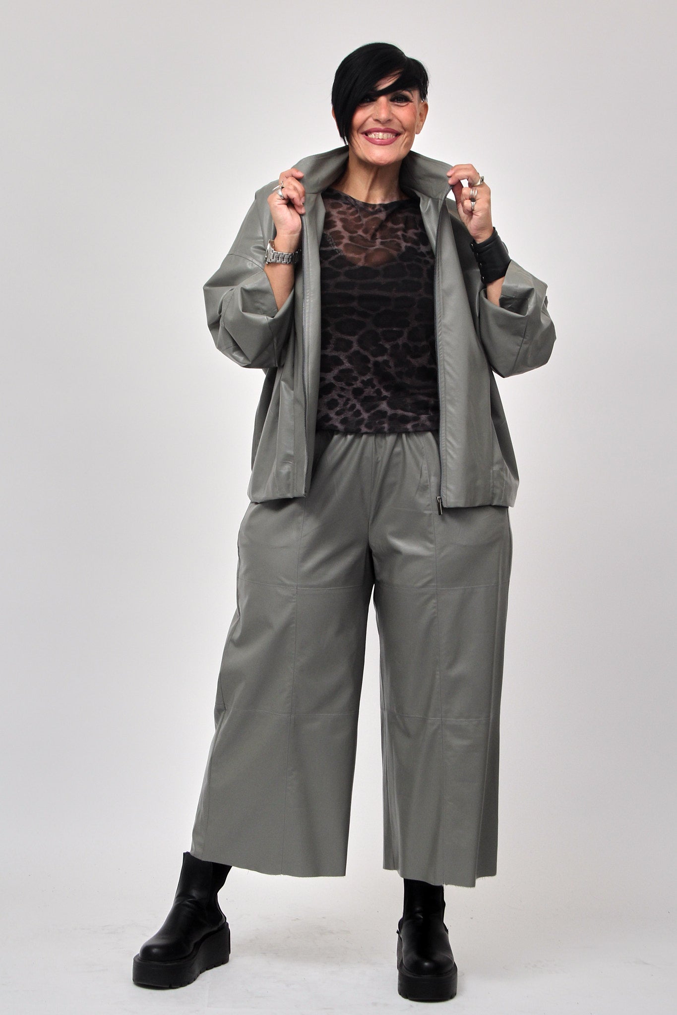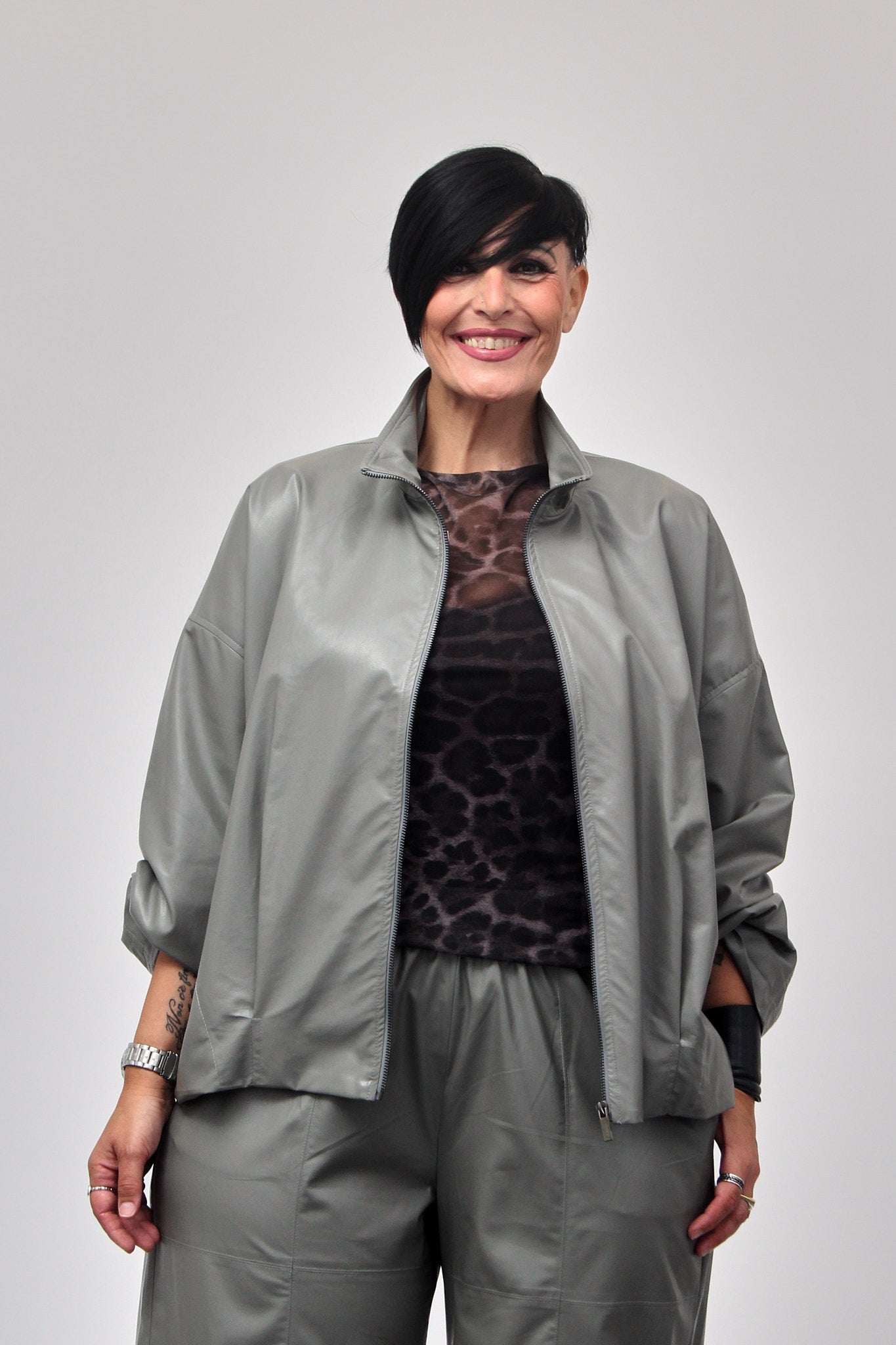 Questo bomber in ecopelle liscia offre un comfort oversize con un design contemporaneo. Dotato di fondo mezzo elastico che garantisce vestibilità e praticità, presenta tasche a scomparsa per un look pulito e una chiusura lampo in metallo che aggiunge resistenza e stile. Perfetto per chi vuole un capo versatile e di tendenza.