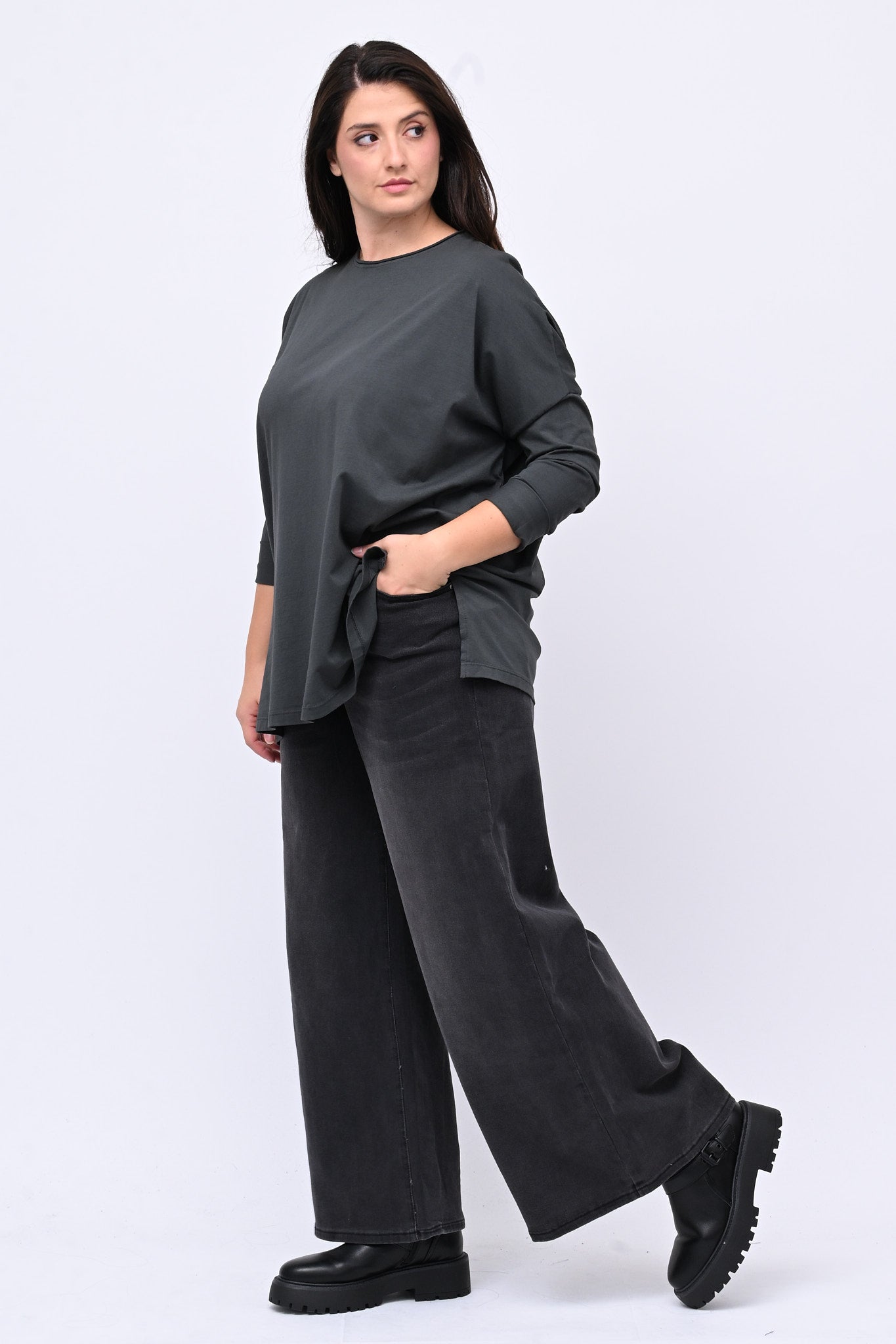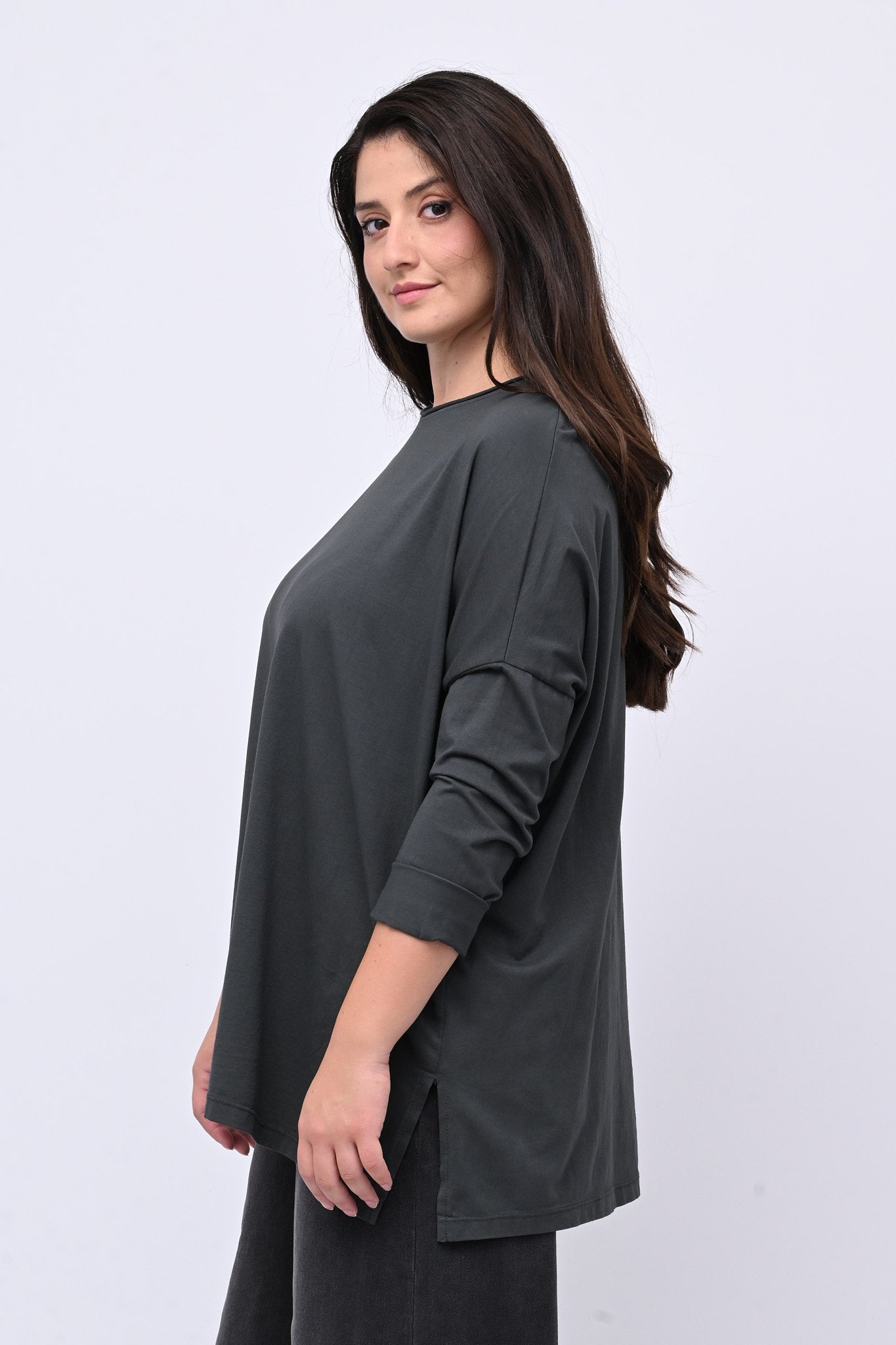 Maglia in cotone elasticizzato, modello a scatoletta con girocollo, dalla vestibilità comoda e versatile, con spacchi laterali che facilitano i movimenti mantenendo uno stile moderno. Un capo basico indispensabile nel guardaroba, perfetto per ogni occasione.