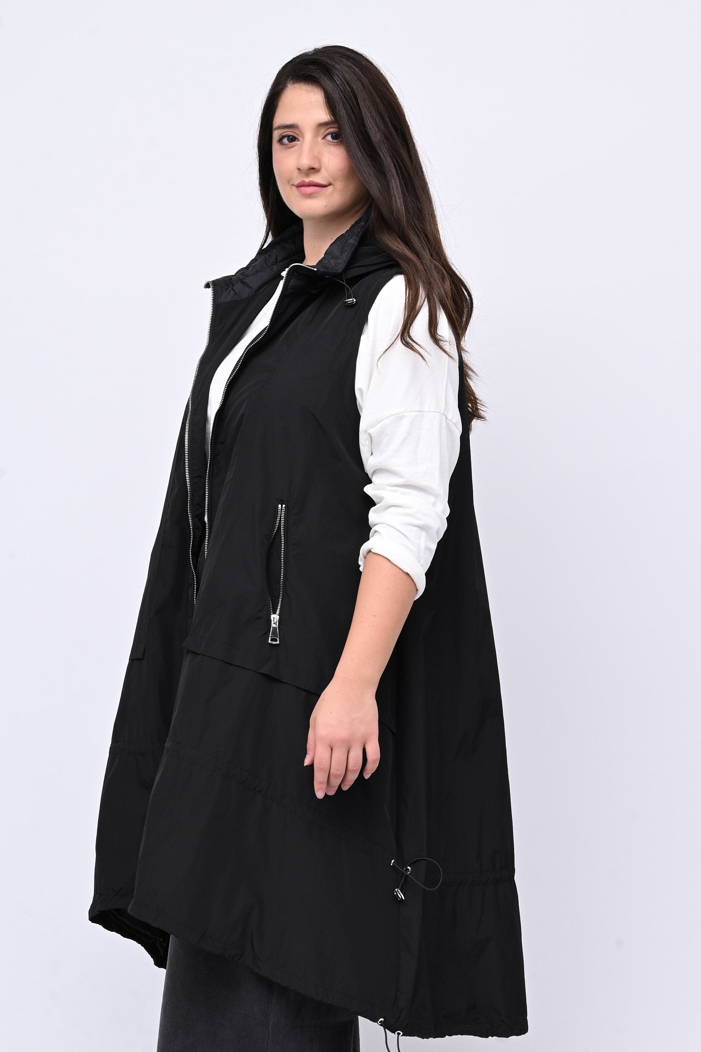 Maxi gilet zip e lacci - Nero