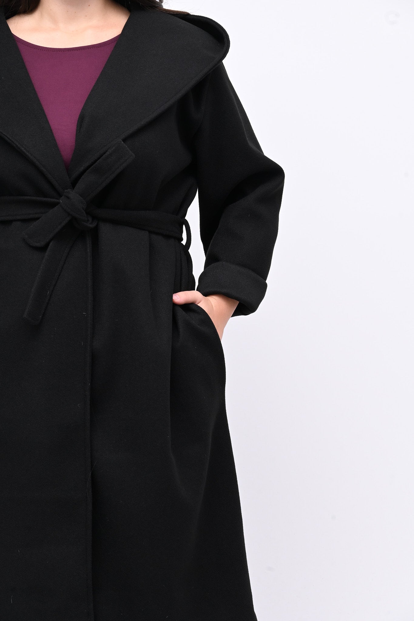 Cappotto lungo, monobottone, con cintura e cappuccio. La vestibilità è avvolgente e assicura comfort e protezione dal freddo. Elegante e sofisticato, è ideale per un look raffinato e femminile.