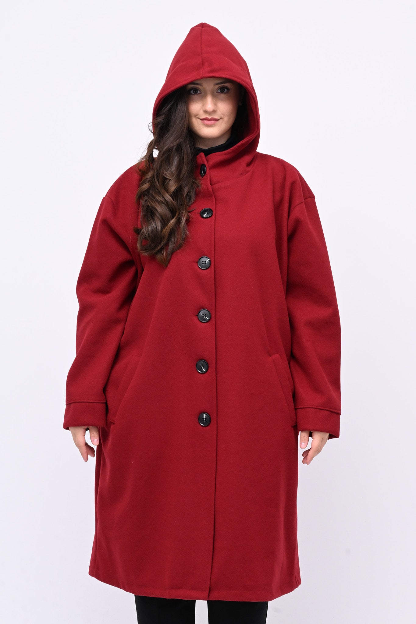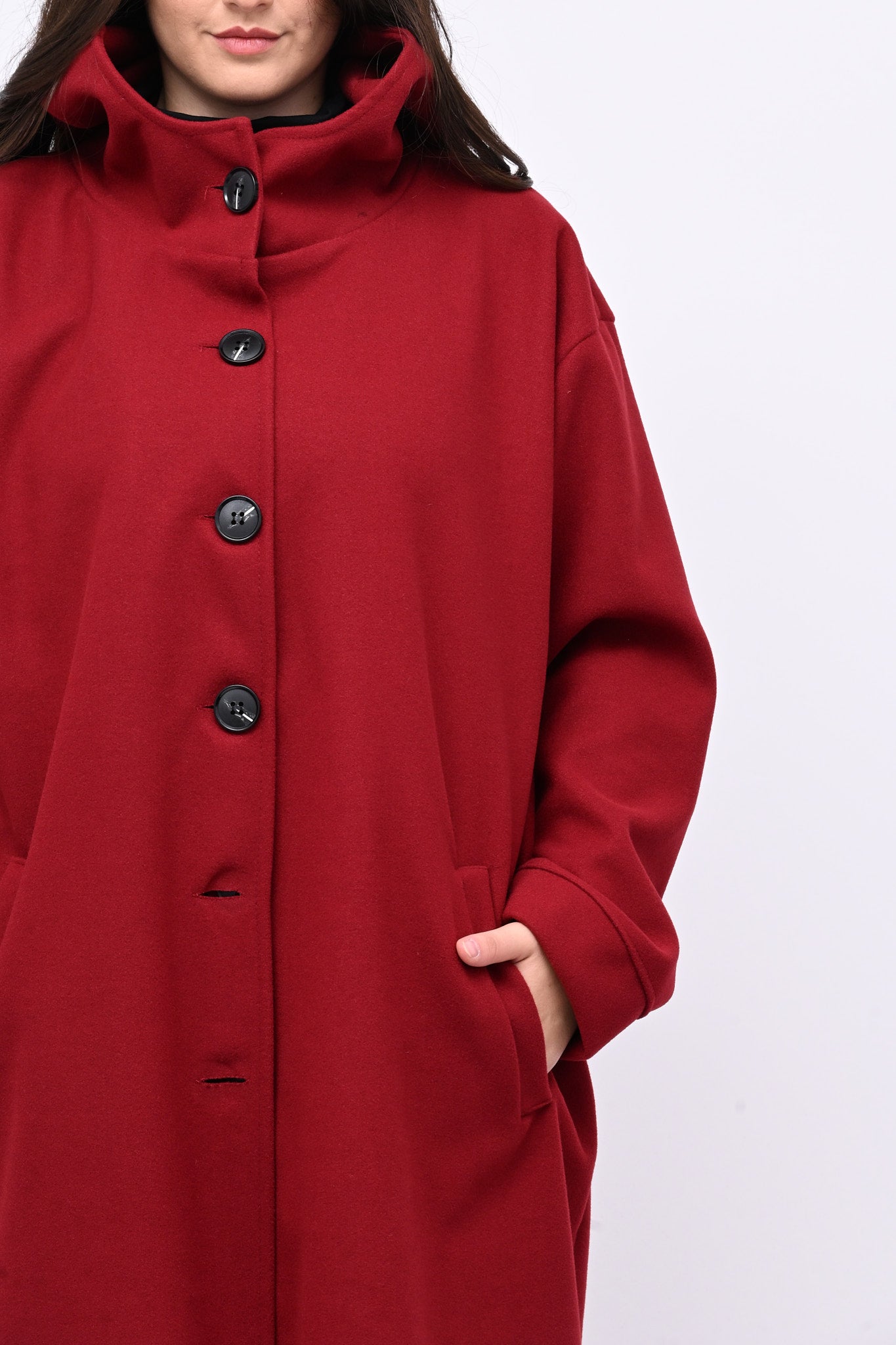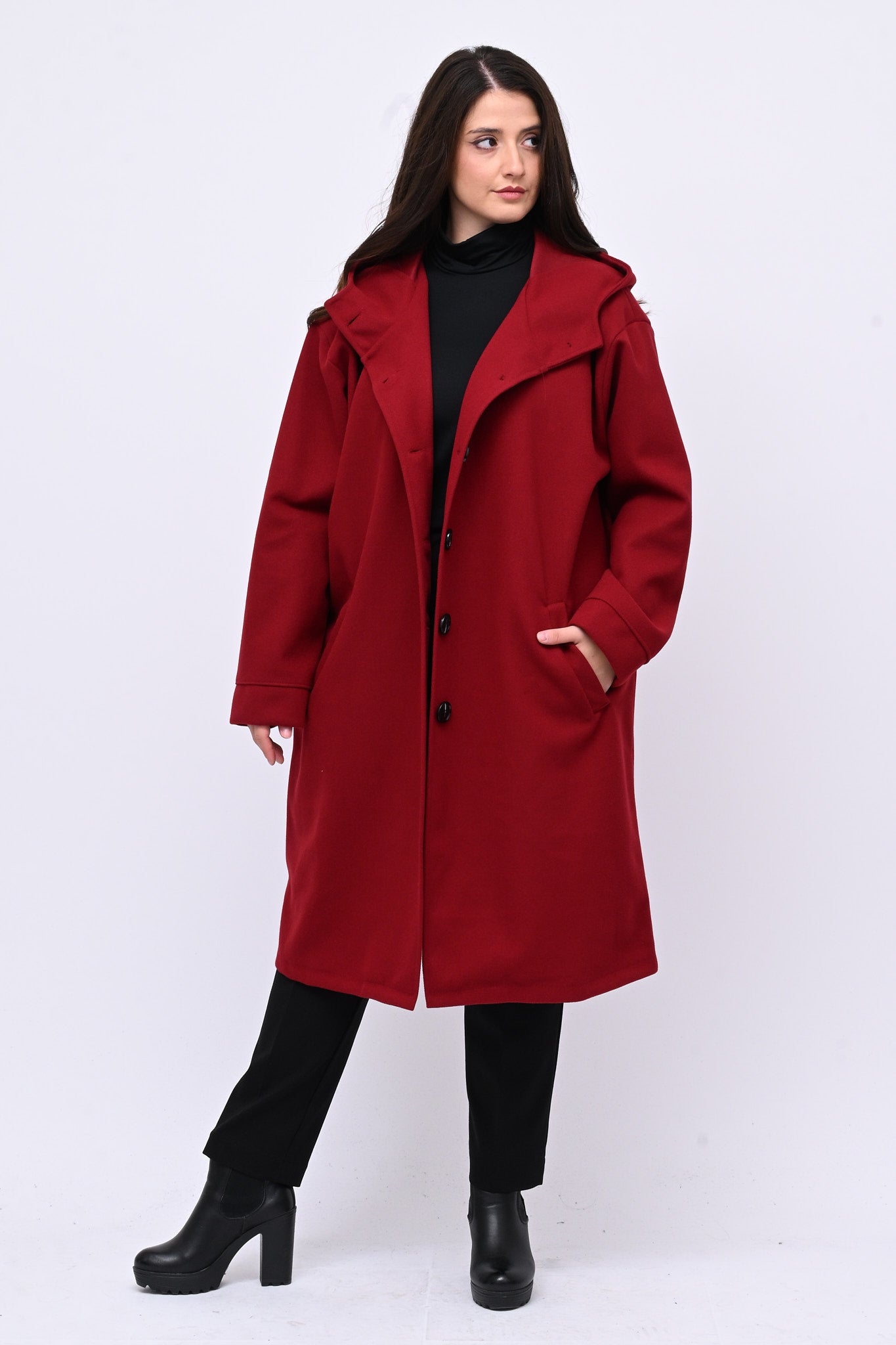 Cappotto in viscosa, sfoderato, lunghezza al polpaccio. Dotato di bottoni centrali, cappuccio e tasche frontali, combina funzionalità e un design raffinato. Perfetto per chi cerca un capo versatile e confortevole da indossare durante la stagione fredda.