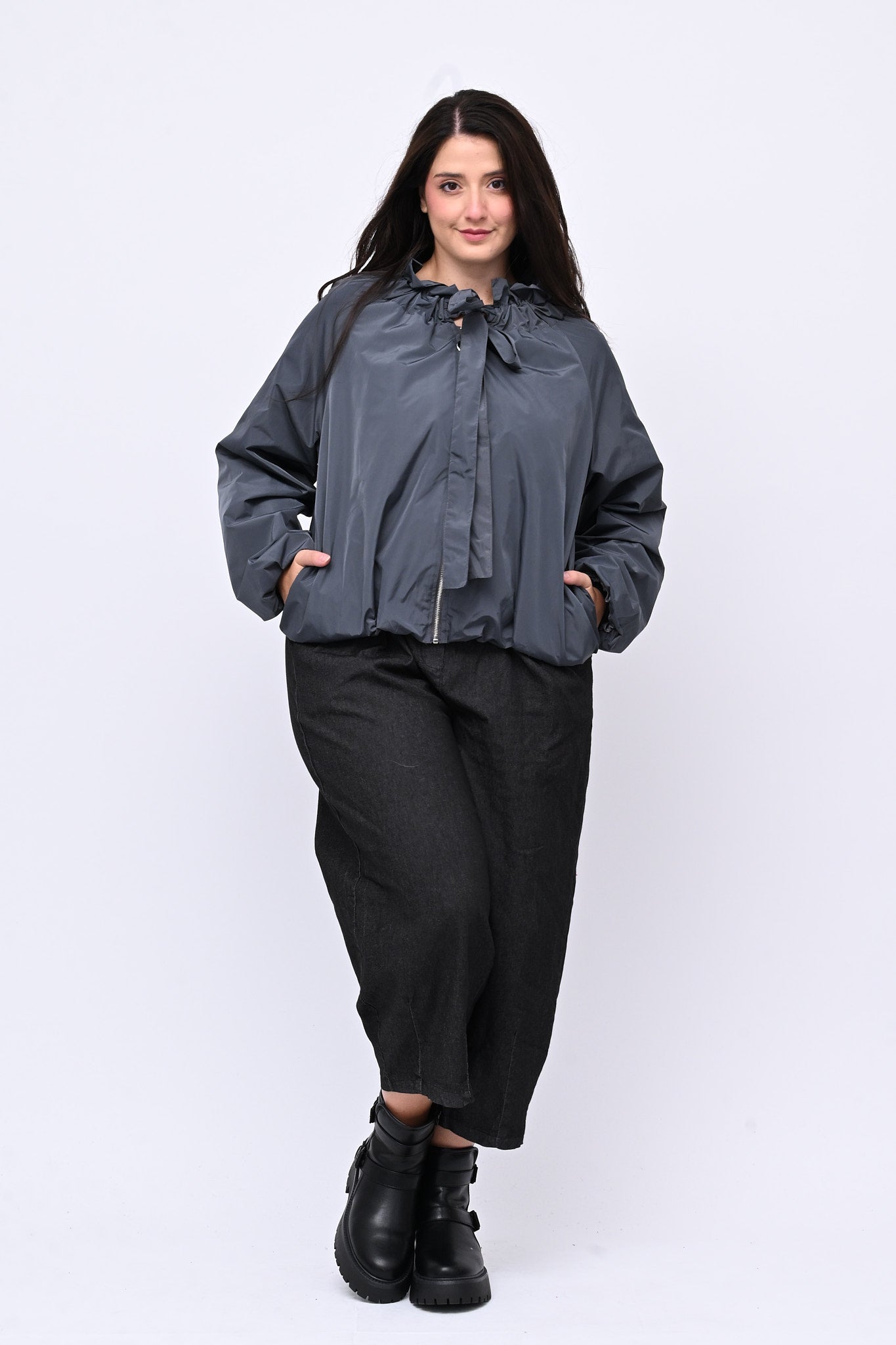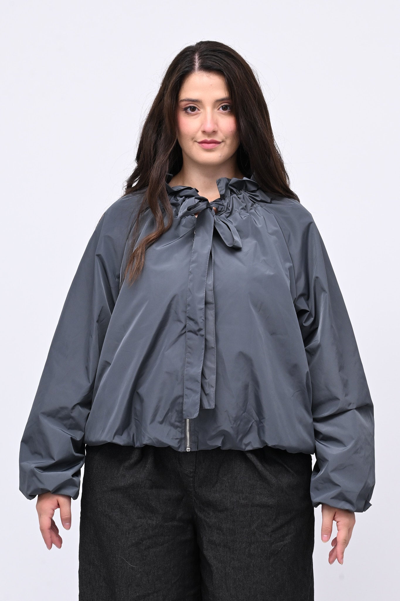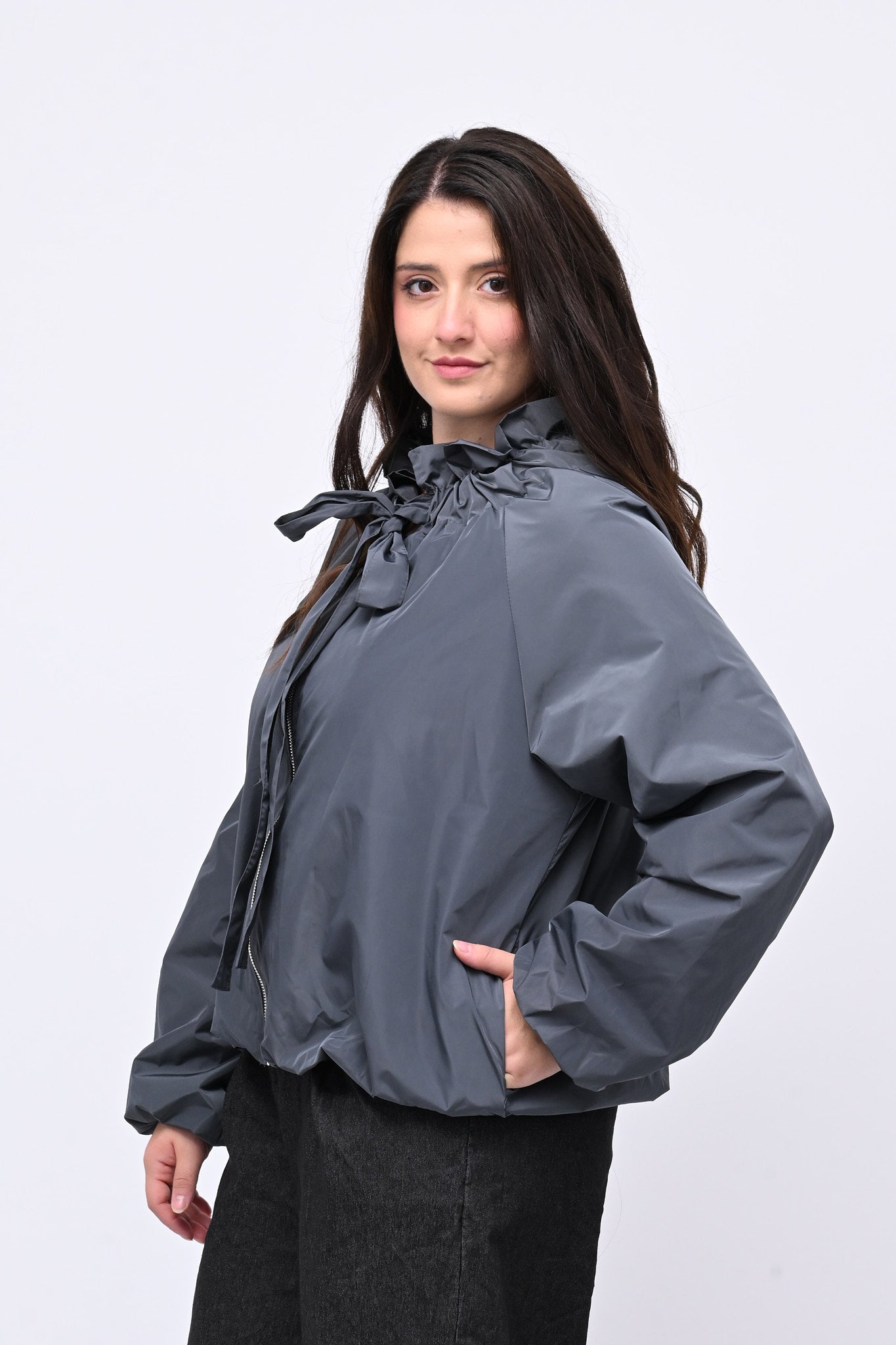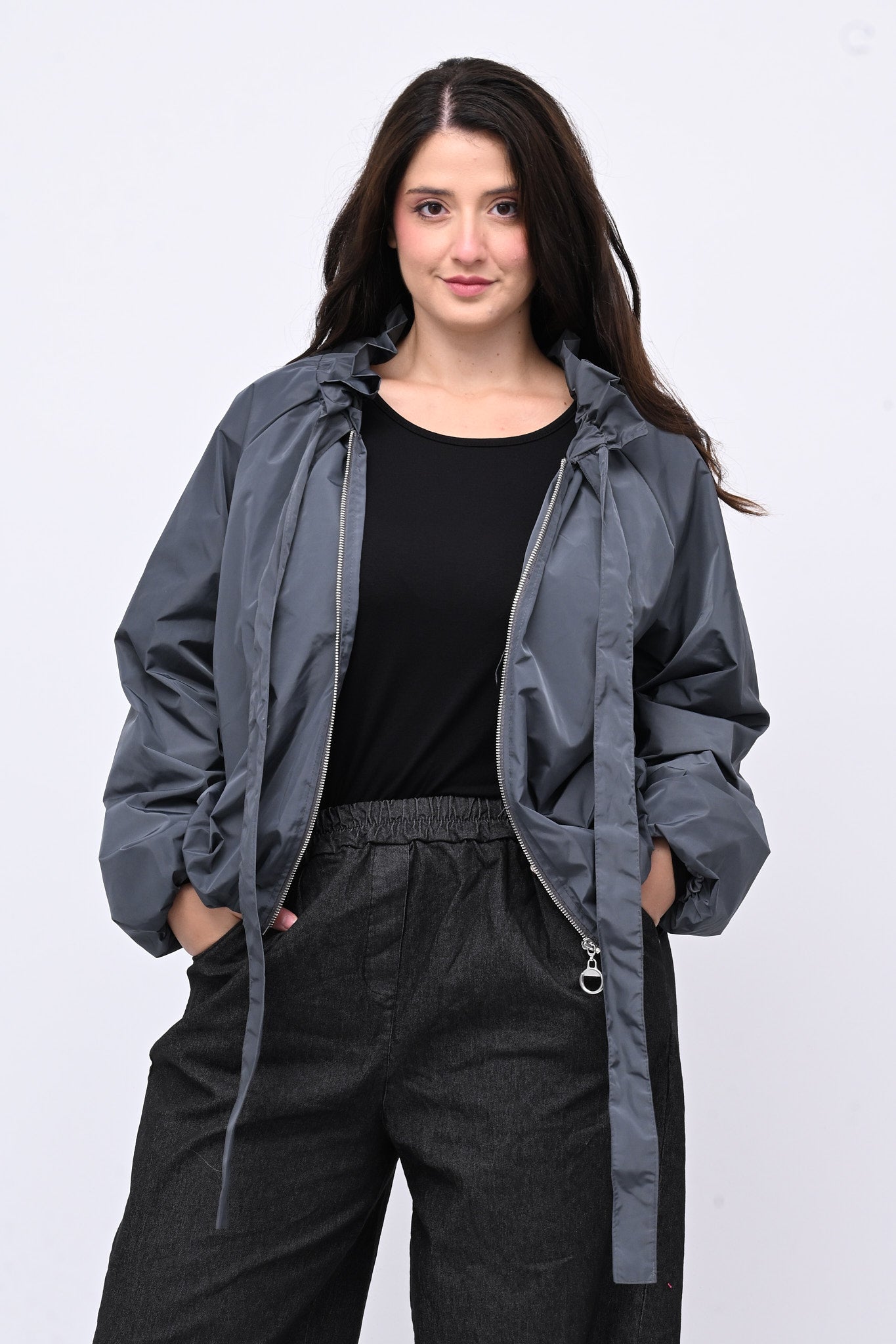 Giacca incerata laccio collo - Grigio piombo