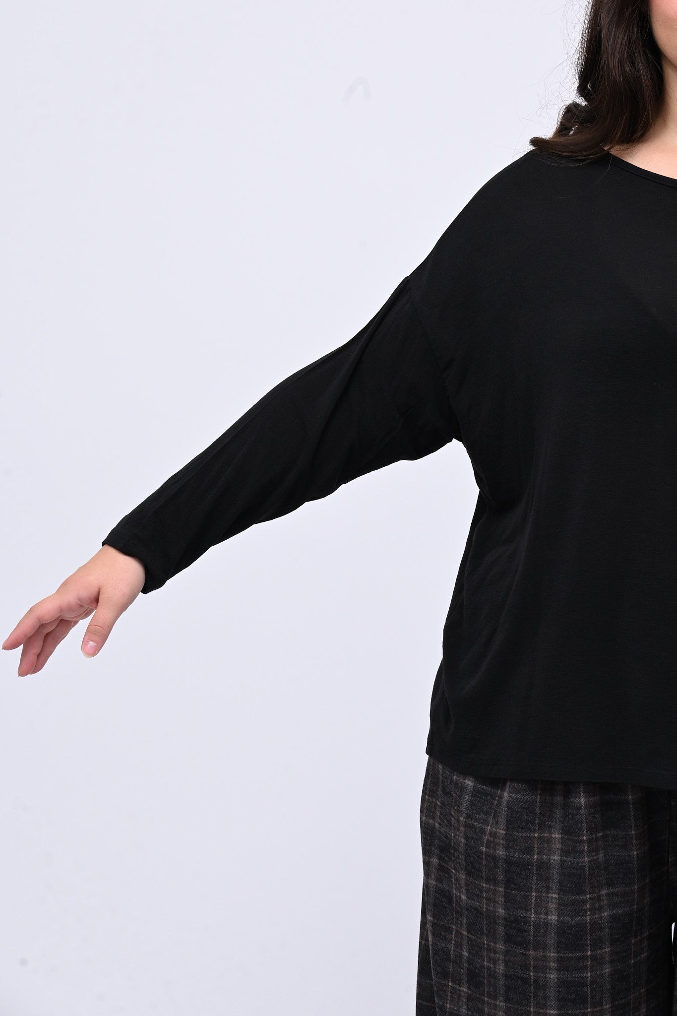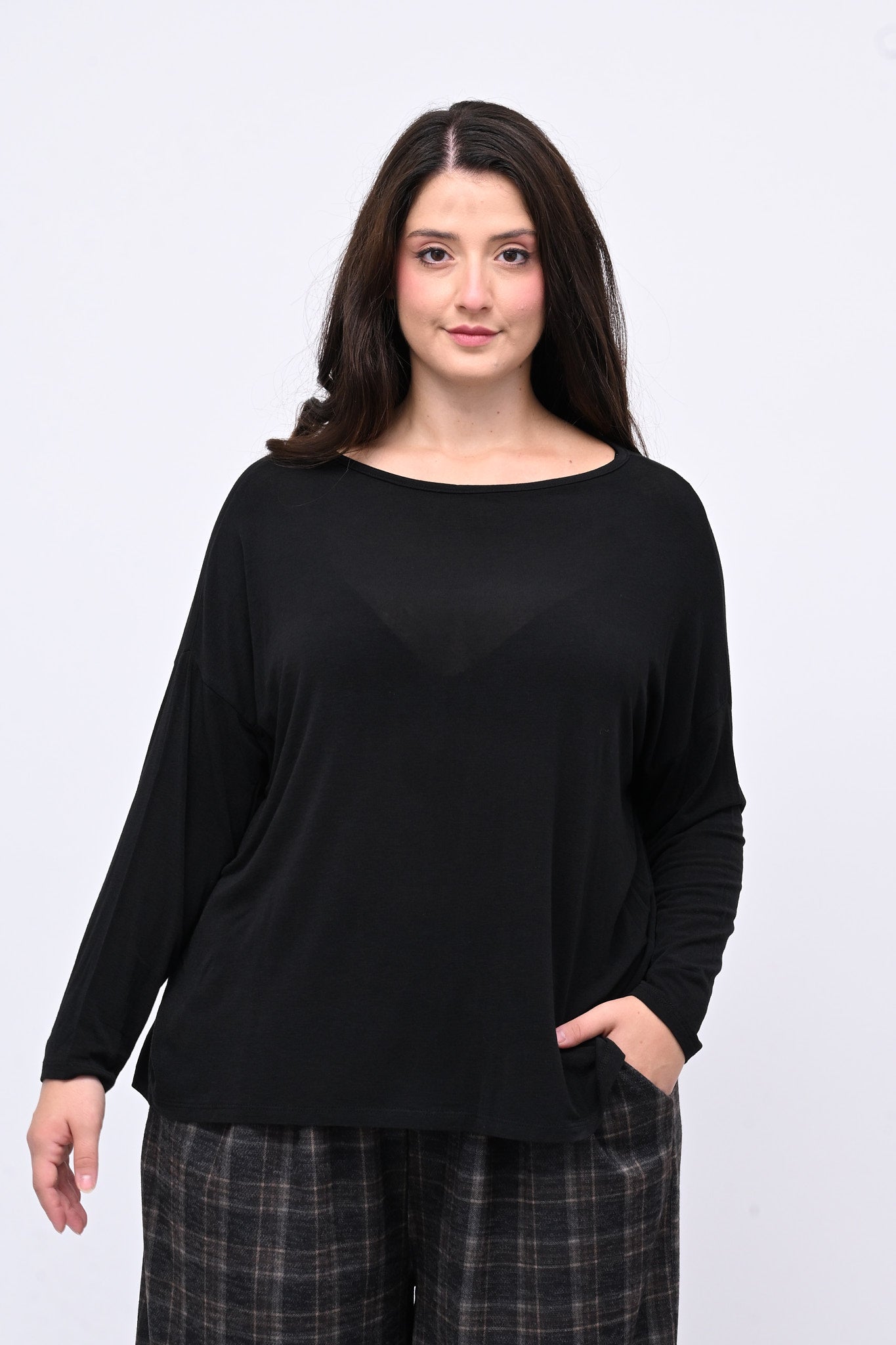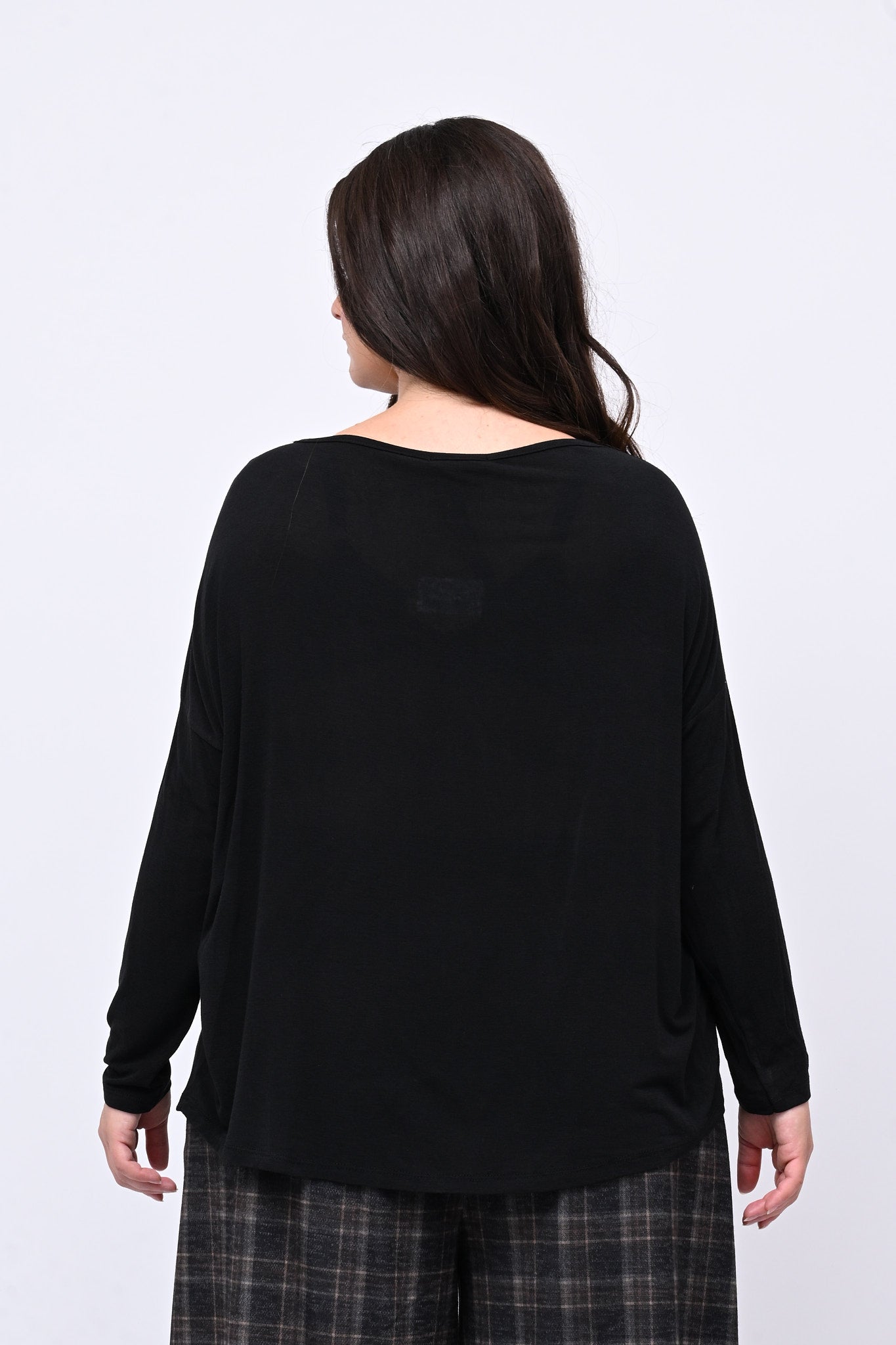 Maglia in misto cachemire,  modello a scatoletta, con scollo a barchetta e maniche lunghe. Il taglio è morbido e le spalle sono scese. Il fondo più lungo sul retro aggiunge un tocco moderno, offrendo comfort e stile. Un must-have pratico e versatile.