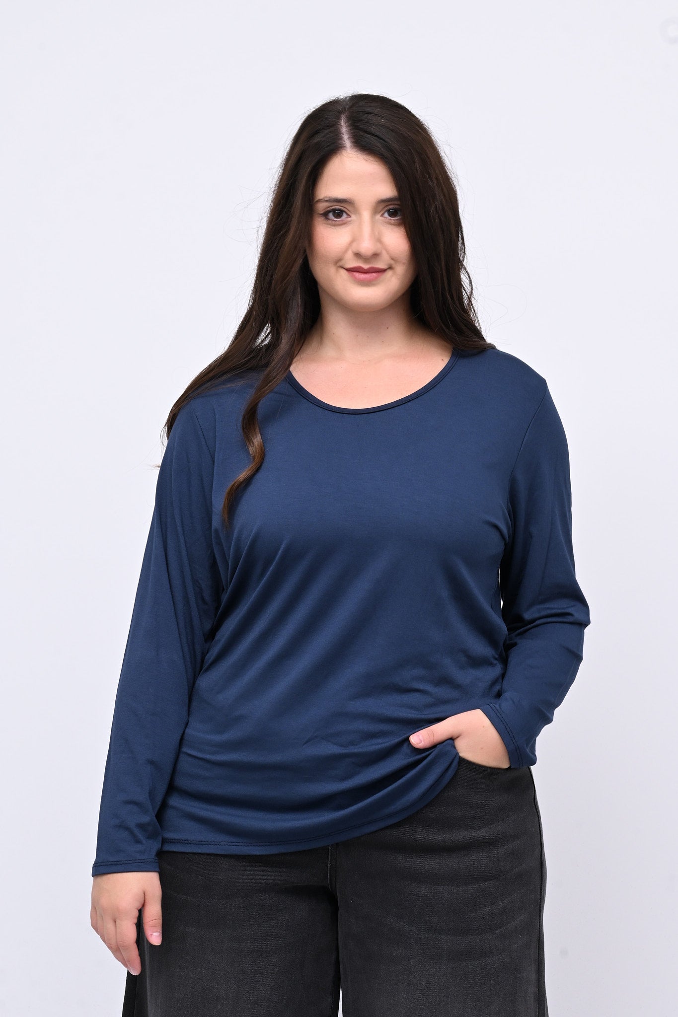 Maglia basica in viscosa elasticizzata, girocollo, manica lunga. Perfetta come capo sottotutto, un vero must have per chi cerca stile, praticità e comfort senza rinunciare a un look versatile.