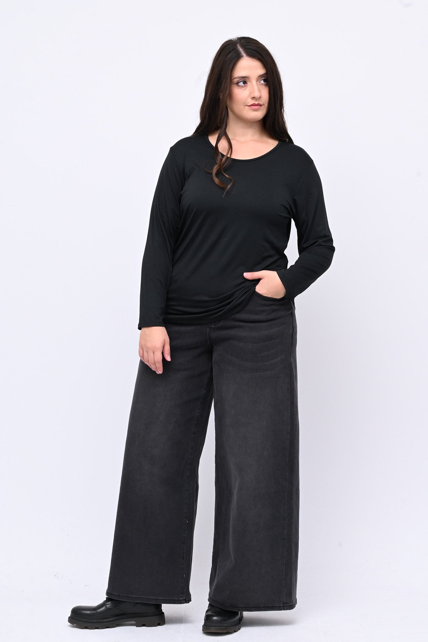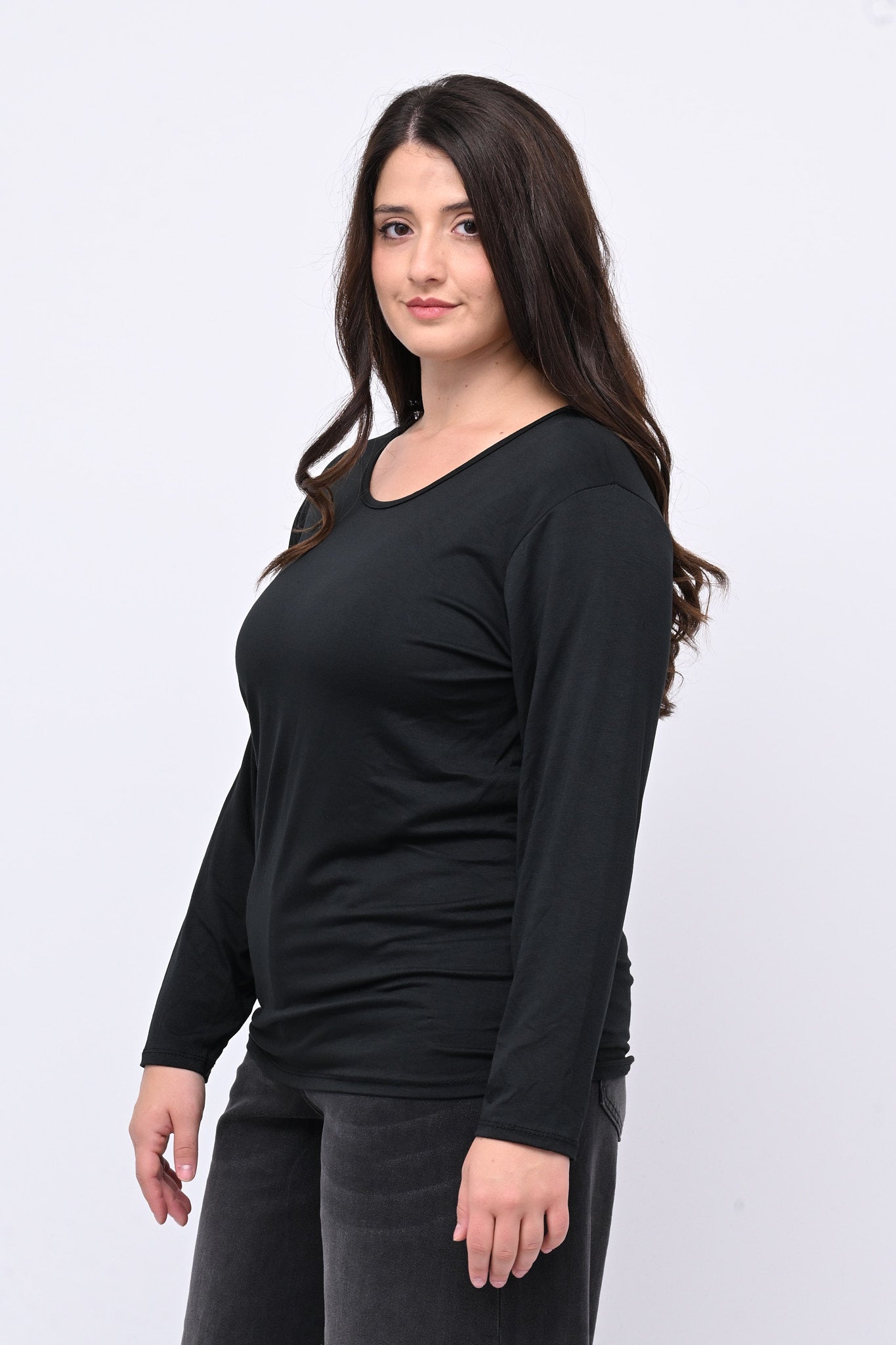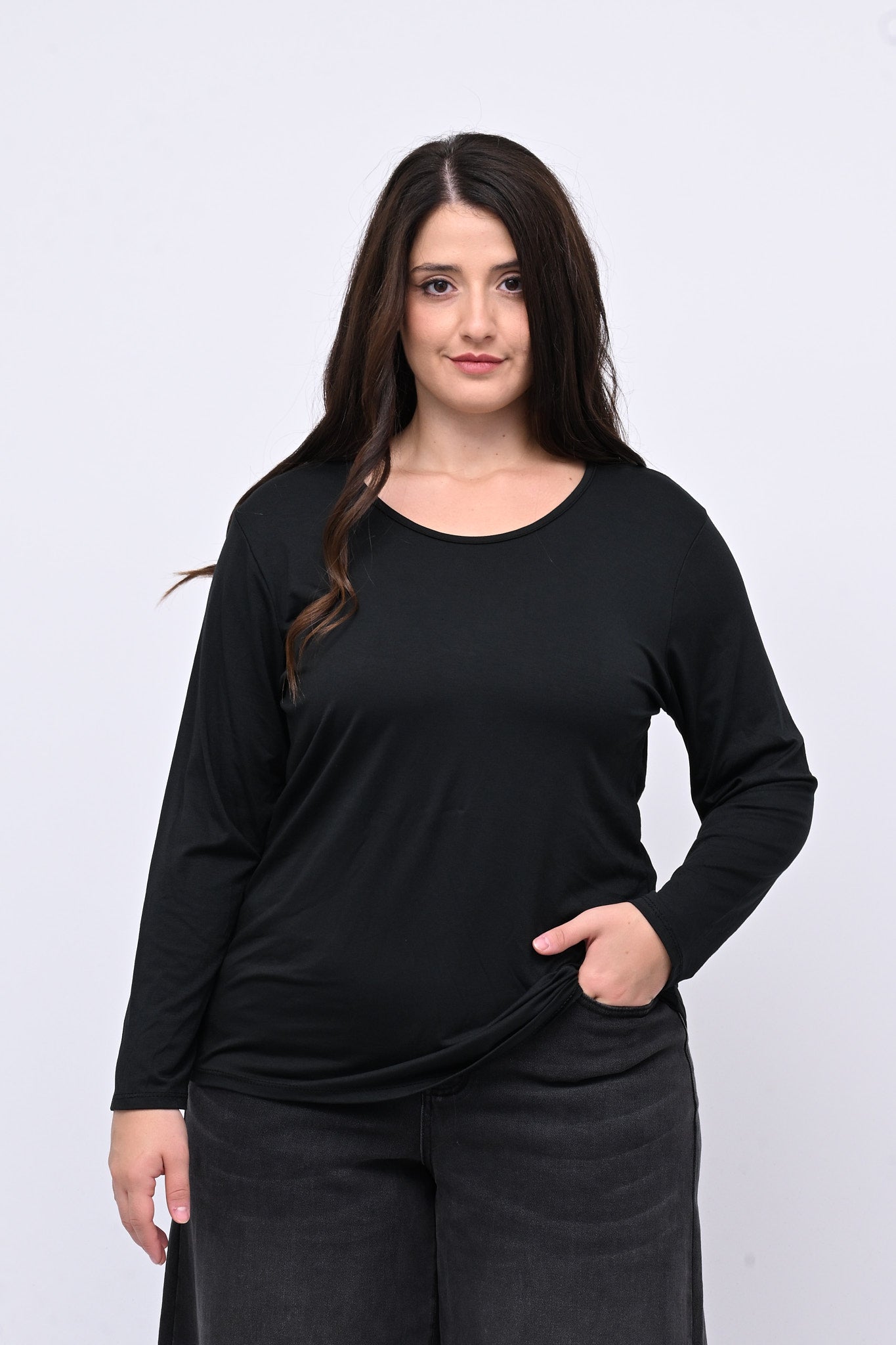 Maglia basica in viscosa elasticizzata, girocollo, manica lunga. Perfetta come capo sottotutto, un vero must have per chi cerca stile, praticità e comfort senza rinunciare a un look versatile.