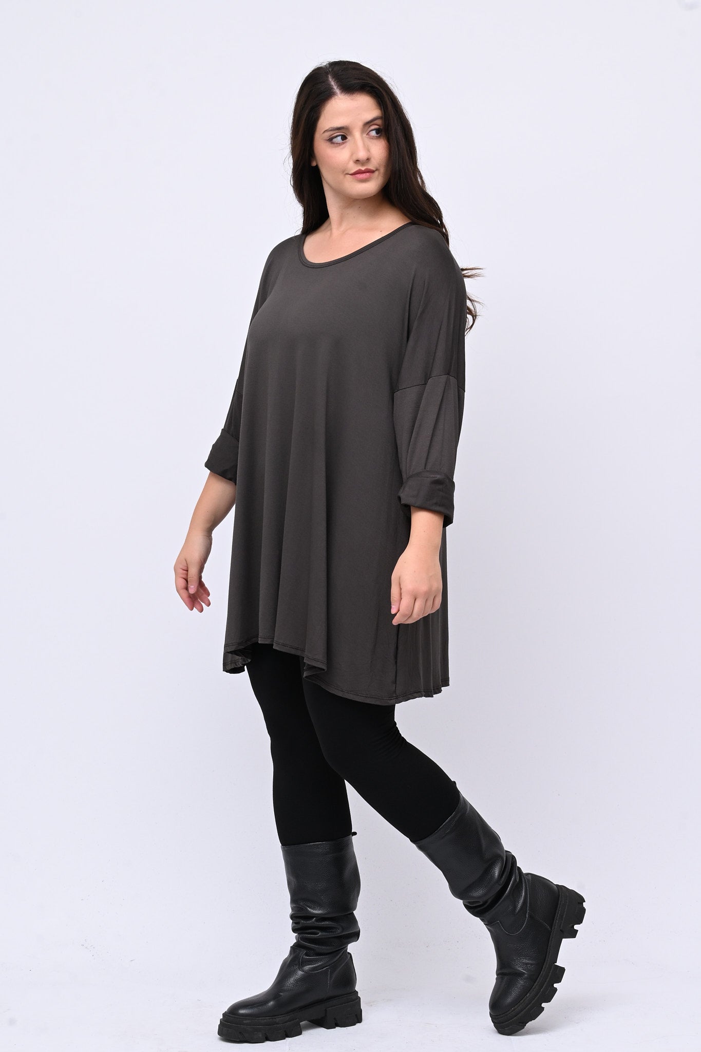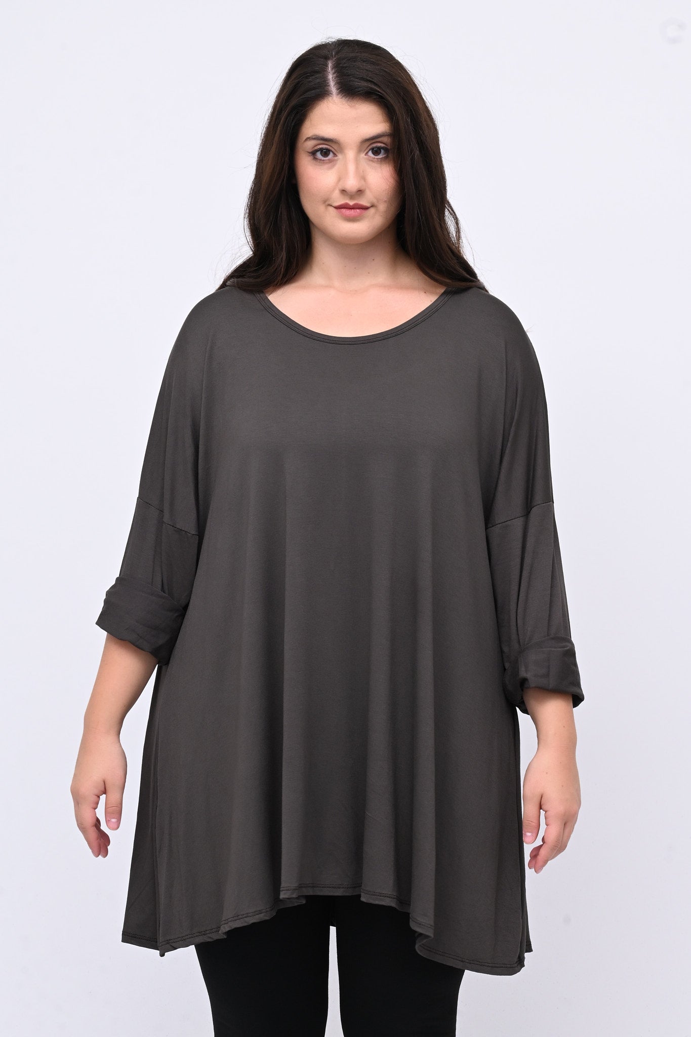 Maglia basica in maglina di viscosa elasticizzata, girocollo, manica lunga con spalla scesa. La vestibilità è rilassata e offre comfort e versatilità: un must-have per ogni guardaroba. Perfetta per un look casual ma curato, abbina morbidezza e praticità in un unico capo.