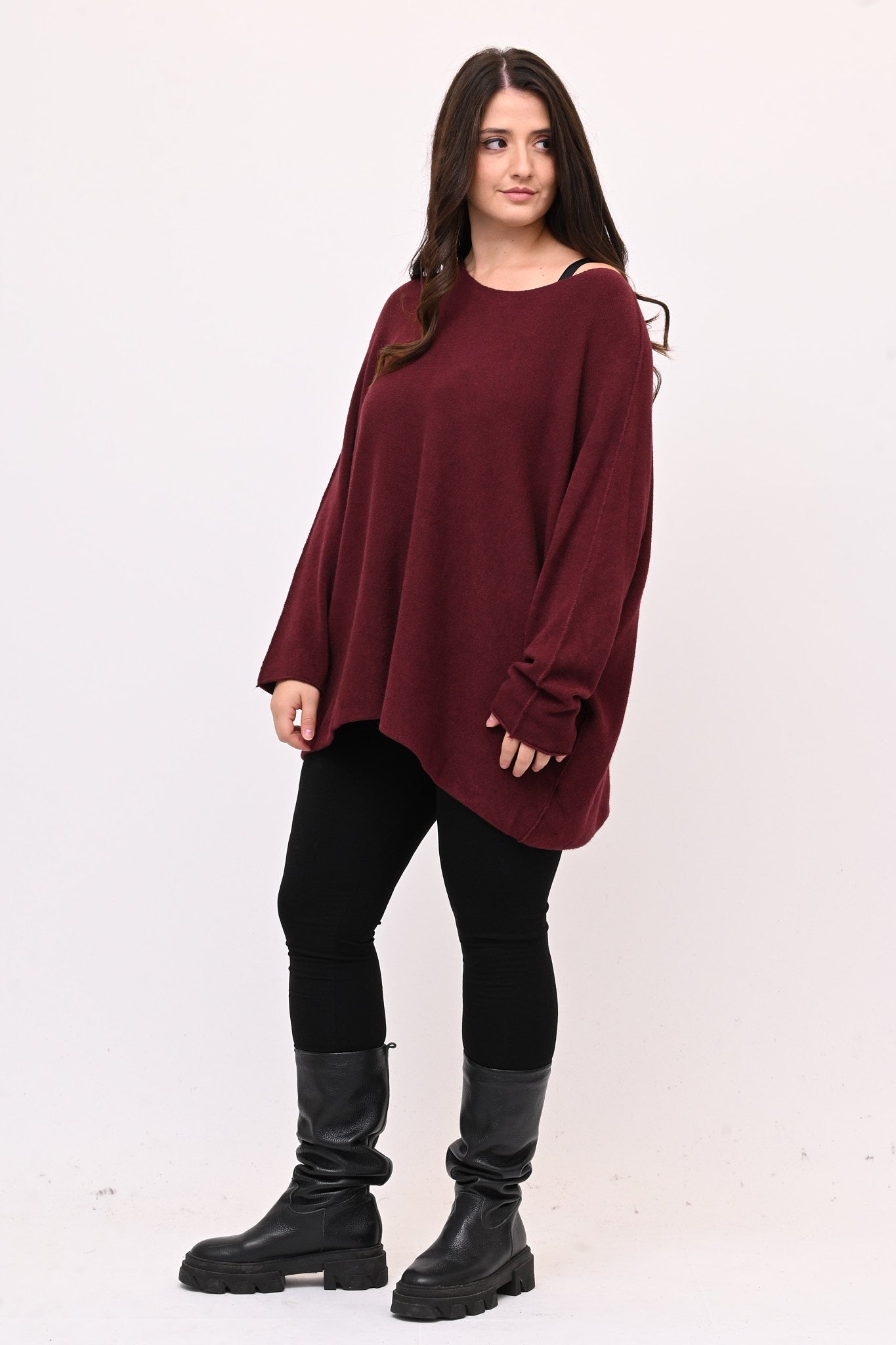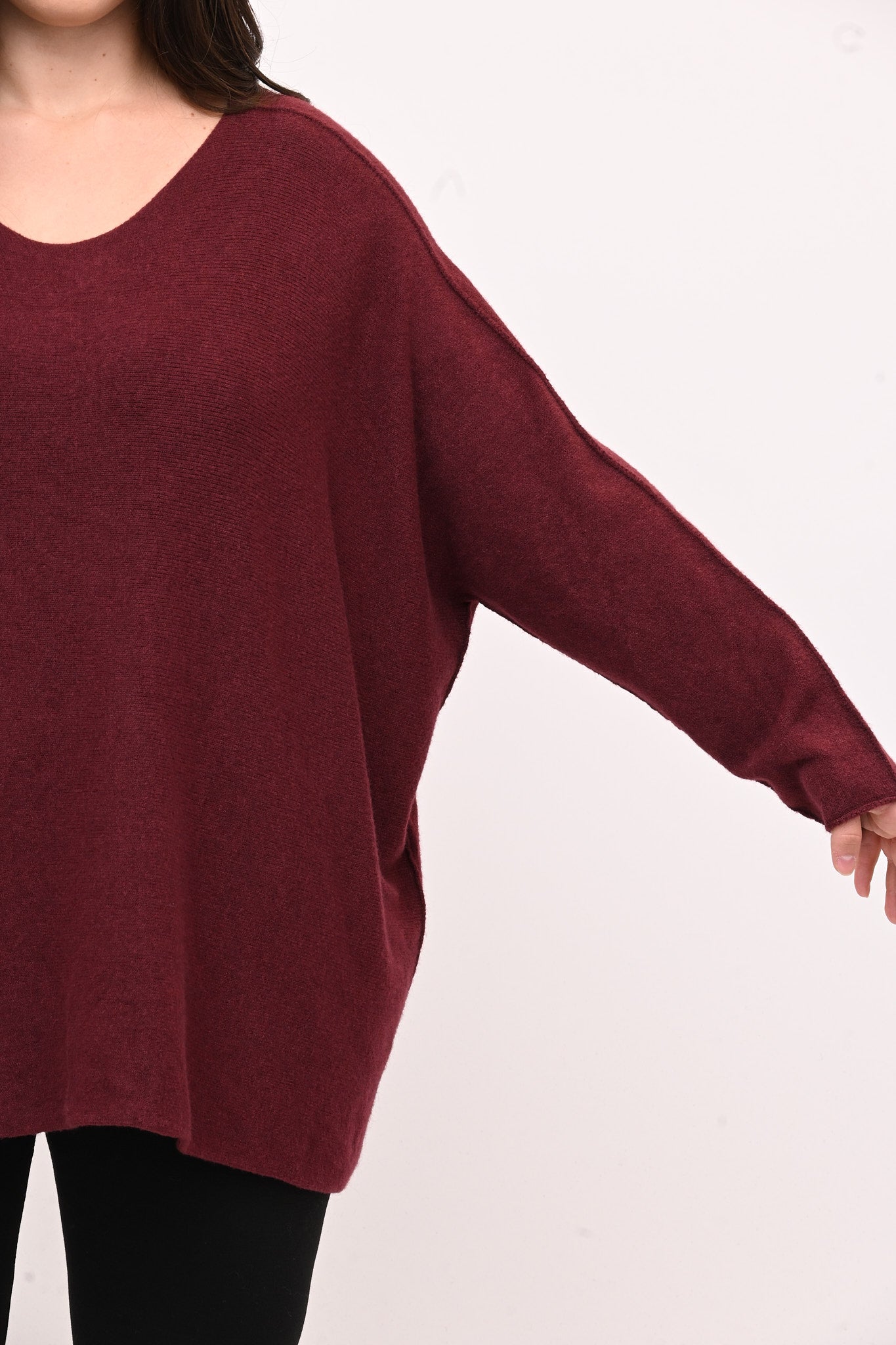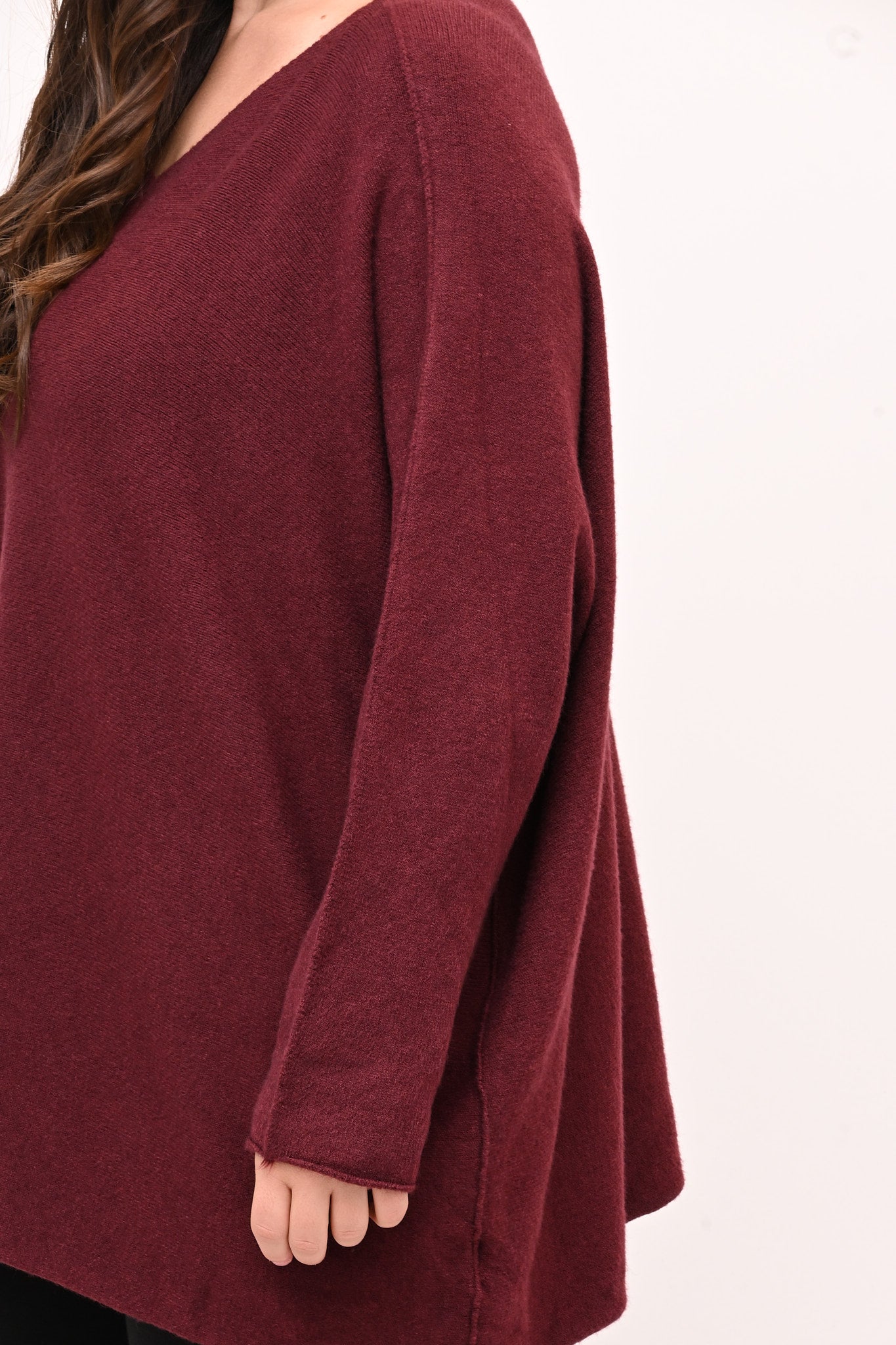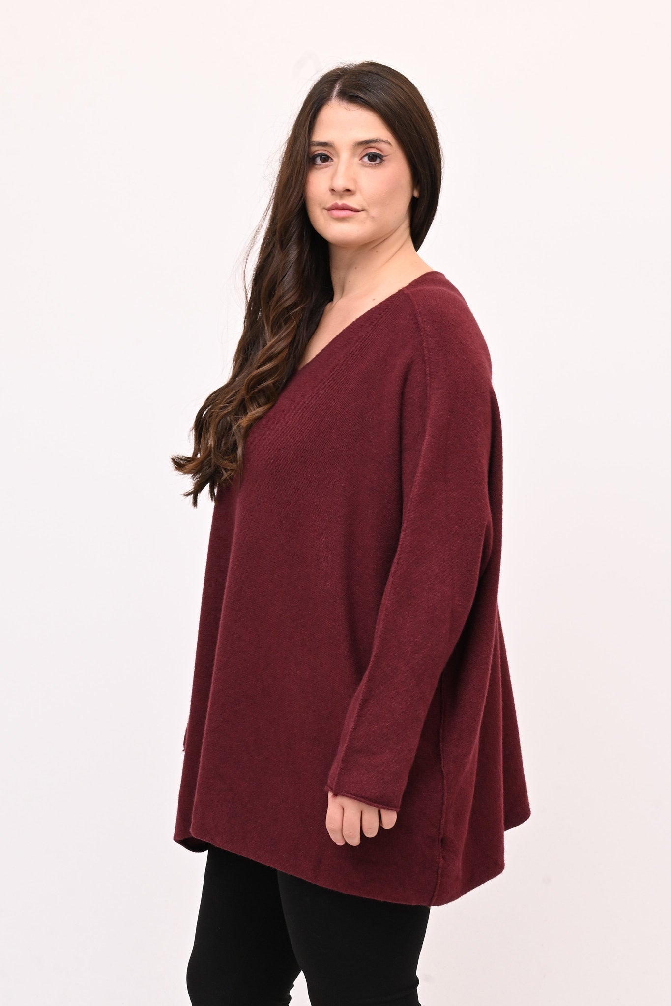 Pull in calda viscosa, modello a scatoletta, scollo a V. La vestibilità rilassata garantisce libertà di movimento. Perfetto per chi cerca un capo versatile e confortevole, ideale da abbinare a look casual e sofisticati.
