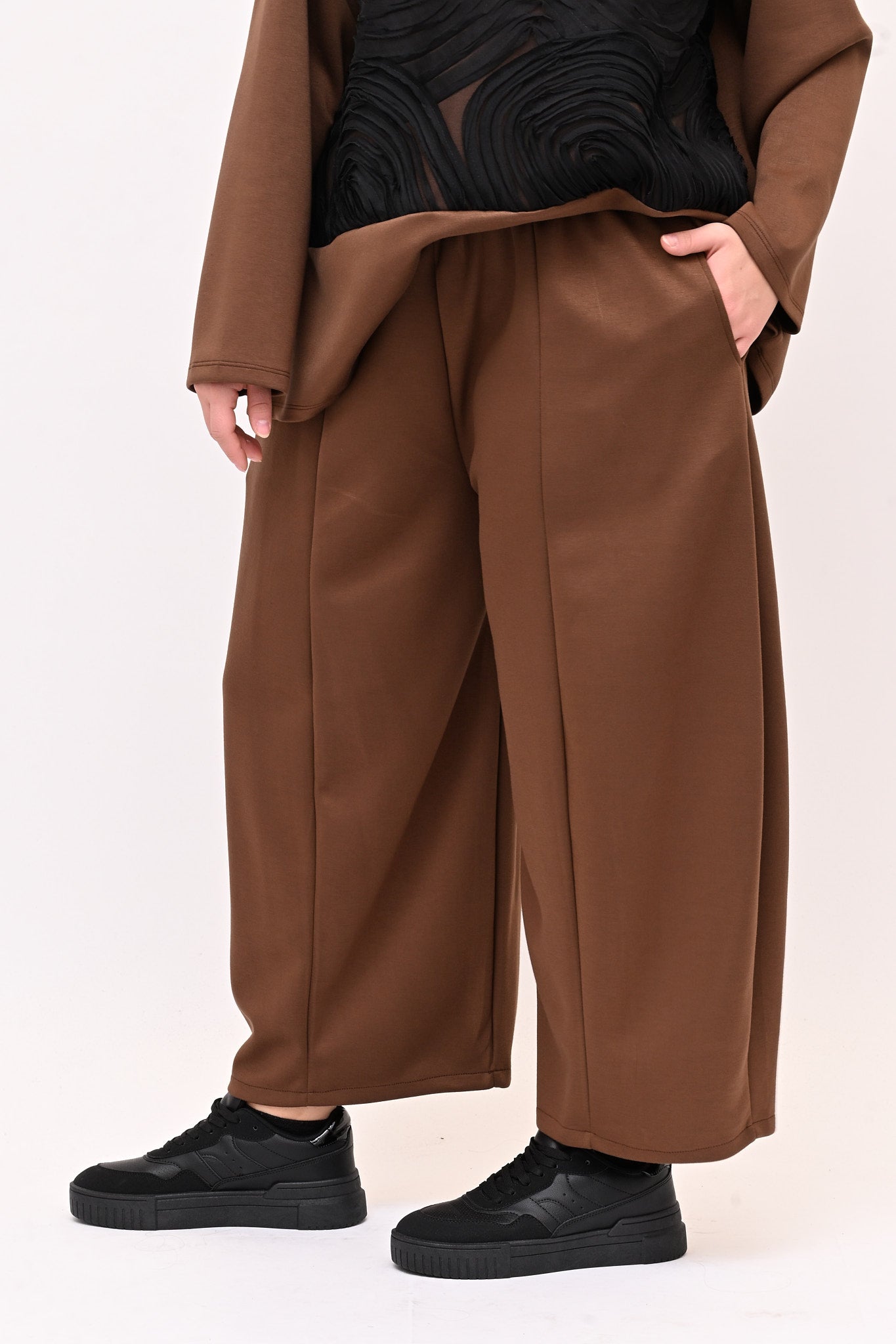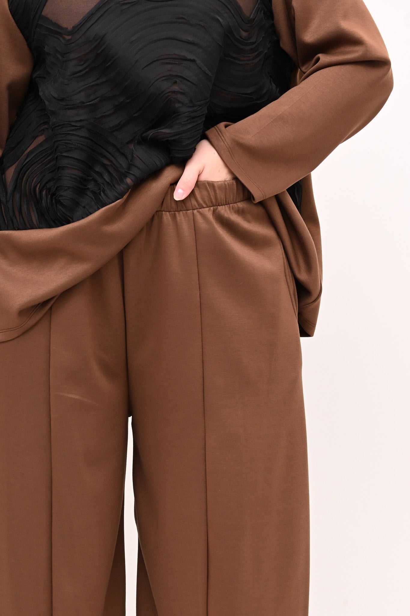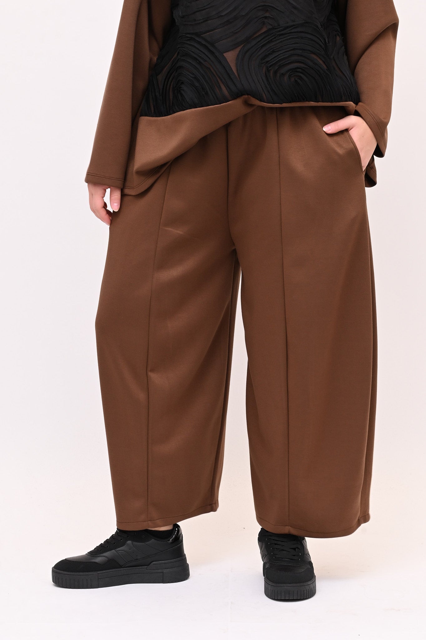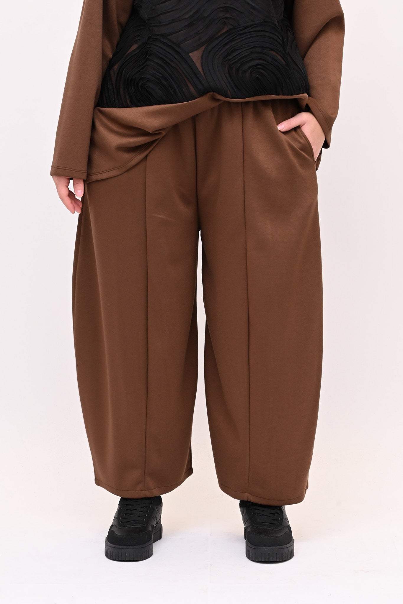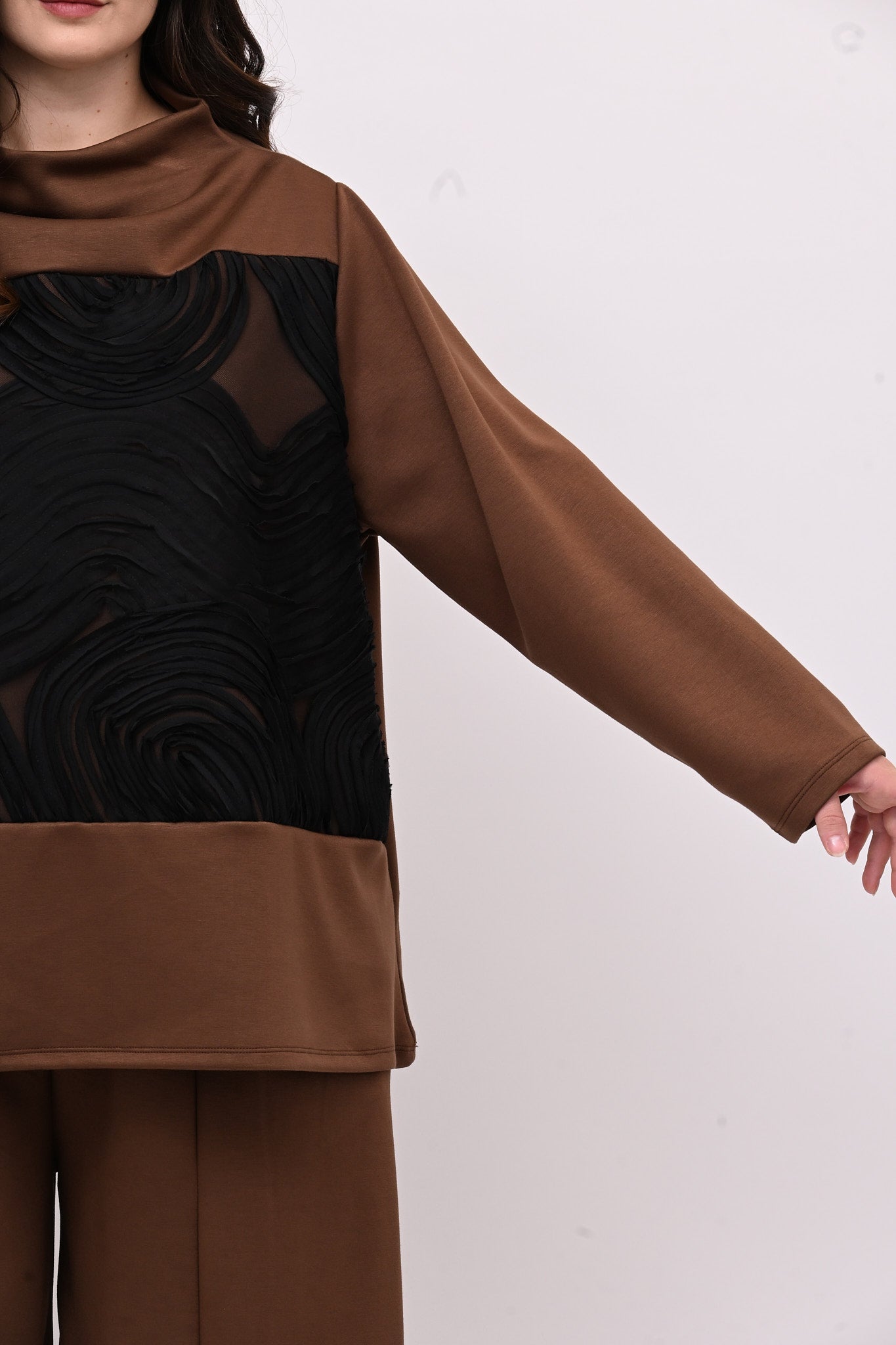 Completo in neoprene composto da: felpa con collo a vulcano, vestibilità ad A e pantalone modello carota con elastico in vita e tasche laterali. Il ricamo in taftà e tulle sul davanti dona un raffinato tocco sporty chic al coordinato, rendendolo ideale per chi cerca un outfit elegante ma pratico.