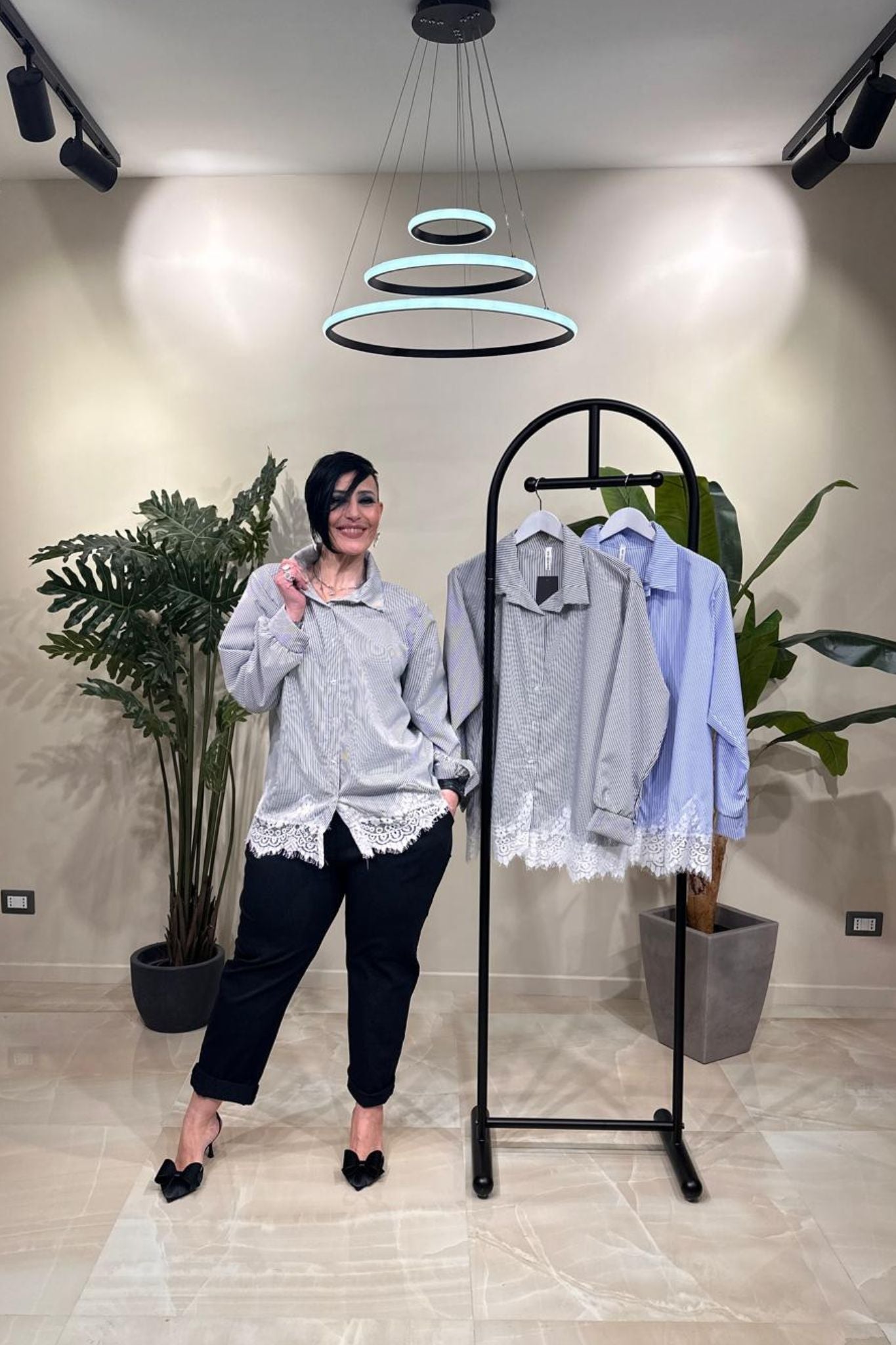 Camicia riga pizzo - Blu