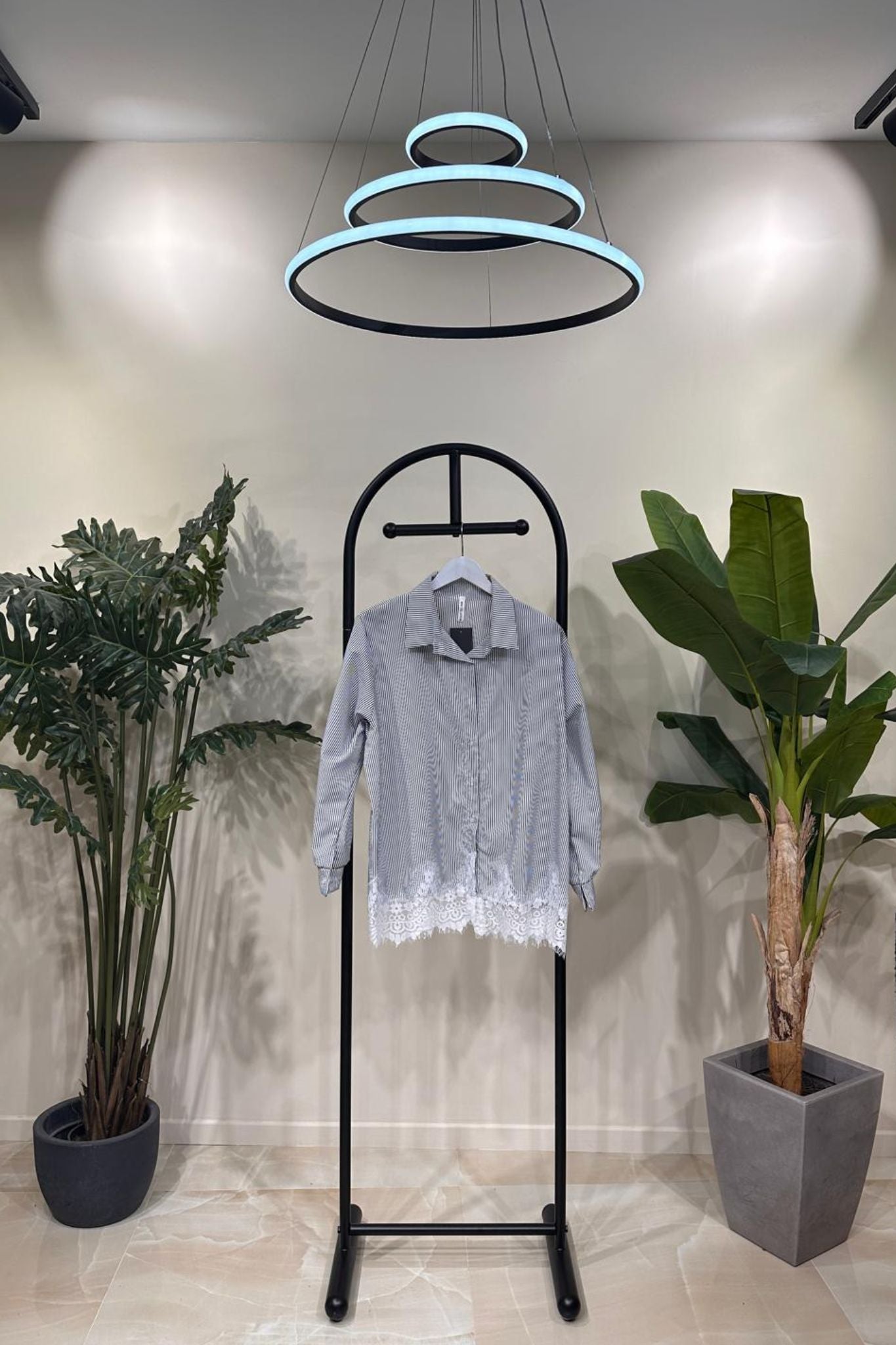Camicia riga pizzo - Nero