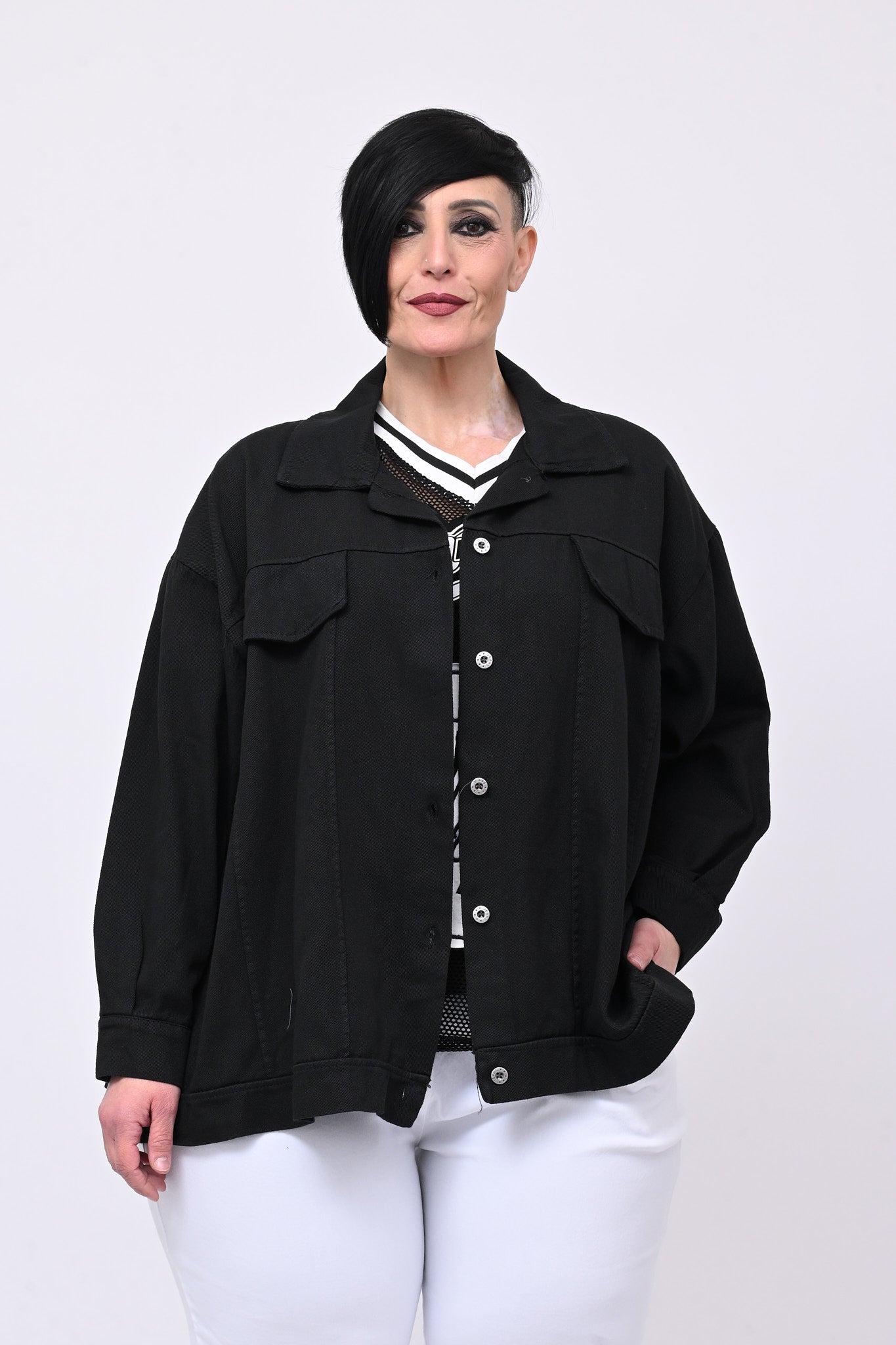 Giacca in denim dal taglio over, con tasche finte e bottoni in metallo. Un capo essenziale per chi ricerca comfort e tendenza, stile contemporaneo e libertà di movimento. Perfetta per un look casual, è un must-have versatile e di carattere.