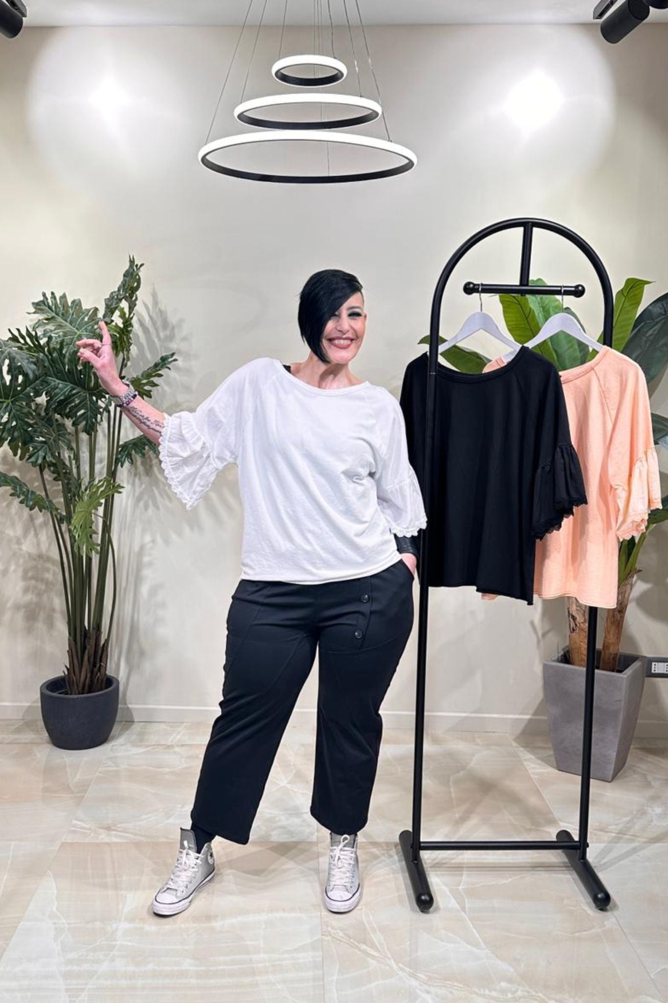 Felpa manica pizzo - Bianco