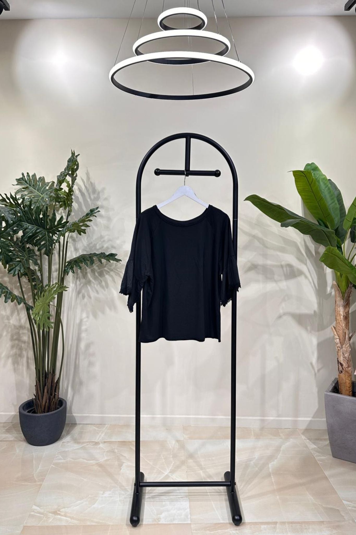Felpa manica pizzo - Nero
