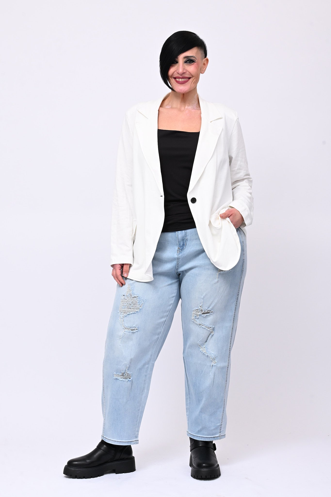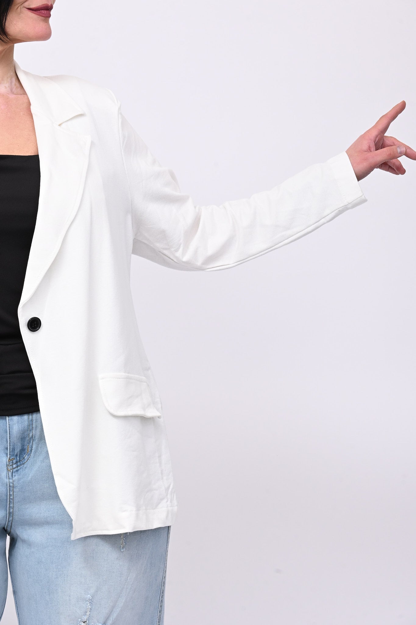 Giacca in felpa garzata di cotone, rever a lancia, tasche finte e spalline. Il tessuto elasticizzato garantisce libertà di movimento e comfort. Un capo versatile, dallo stile moderno, indispensabile per creare look in ogni occasione.