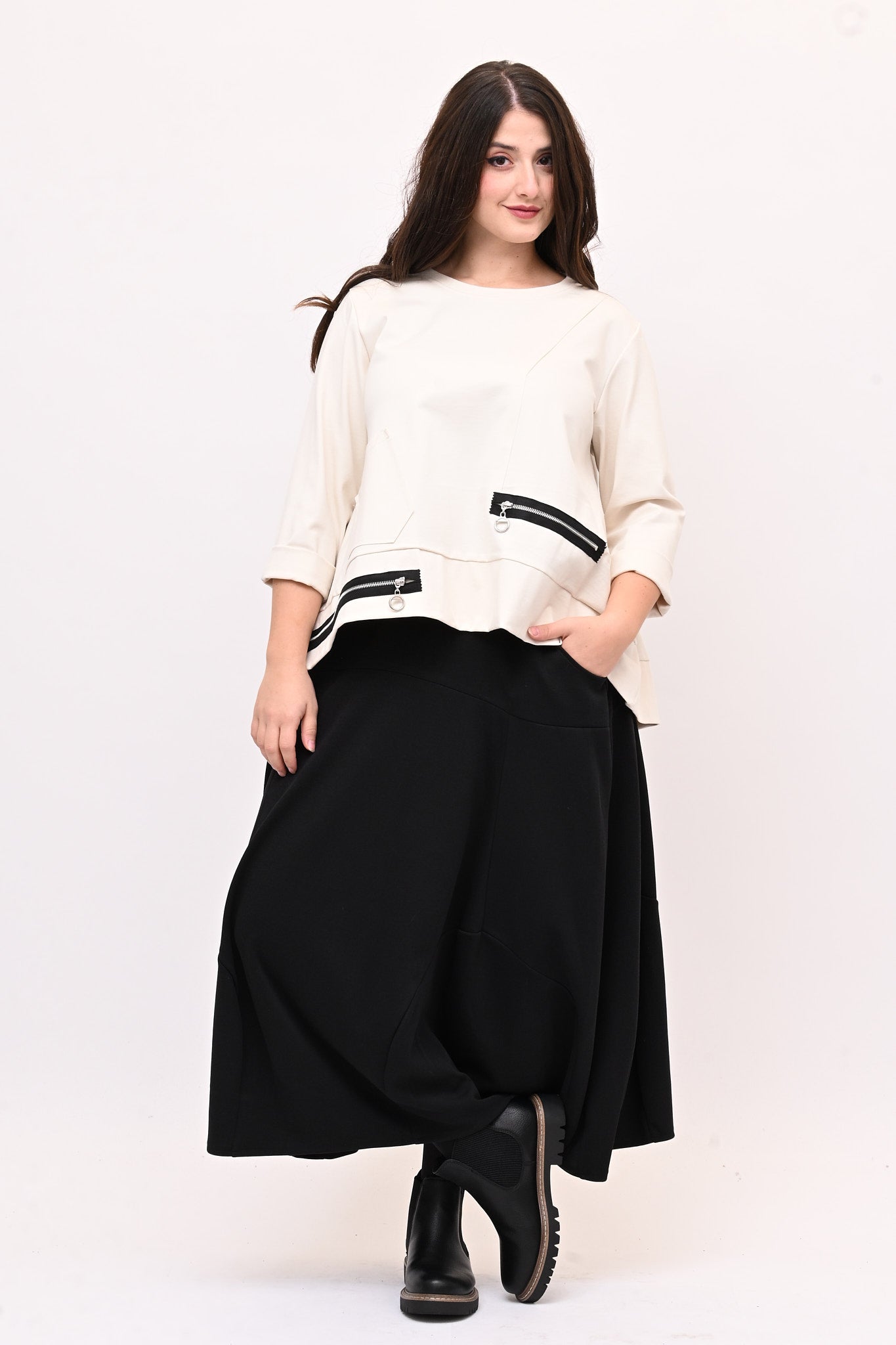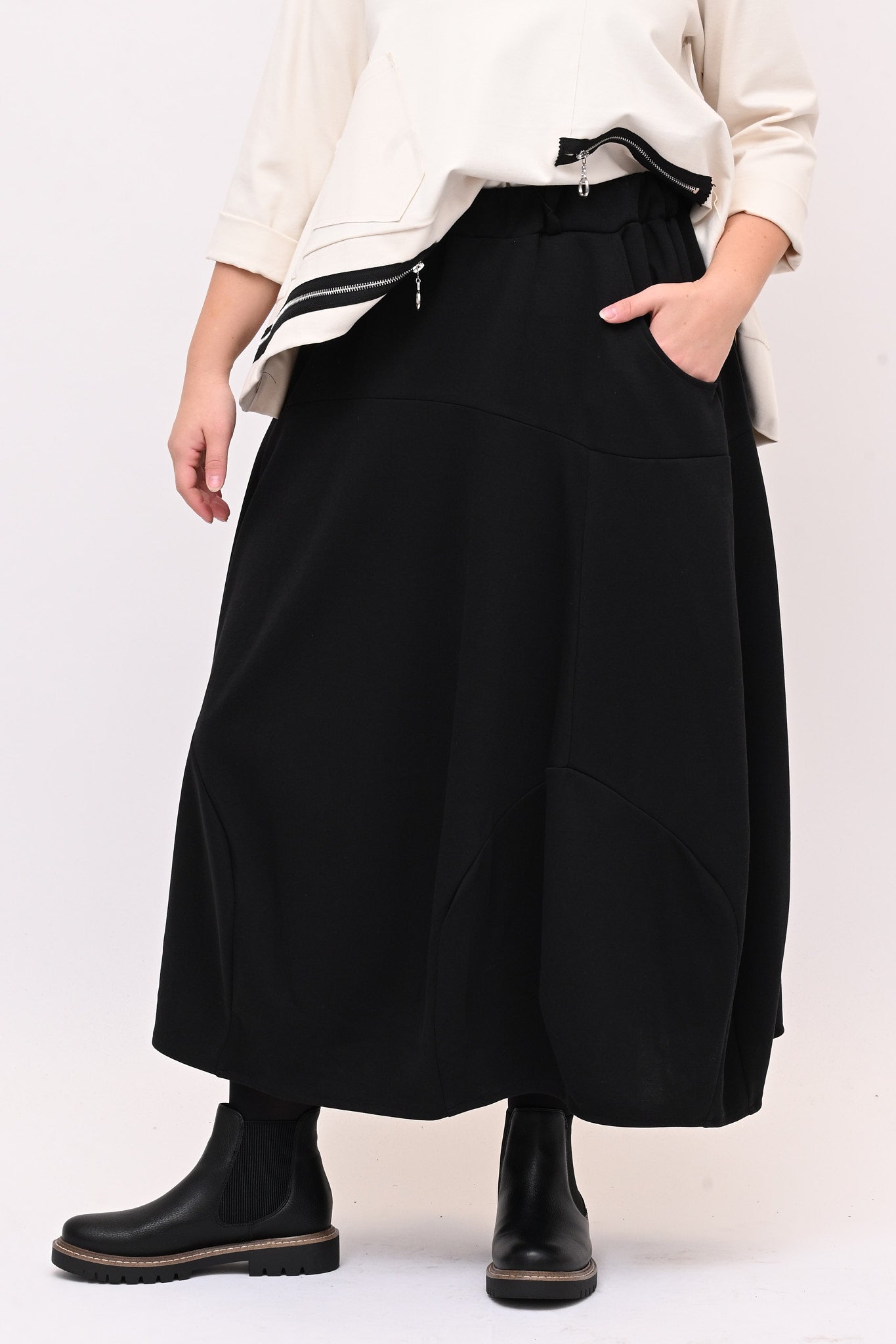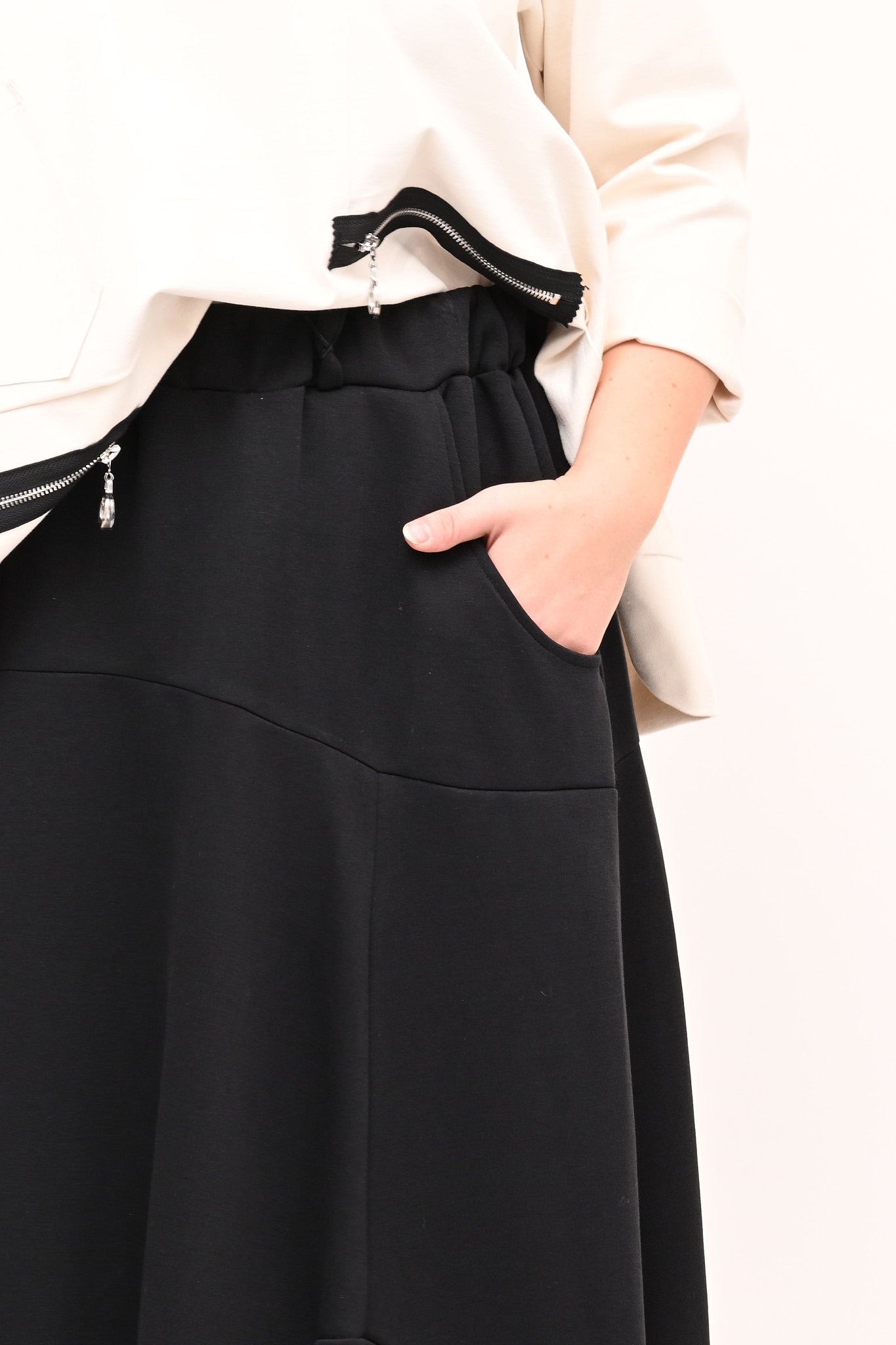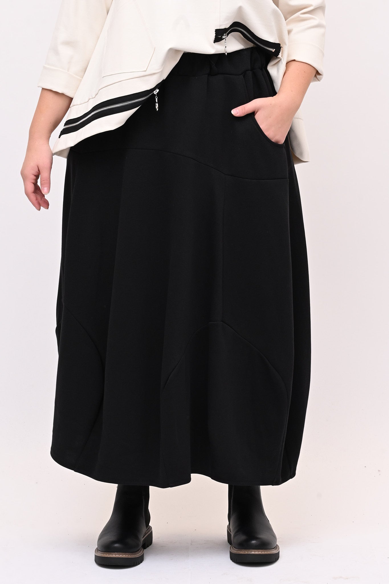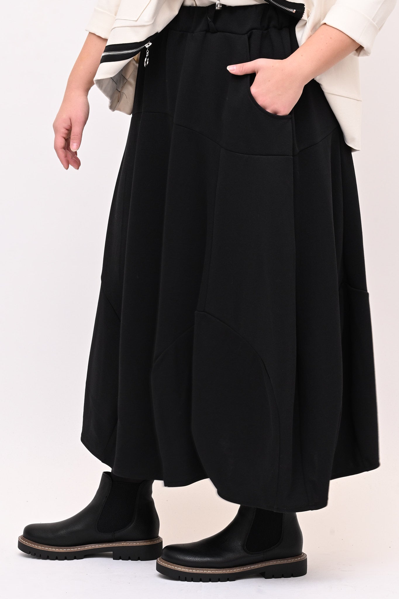 Gonna in felpa, lunghezza alla caviglia, modello a ovetto, elastico in vita e tasche laterali. Comoda, pratica e versatile, è ideale per uno stile casual quotidiano e raffinato.