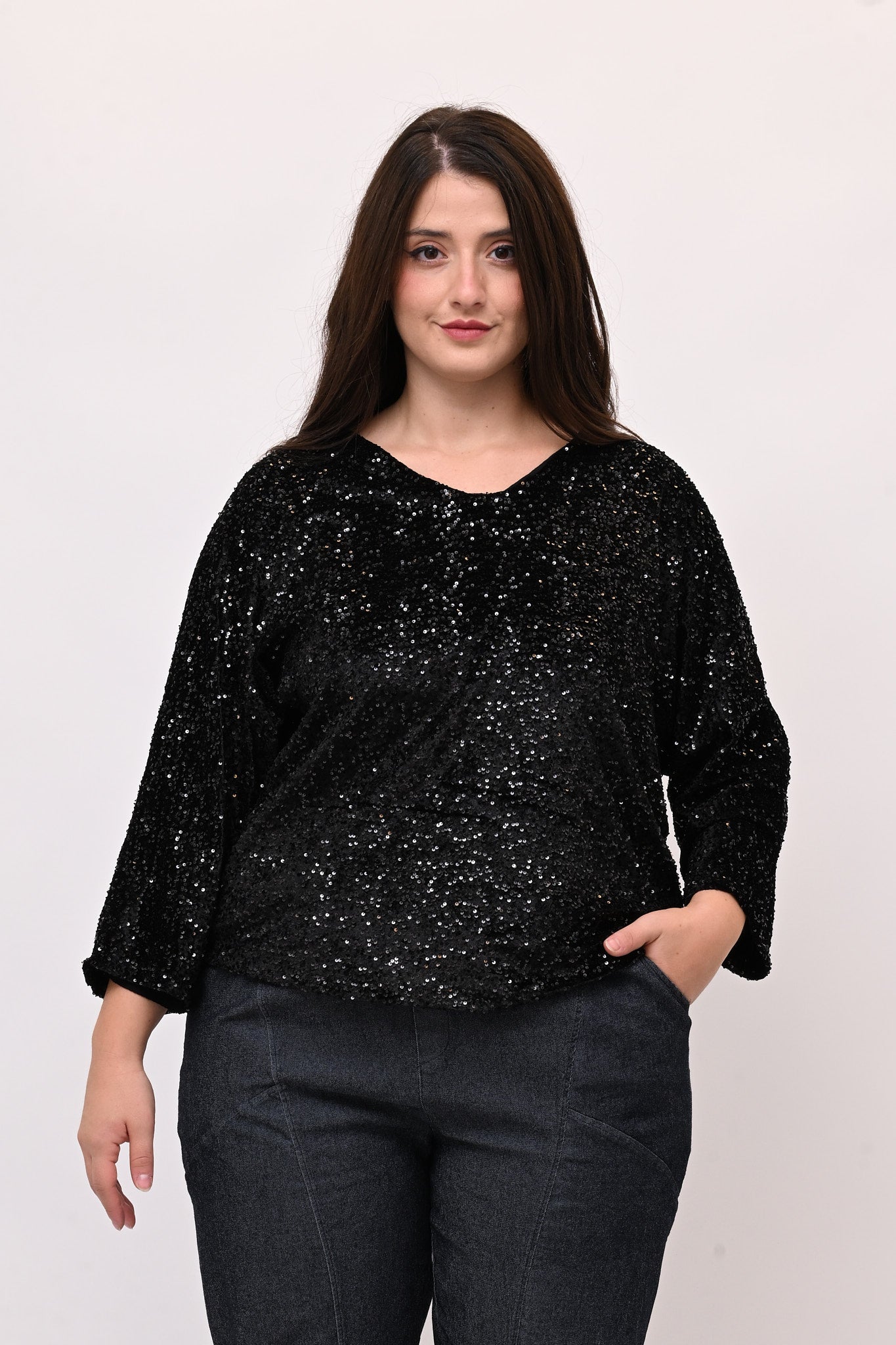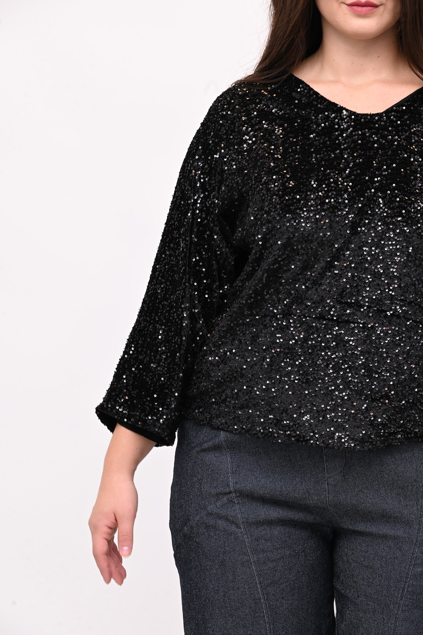 Maglia paillettes fiocco - Nero