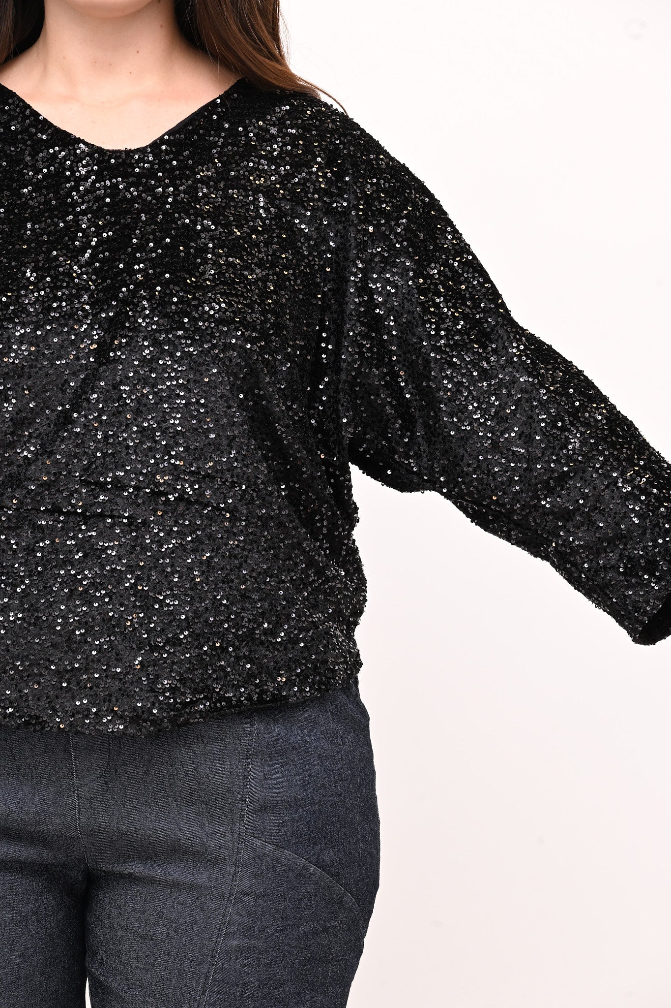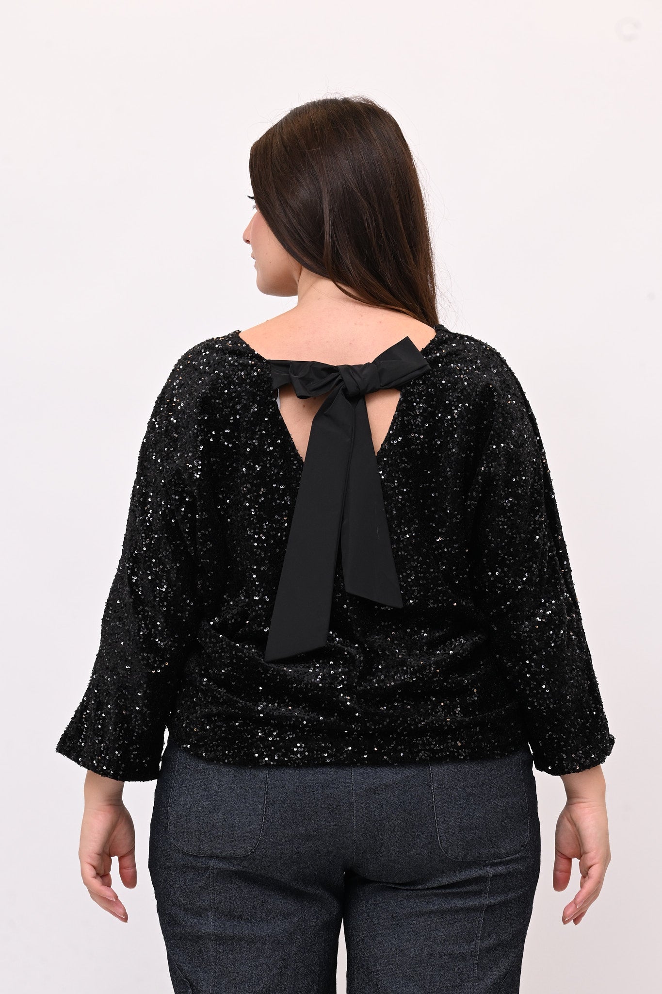 • Maglia paillettes fiocco - Nero