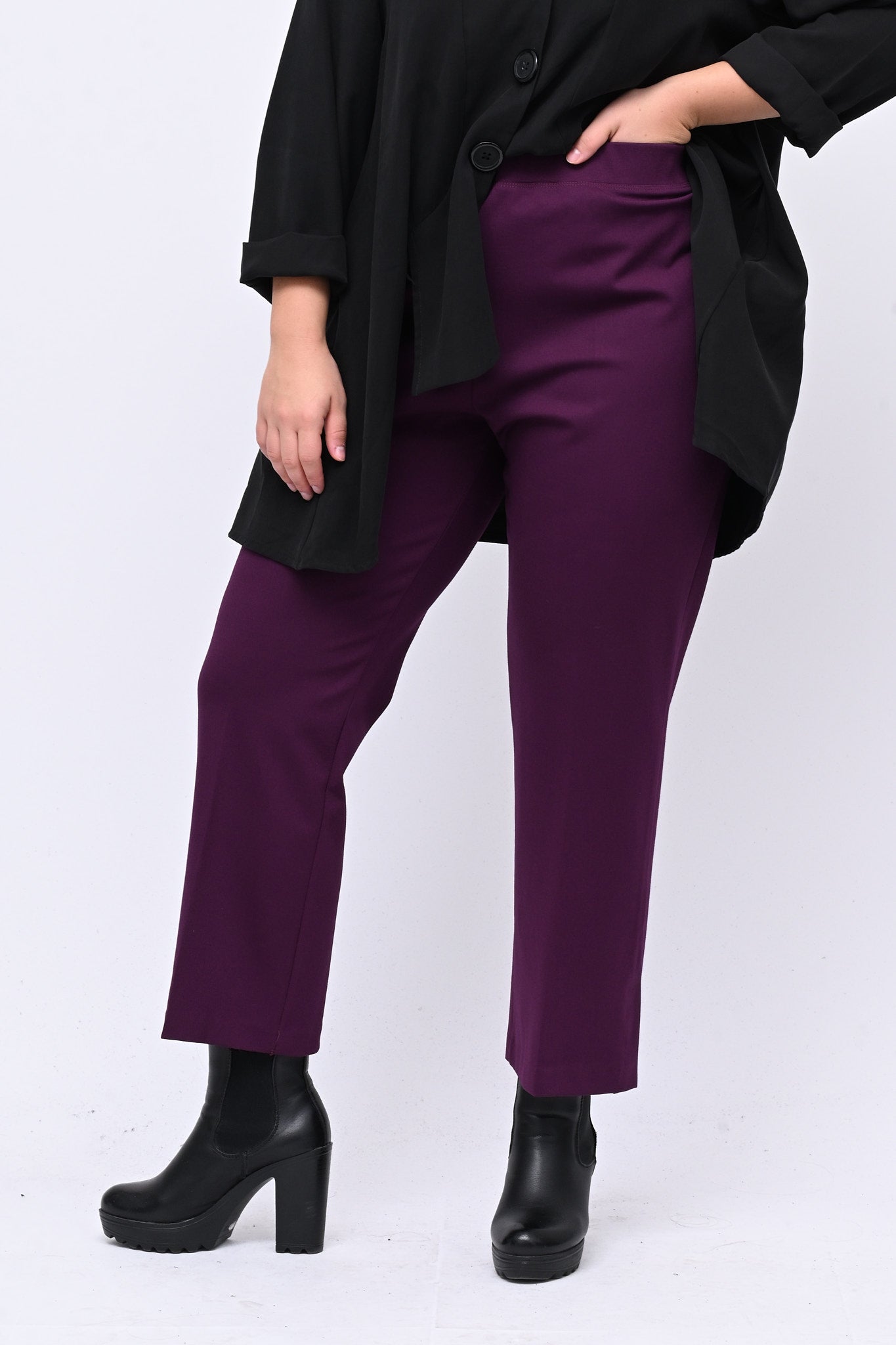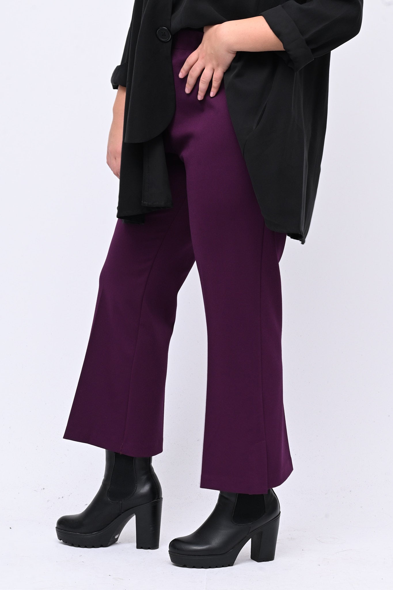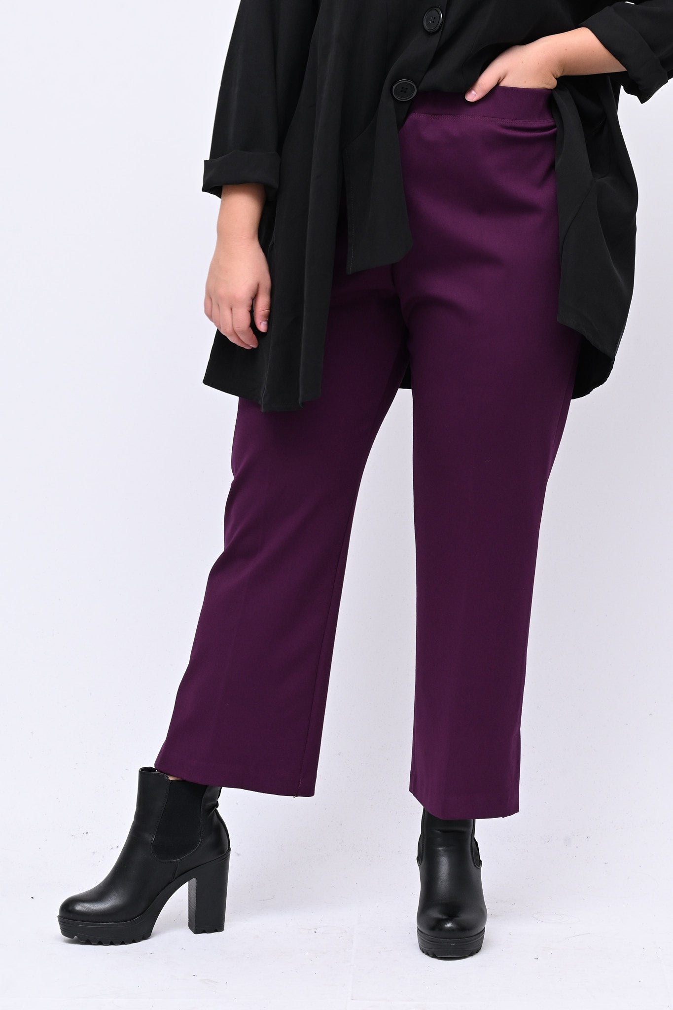 Pantaloni a trombetta, corti a caviglia, spacchetto sul fondo, in punto Milano elasticizzato. Con l’elastico in vita e senza tasche, garantiscono comfort e stile per una calzata perfetta e un look minimalista.