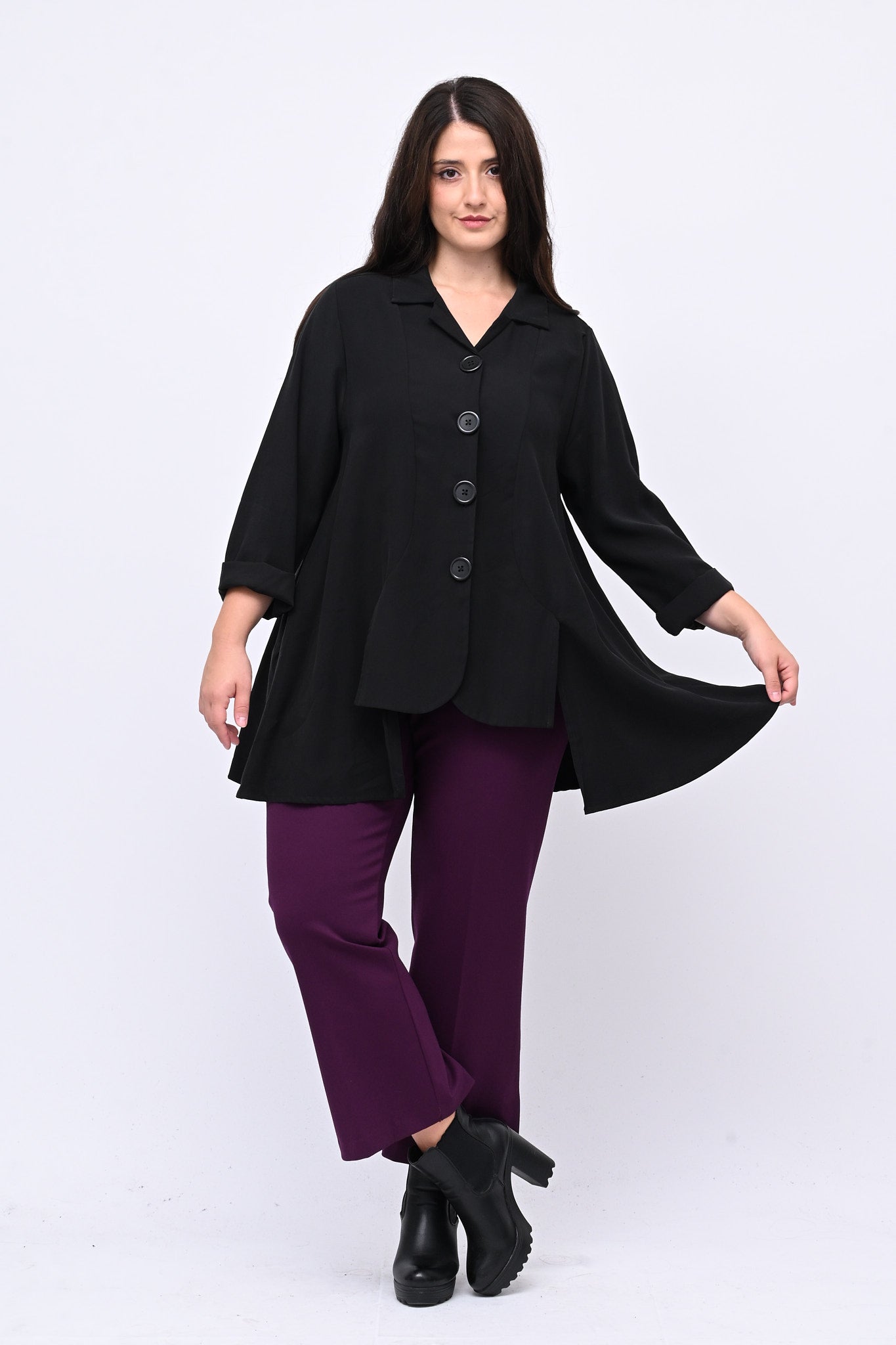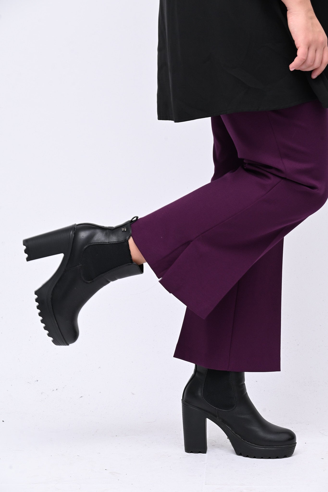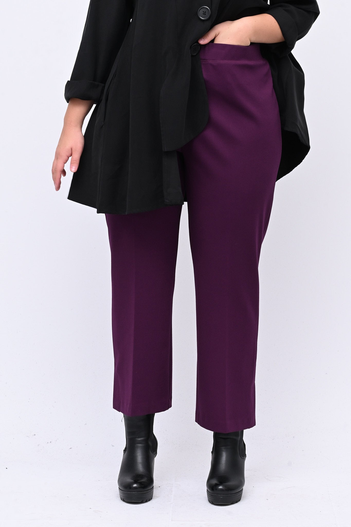 Pantaloni a trombetta, corti a caviglia, spacchetto sul fondo, in punto Milano elasticizzato. Con l’elastico in vita e senza tasche, garantiscono comfort e stile per una calzata perfetta e un look minimalista.