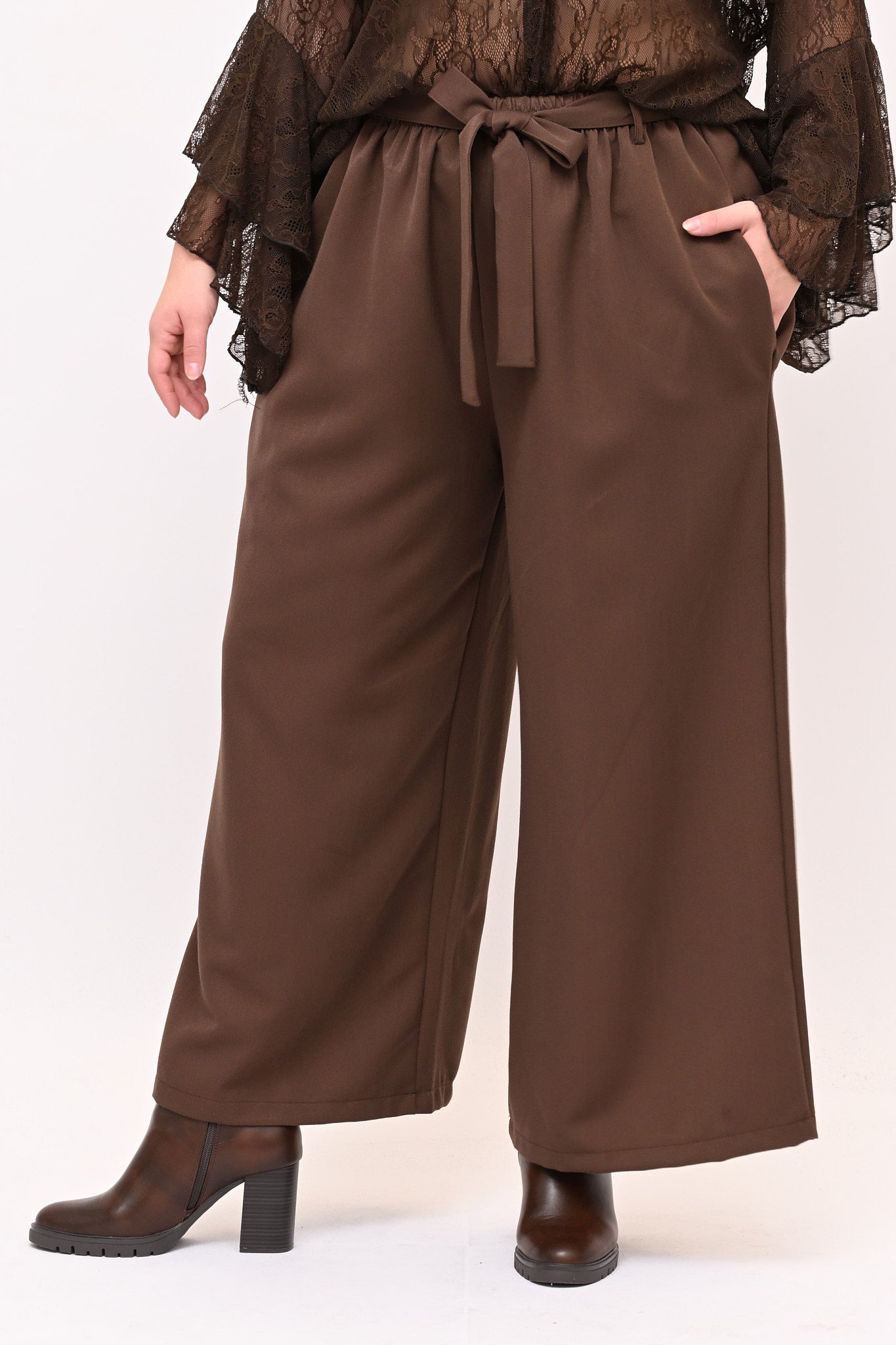 Pantalone a palazzo, con elastico in vita, laccio integrato, piccole pinces e tasche laterali. Un modello dalla linea classica, che unisce femminilità e comfort. Perfetto per chi ricerca un capo versatile da indossare in molteplici occasioni.