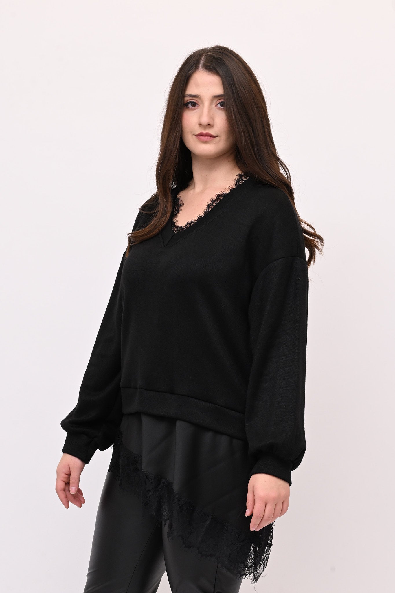 Pull raso pizzo - Nero