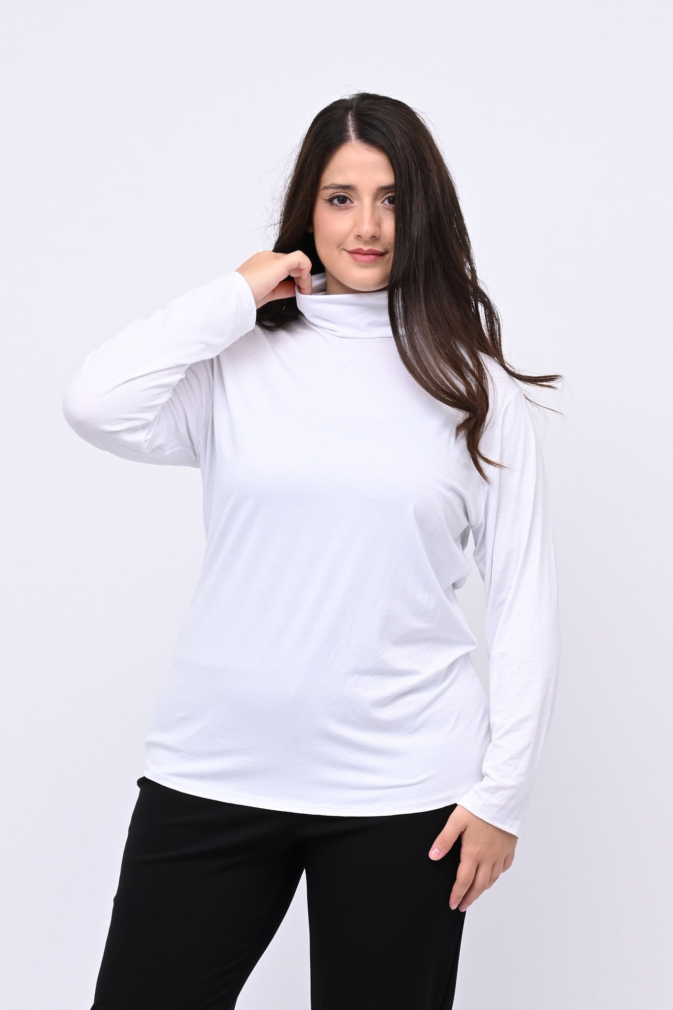 Lupetto in maglina di viscosa elasticizzata, manica lunga. Ideale come base per ogni outfit, è perfetto come sottotutto o indossato da solo. Un must have per chi cerca stile, praticità e comfort senza rinunciare a un look versatile.