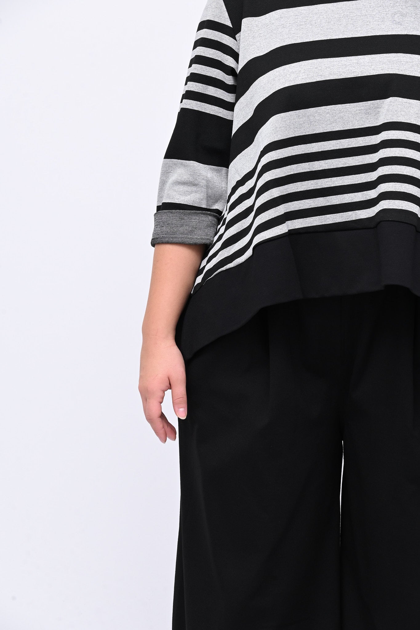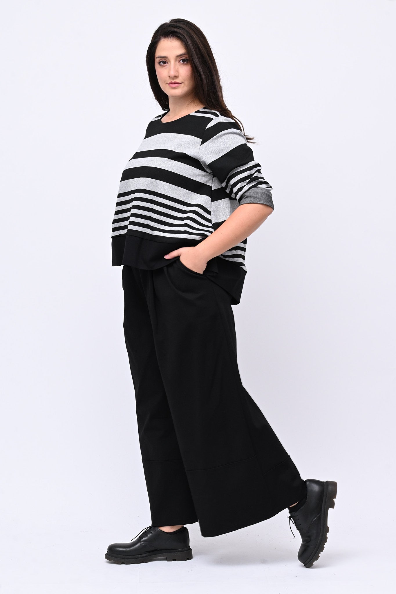 Maglia girocollo, fantasia a righe, taglio ad A e bordo alto sul fondo. Il design sporty chic la rende un capo versatile, perfetto per passare con stile dal tempo libero a un look più curato, garantendo comfort e raffinatezza in ogni occasione.