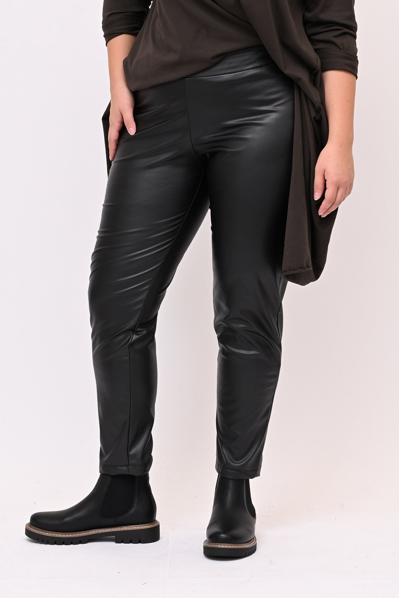 Leggins in ecopelle elasticizzata, con elastico in vita. Offrono comfort e stile e una vestibilità aderente e flessibile. Un capo fondamentale per ogni guardaroba, perfetto per creare look moderni e versatili, un must have per la stagione.