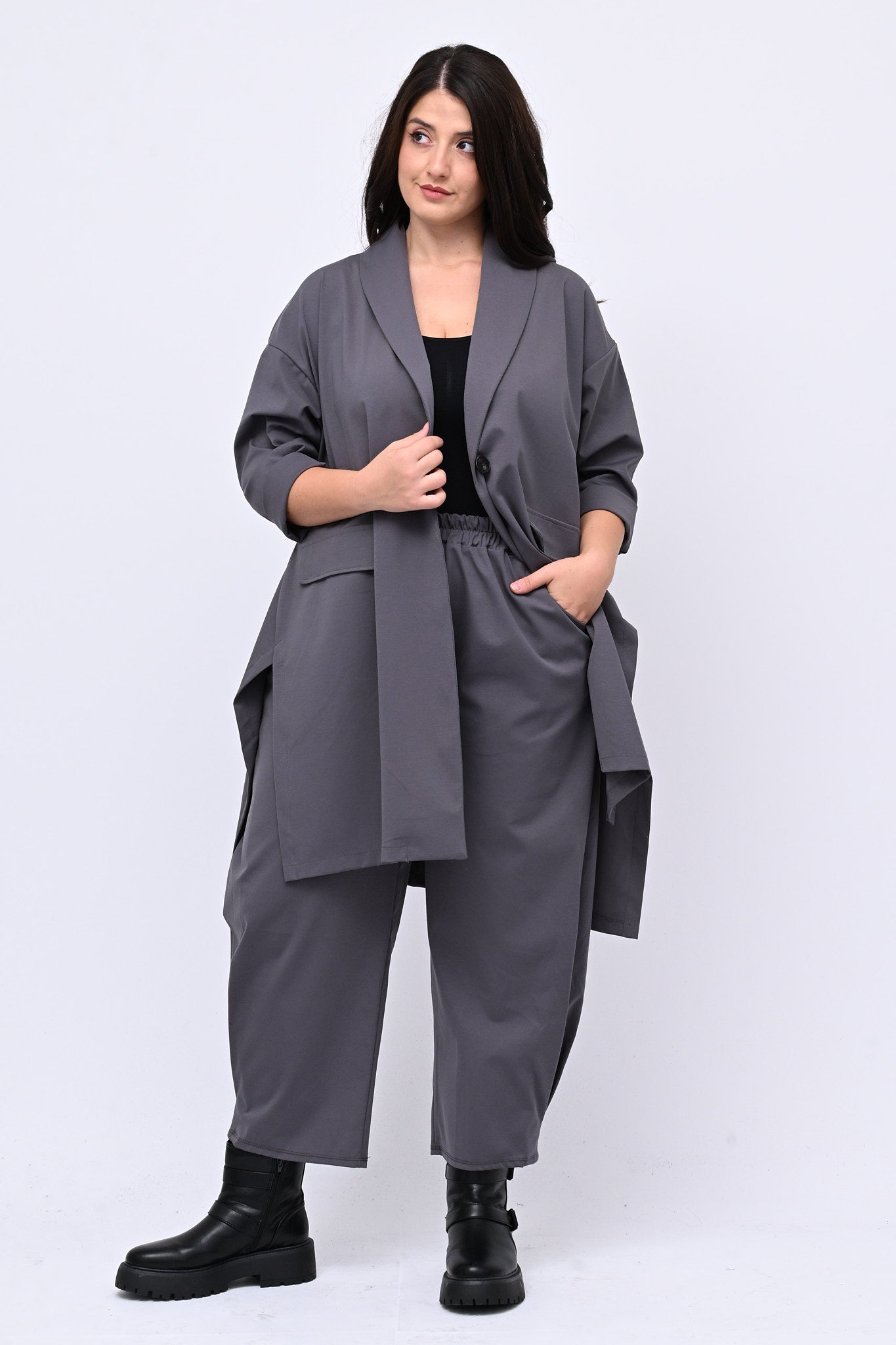 Pantalone modello baggy, con elastico in vita e tasche laterali. Le cuciture sulla caviglia creano un elegante gioco di pinces sulla gamba. Perfetto per un look sporty chic, versatile, pratico e contemporaneo.