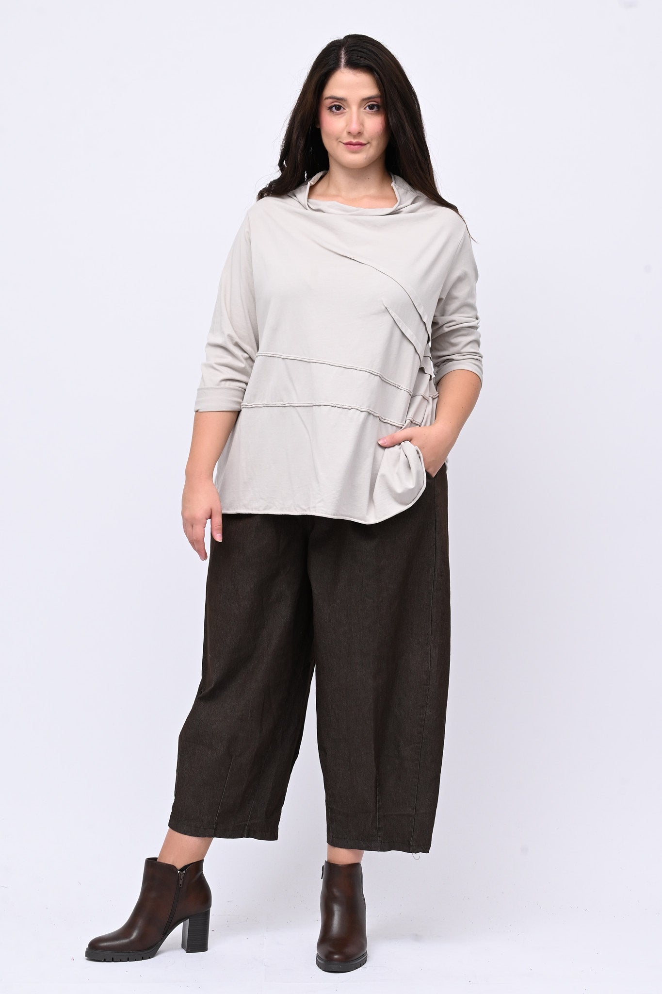 I pantacrop jeans offrono un design pratico e confortevole grazie all’elastico in vita con passanti, che garantisce una vestibilità adattabile. Le pinces donano un tocco di eleganza al capo, mentre le tasche frontali aumentano la funzionalità senza sacrificare lo stile. Ideali per l’uso quotidiano, sono facili da abbinare e perfetti per chi cerca comodità e praticità in ogni occasione.