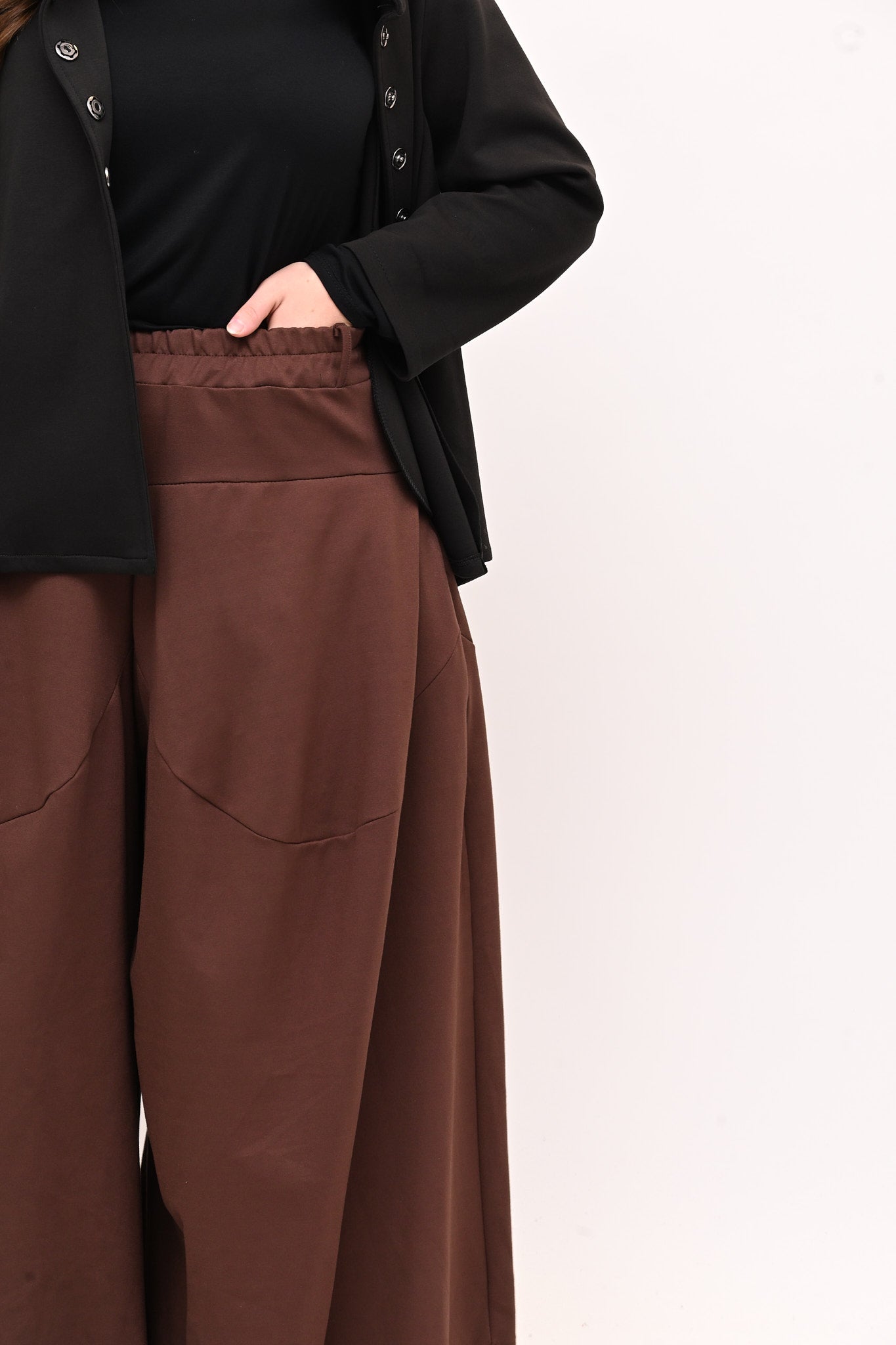 Il pantalone modello Samurai in felpa con elastico in vita, tasche e gamba super larga. Rilassato e di tendenza, è ideale per chi cerca un capo versatile e moderno da indossare in ogni occasione casual.