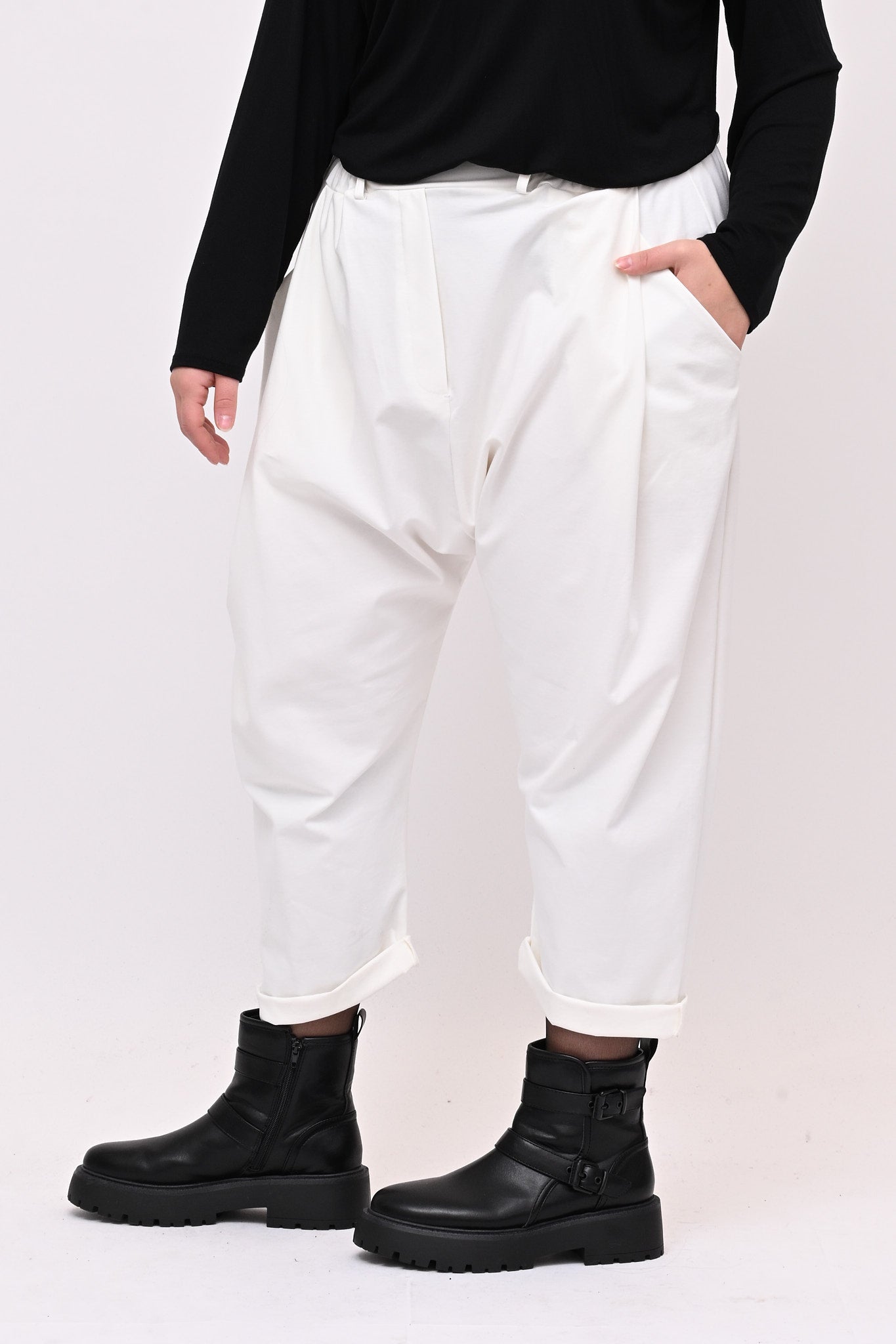 Pantalone pinces cavallo basso - Bianco