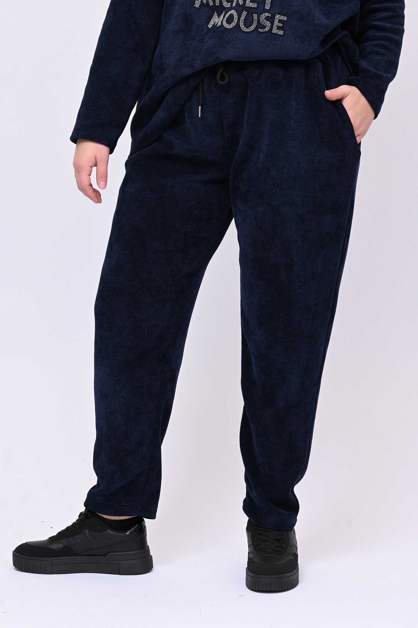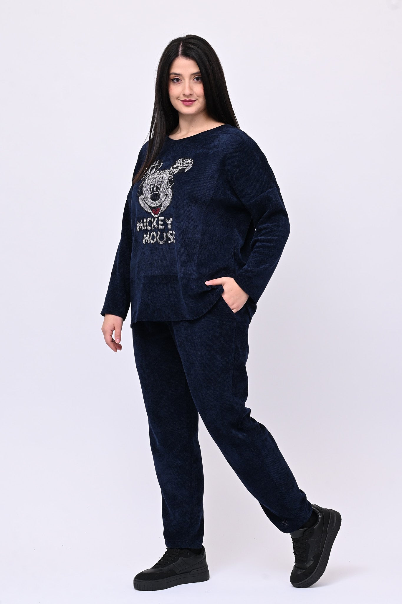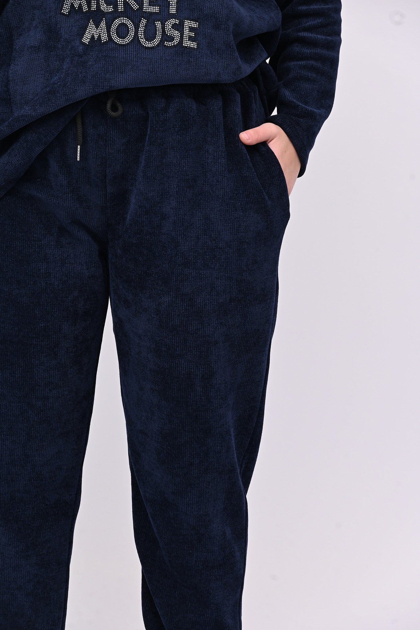 Tuta in ciniglia composta da: felpa girocollo con stampa brillantinata di Mickey Mouse e pantaloni con elastico in vita, laccetto regolabile e tasche laterali. Perfetta per chi cerca un outfit versatile e sporty chic, senza rinunciare alla comodità.