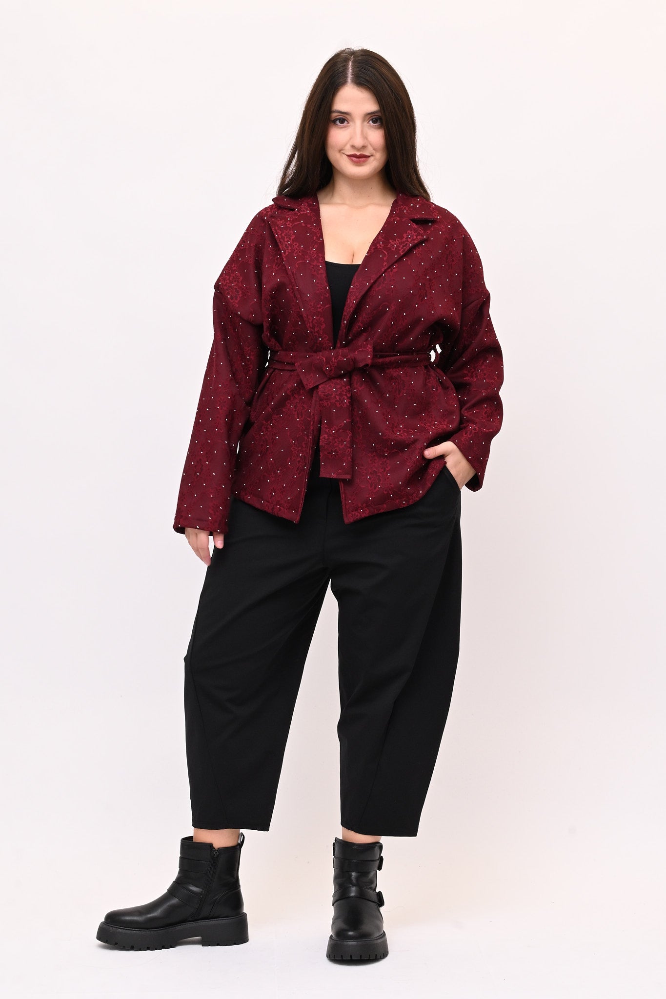 • Giacca strass e cinta - Vino