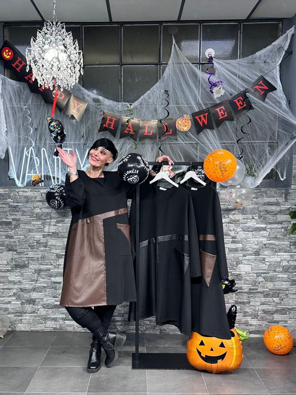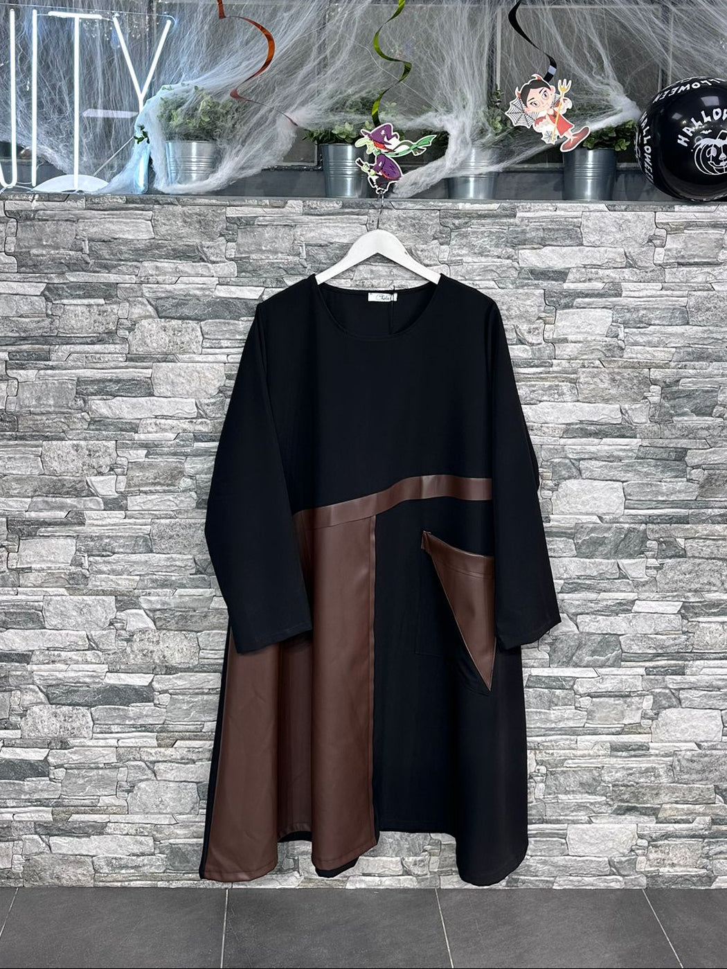 Abito ecopelle tasca - Moro